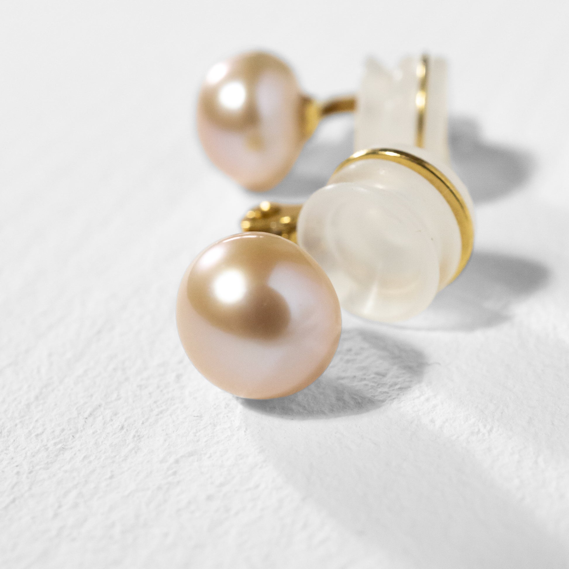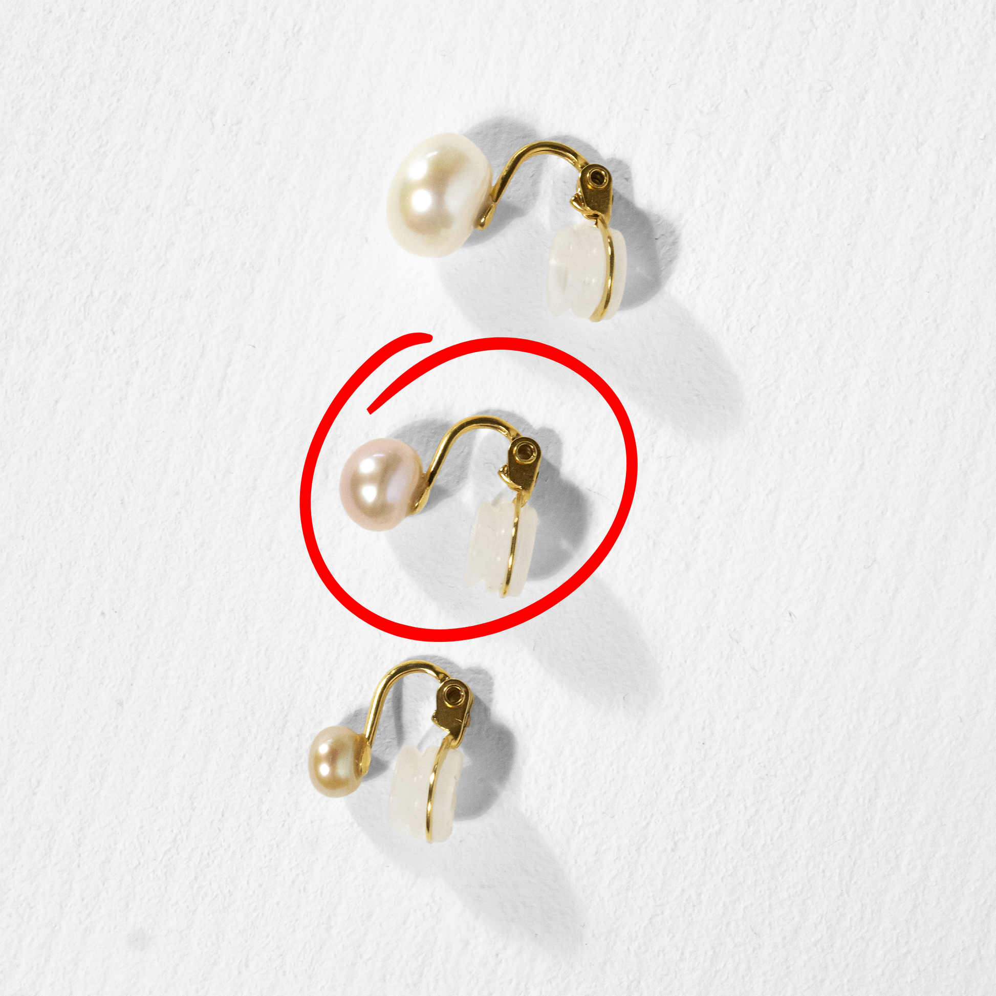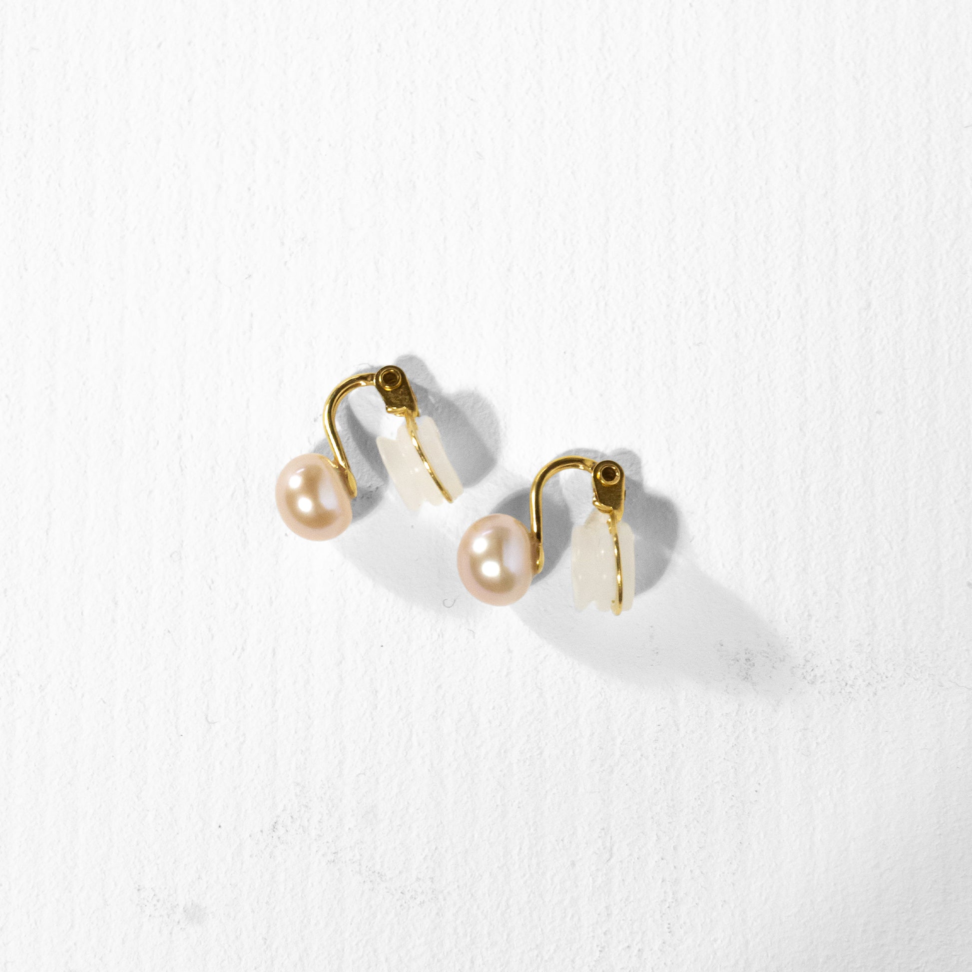 フェミニンな印象のピンク淡水パールを使ったイヤリング