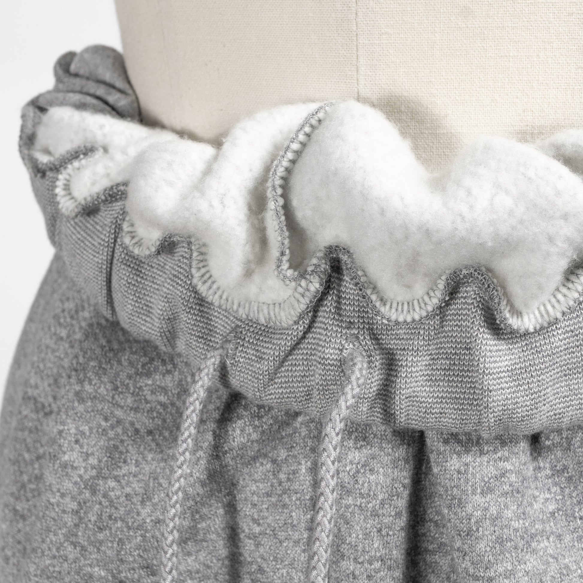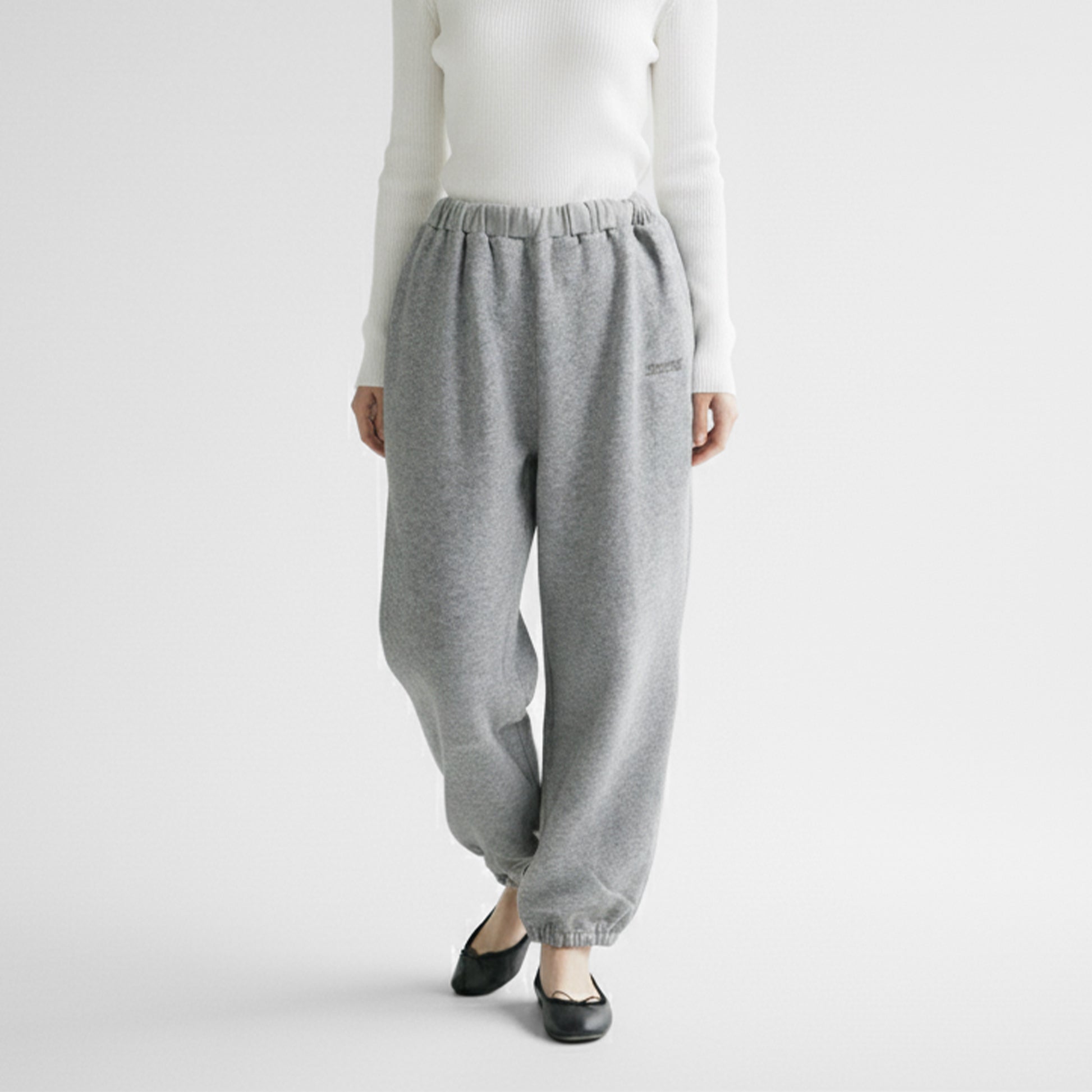 ギャザー入りのボリューミーなウエストデザインが特長的なスウェットパンツ