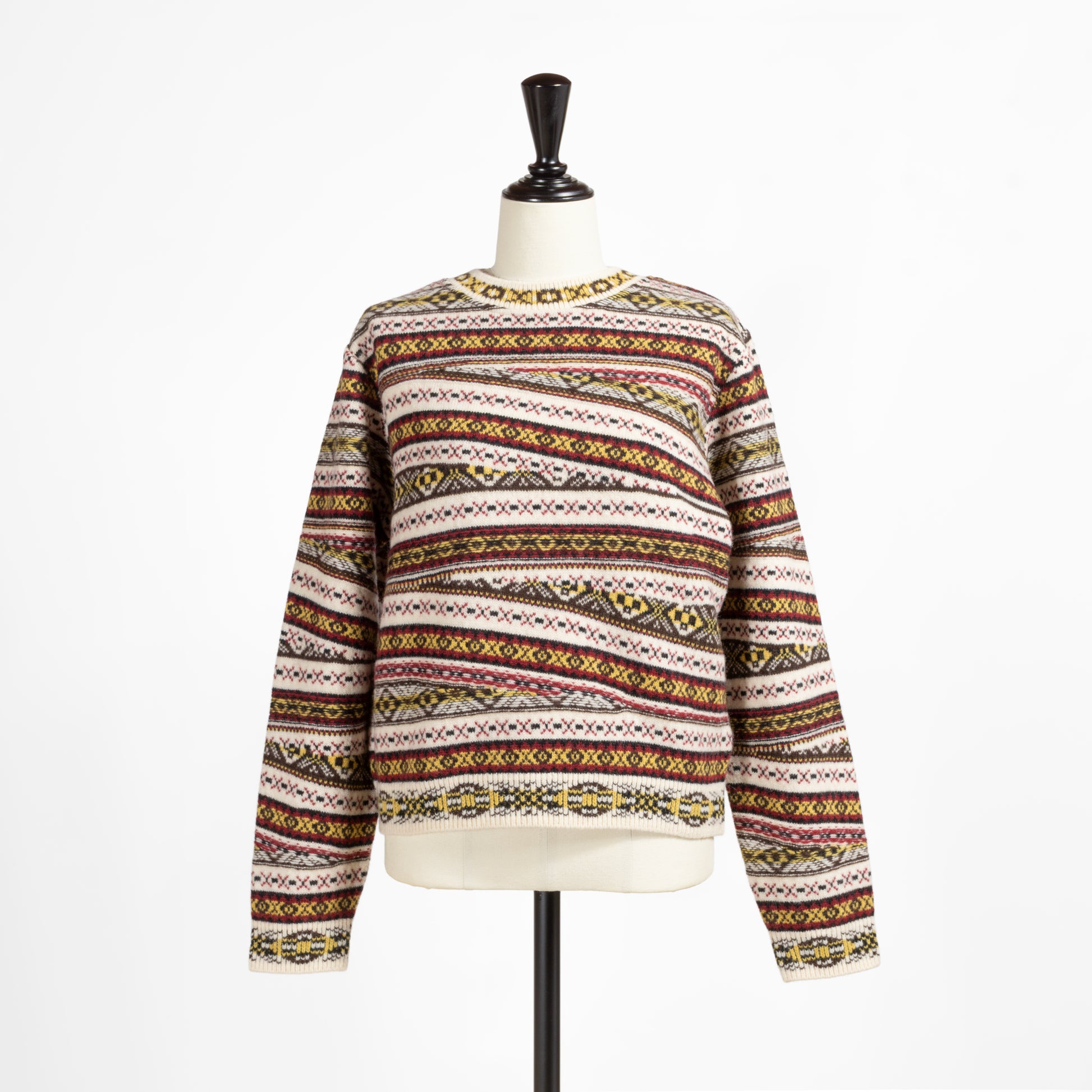 伝統的なフェアアイル柄をあえて歪ませることで他にはない存在感を放つミドルゲージセーター
