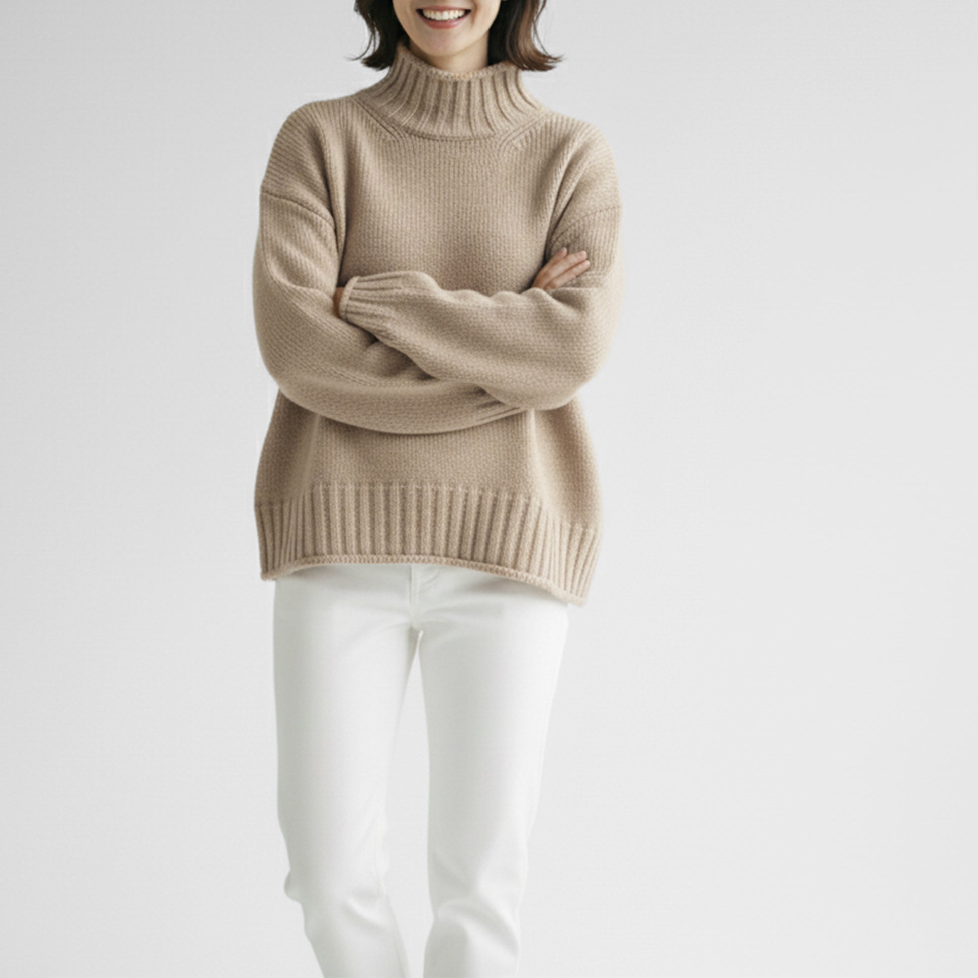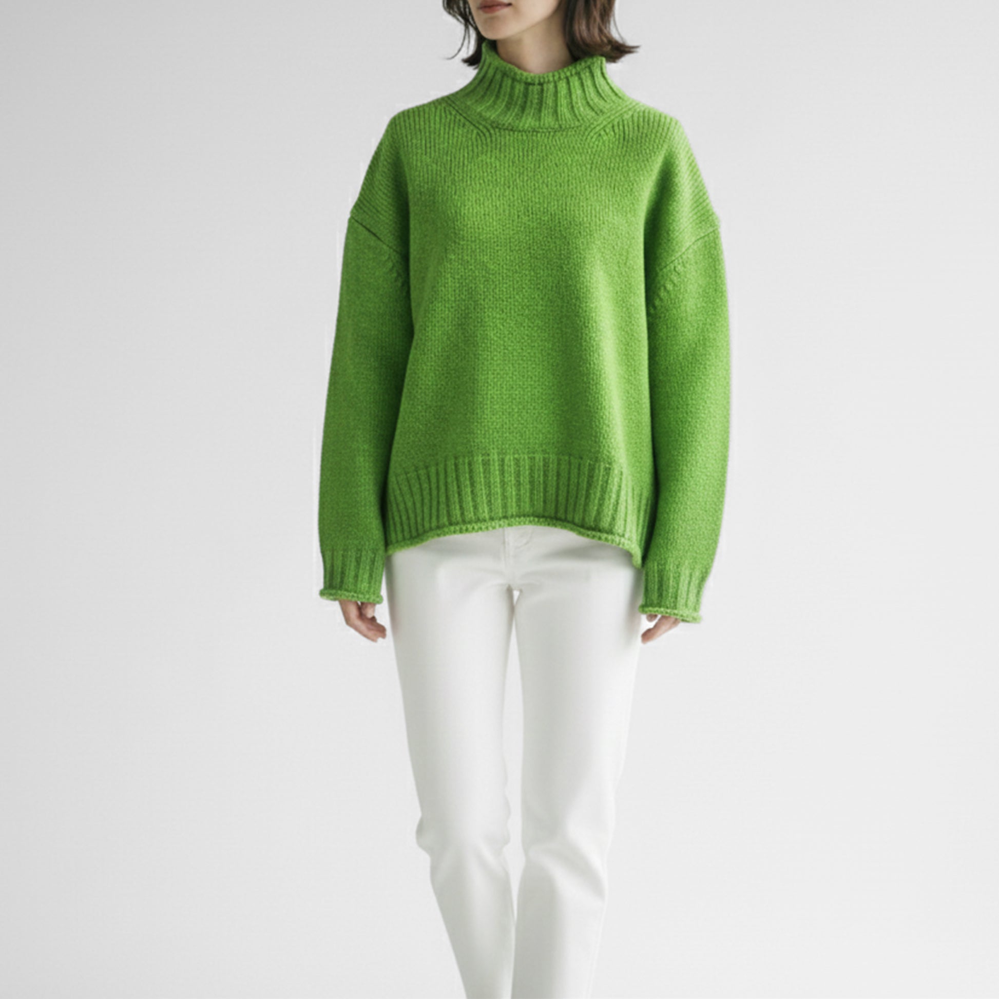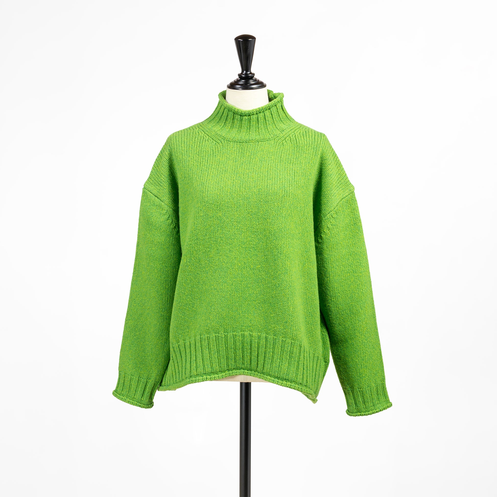 明るく綺麗なカラーが魅力的なハイネックセーター