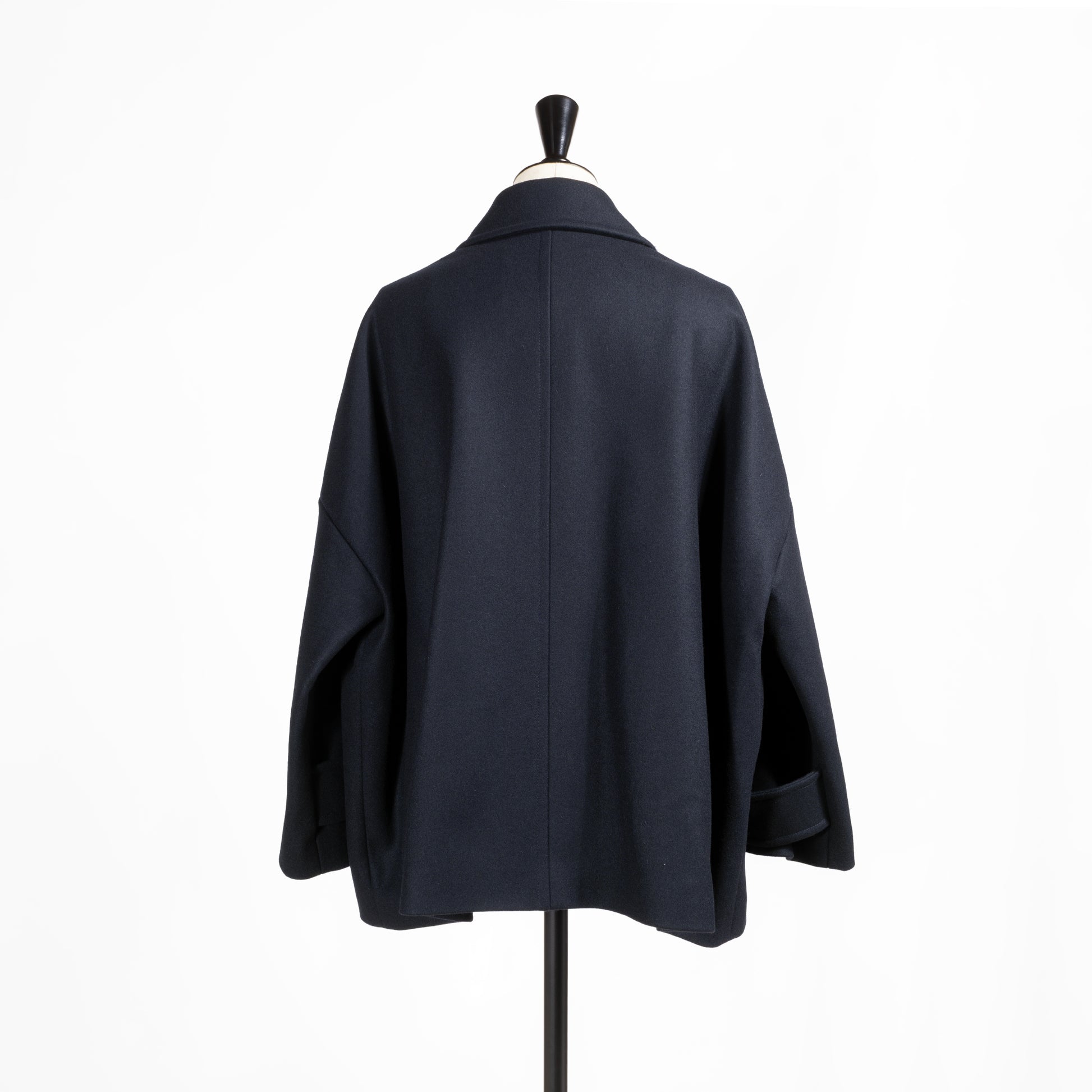 -ドロップショルダーデザインのゆったりとしたウールコート