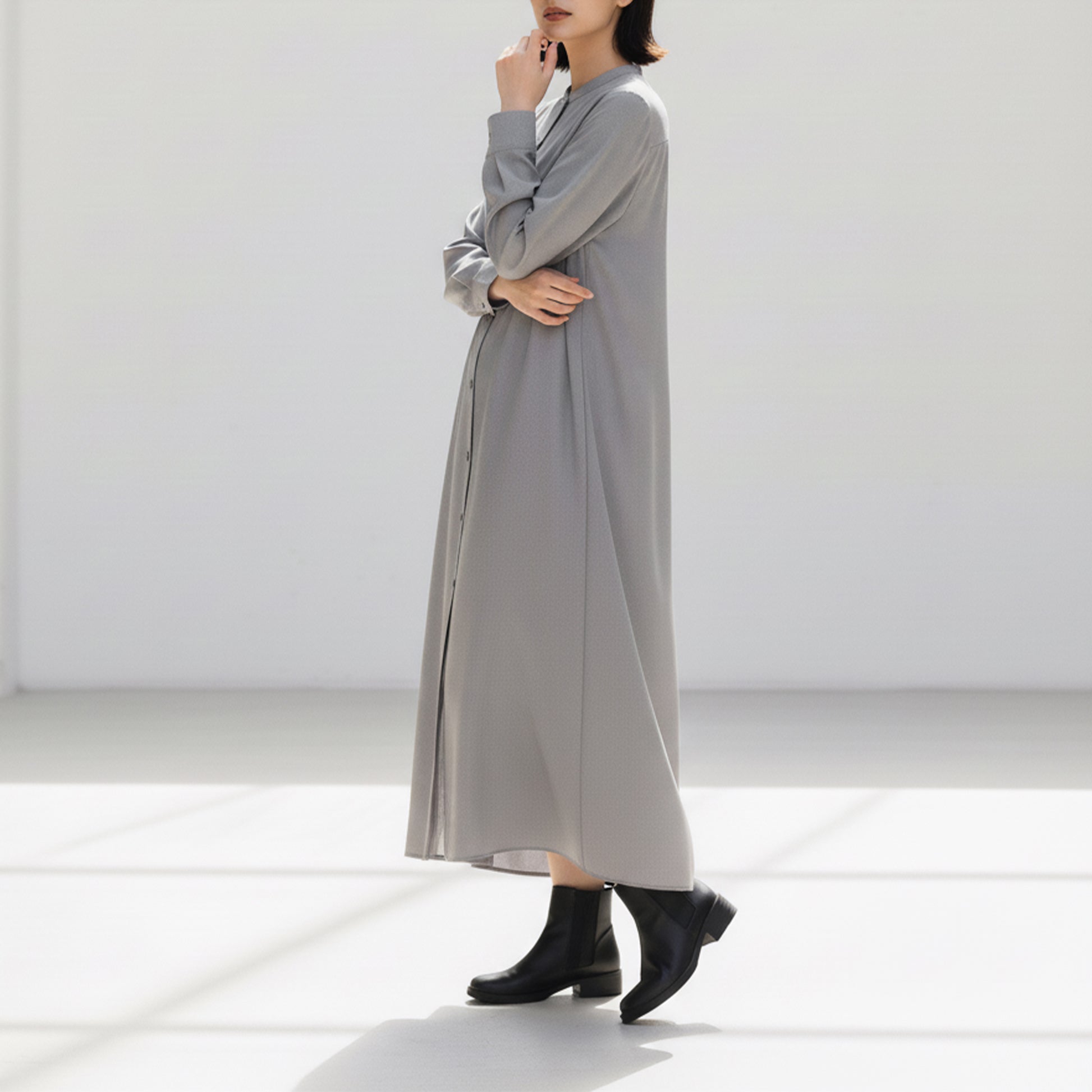 スタンドカラーがきちんと感をプラスするミニマルなデザインで、カジュアルからドレッシーなスタイルめまで幅広いシーンで着回せます