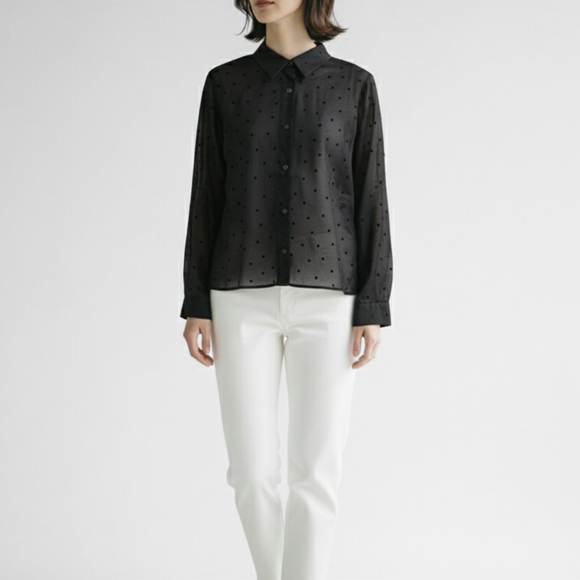 25AW mizuiro ind フロッキードットプリントシャツ 4-230058
