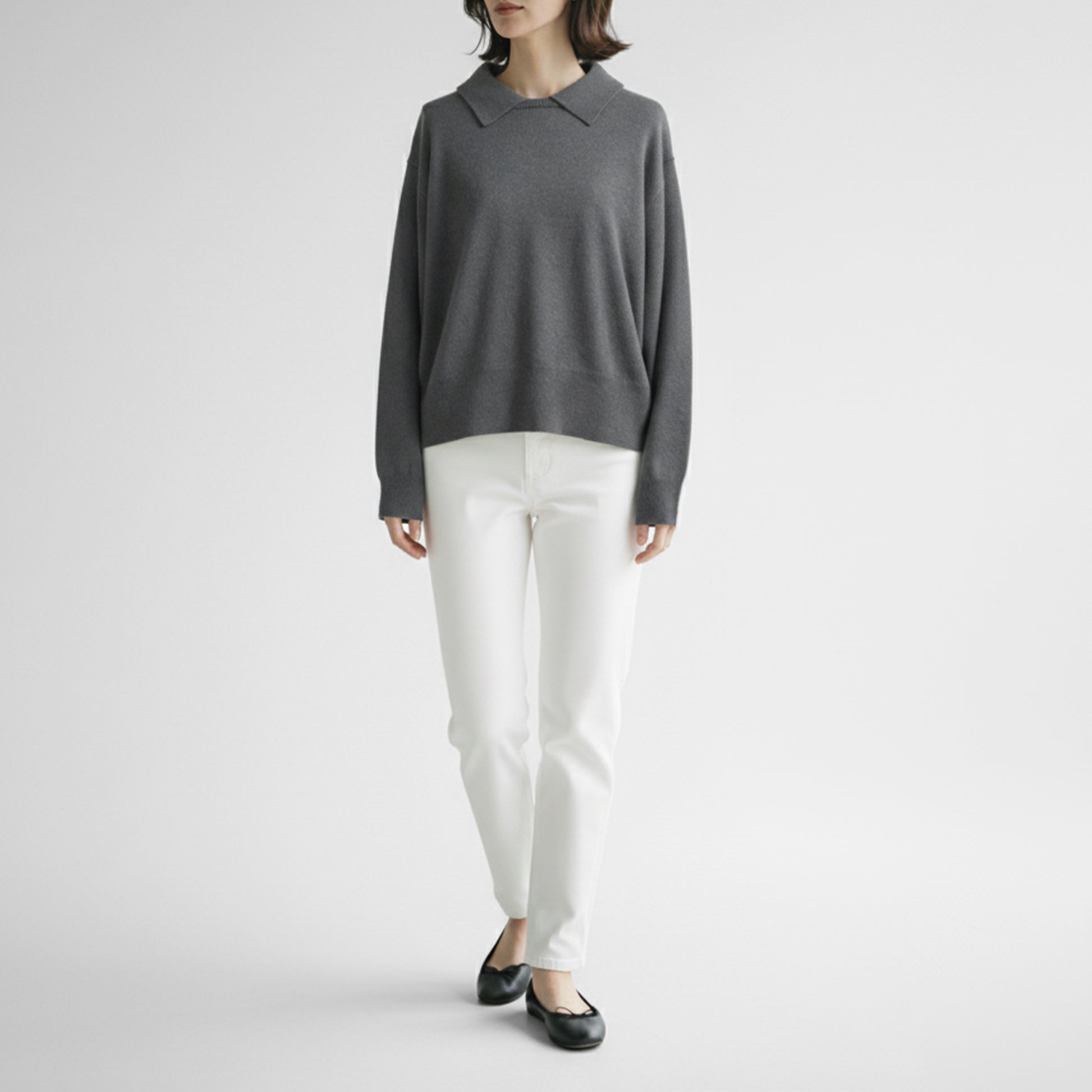 幅広の襟が女性らしさときちんと感をプラスし、1枚でシンプルに着ても素敵です