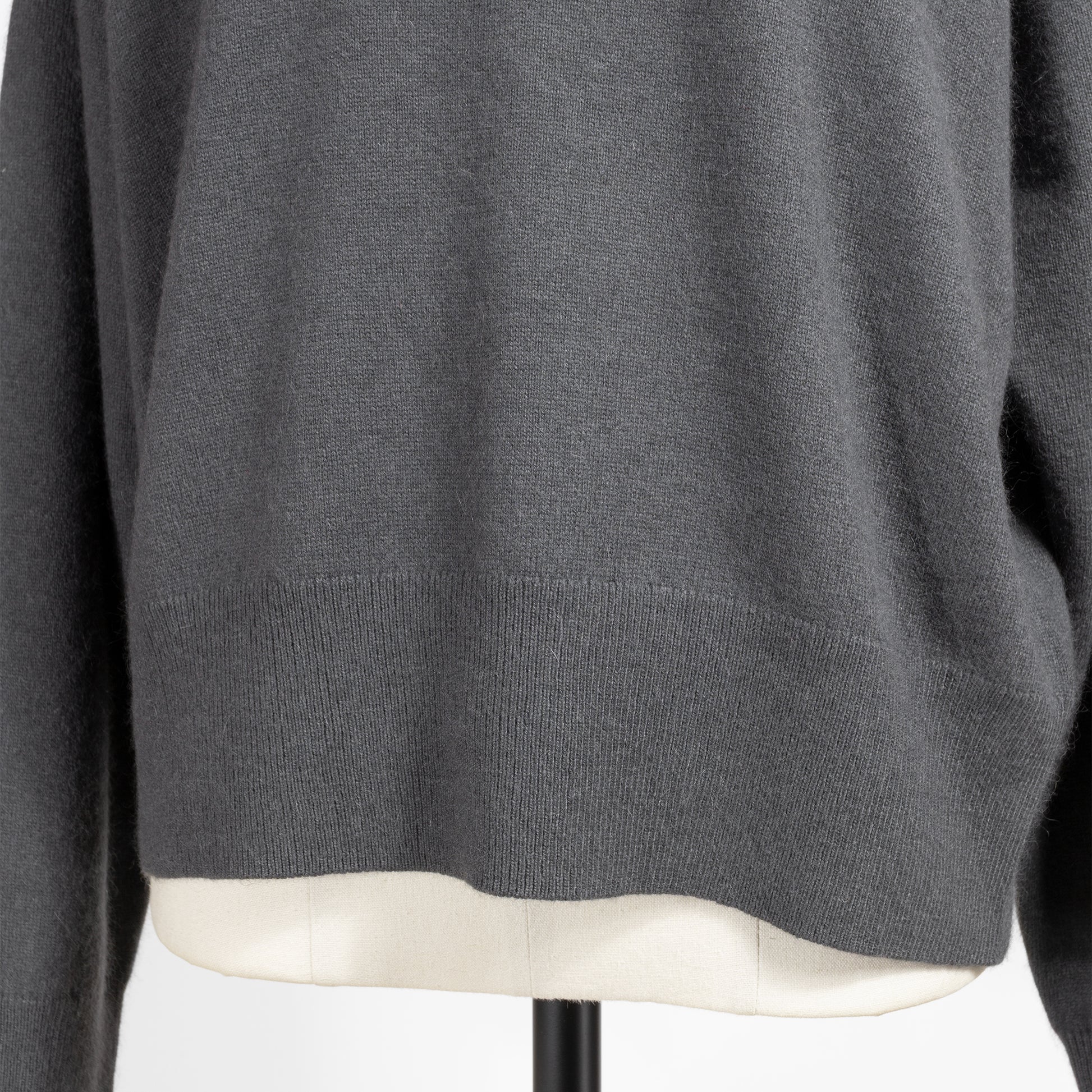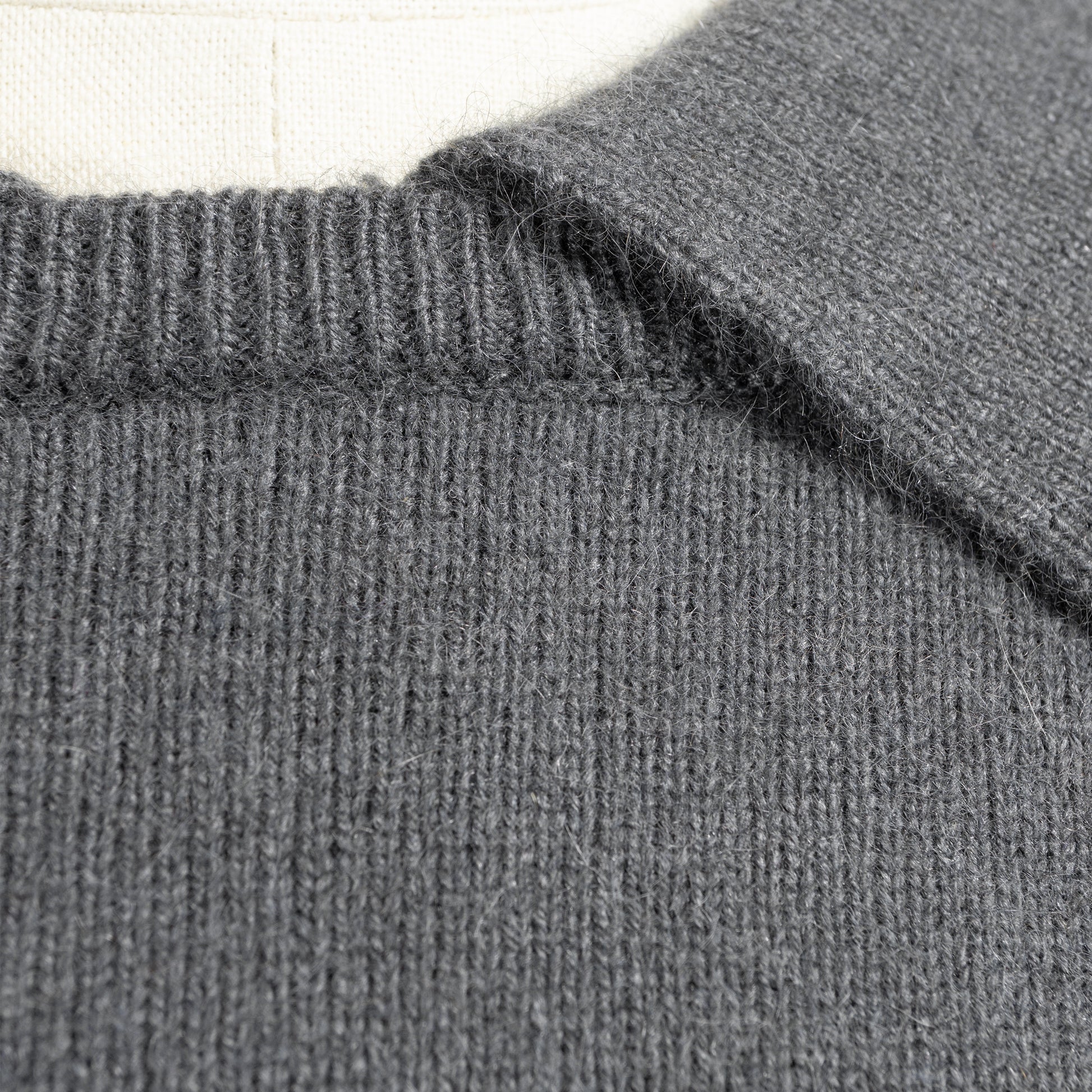やや毛足の長い糸のため見た目にも暖かく、秋冬の装いにピッタリの1着になっています