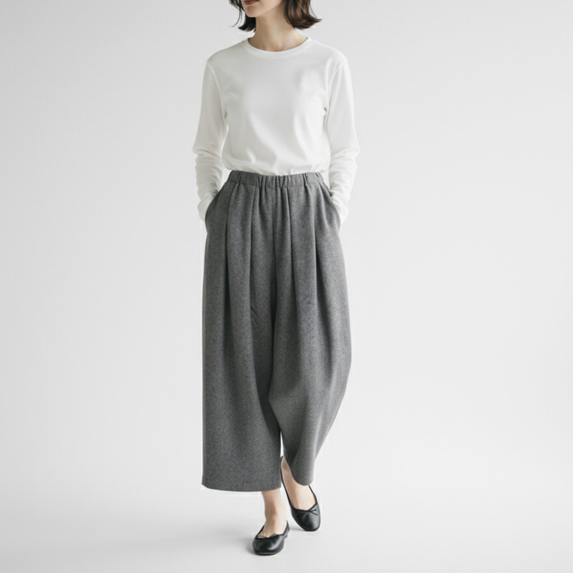 寒い季節に嬉しいウール混素材を使用したワイドパンツです