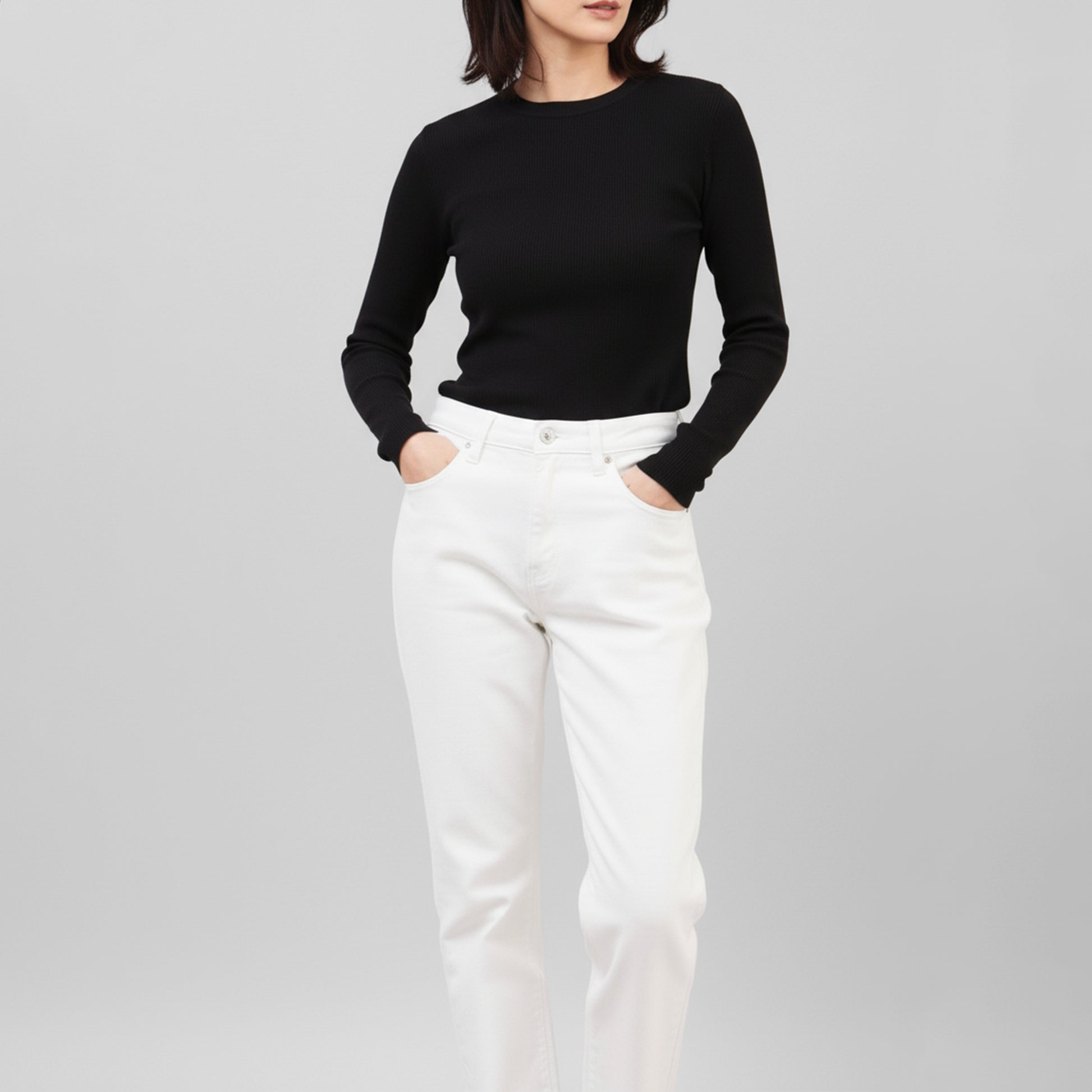 テレコ編みされているため伸縮性に優れていて、ストレスフリーで着られるのも嬉しいポイント