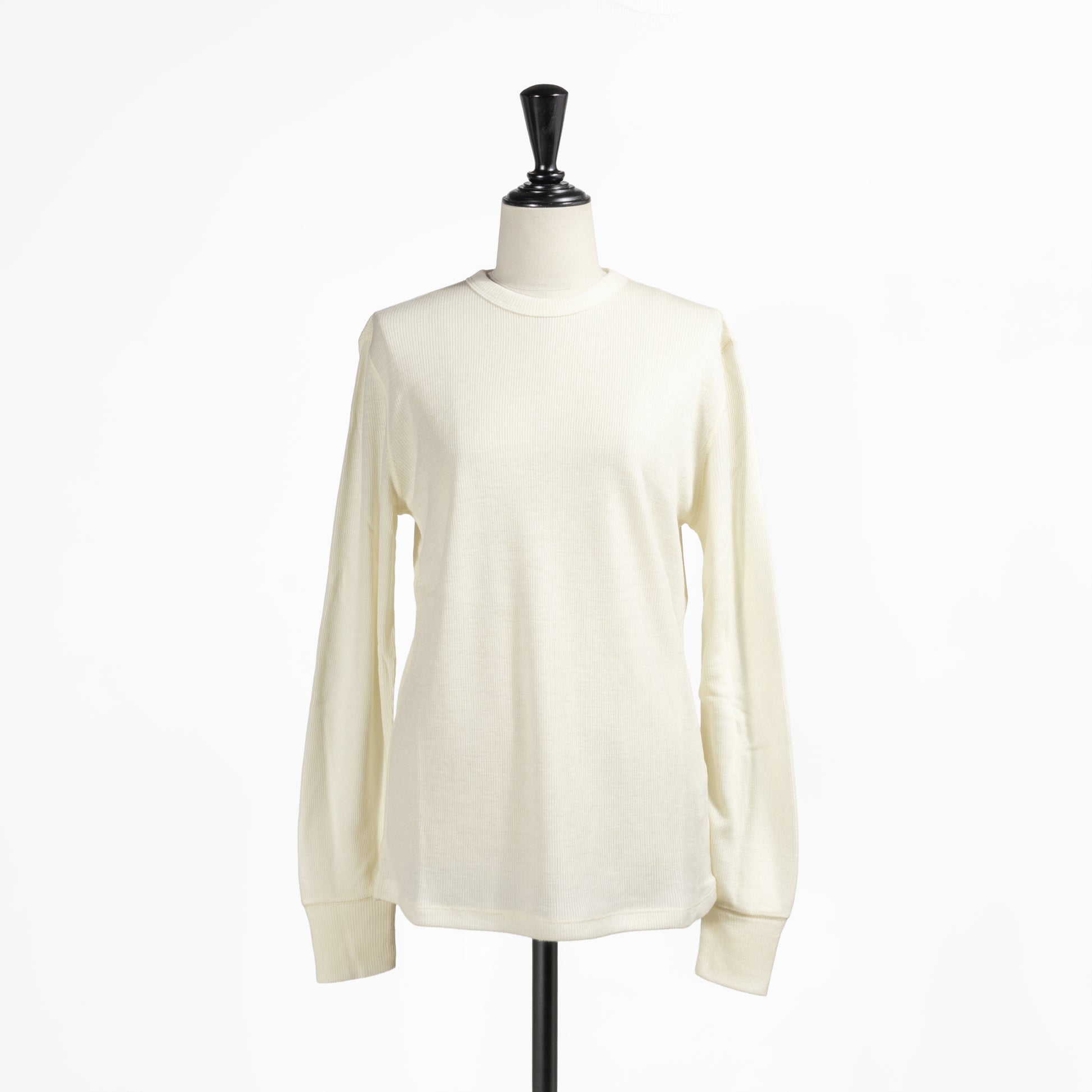 ミニマルなデザインでコーディネートしやすいウール素材のカットソー
