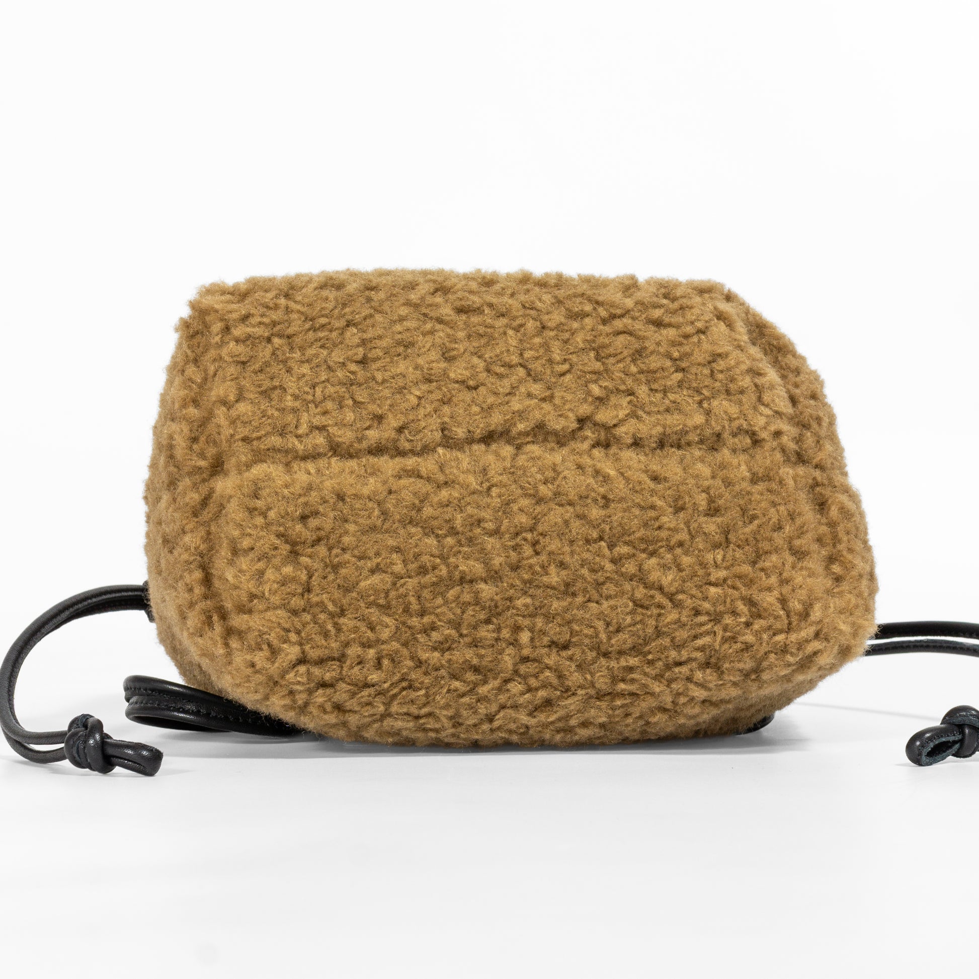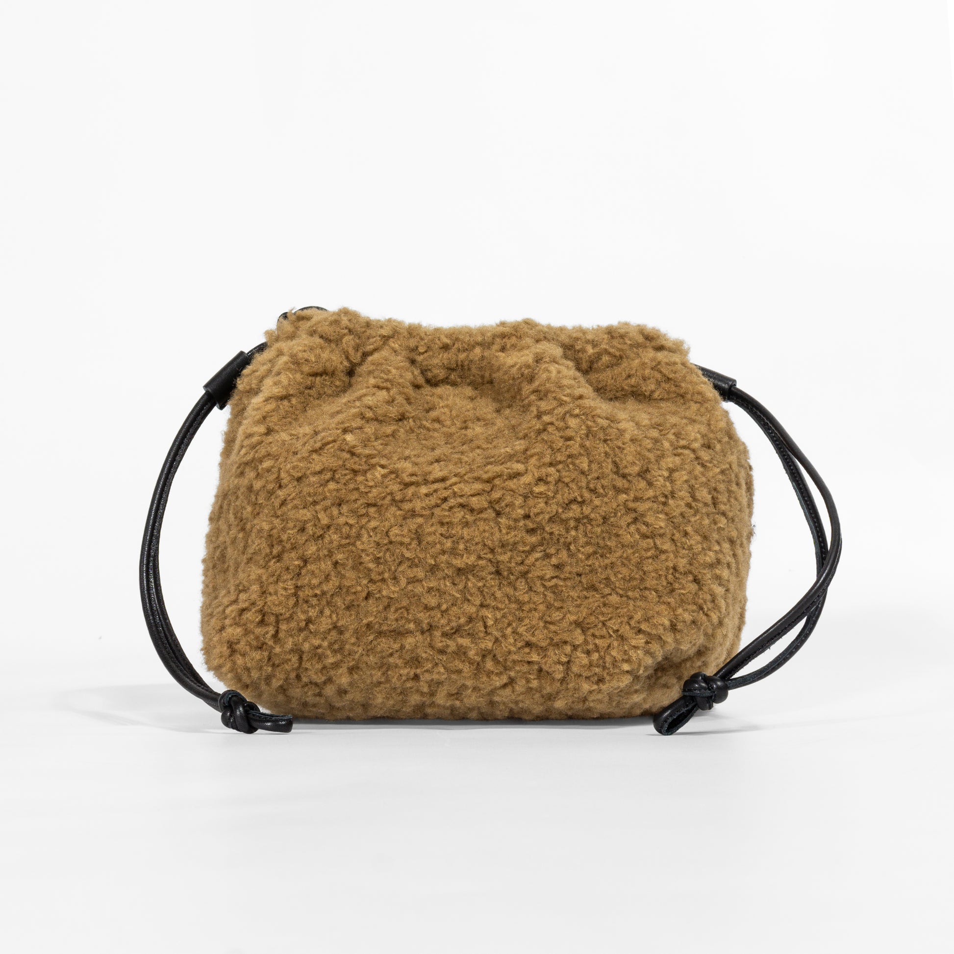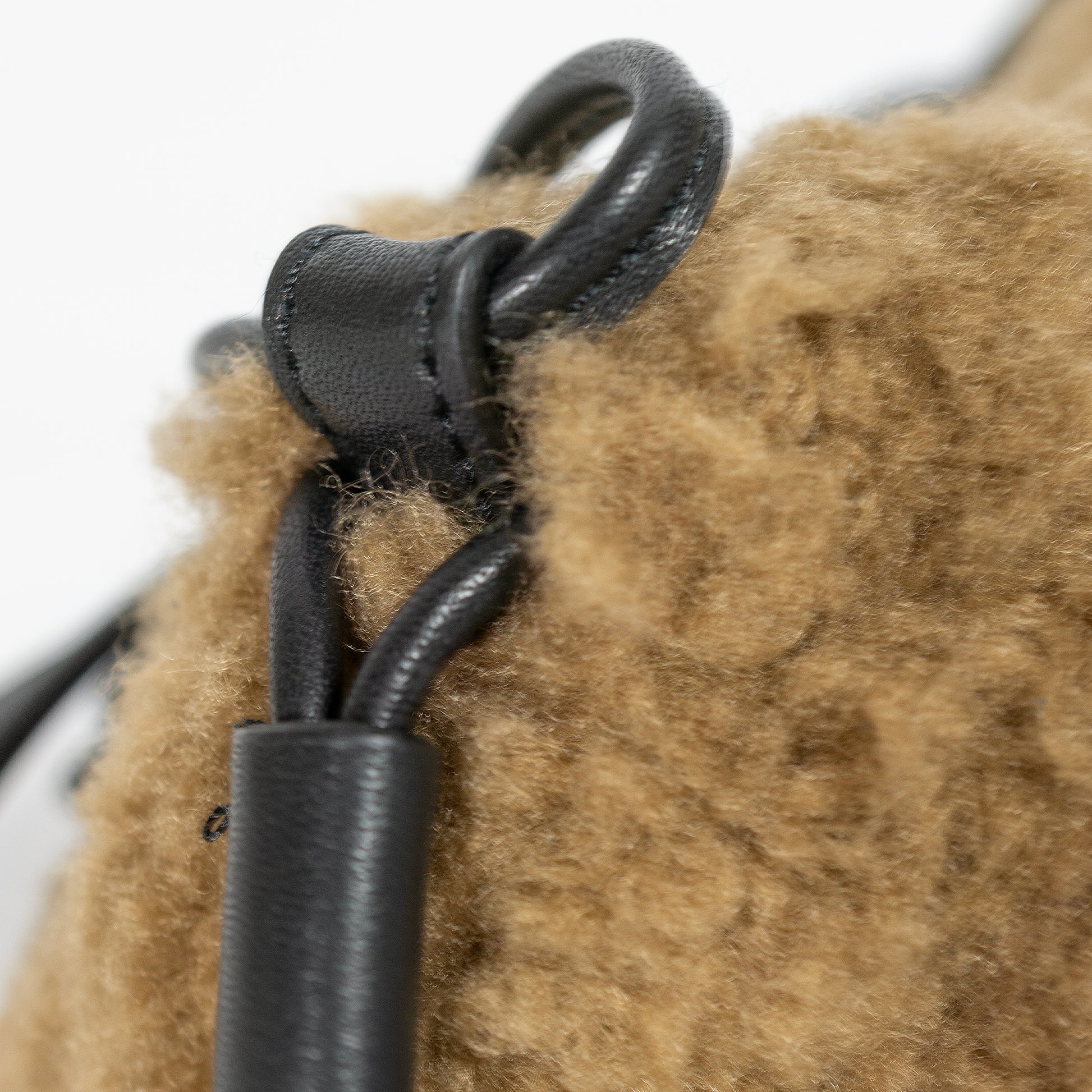 もこもこのボアとコロンとしたフォルムが愛らしいドローストリングバッグ