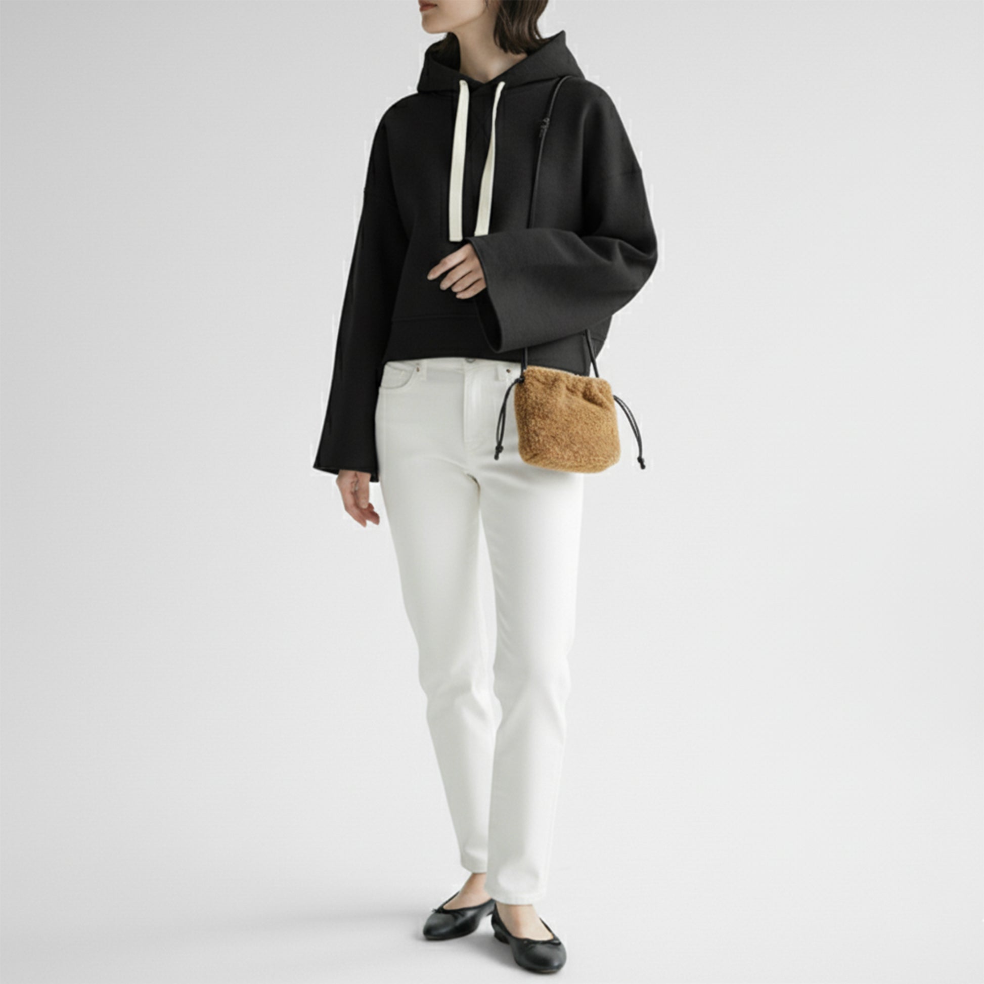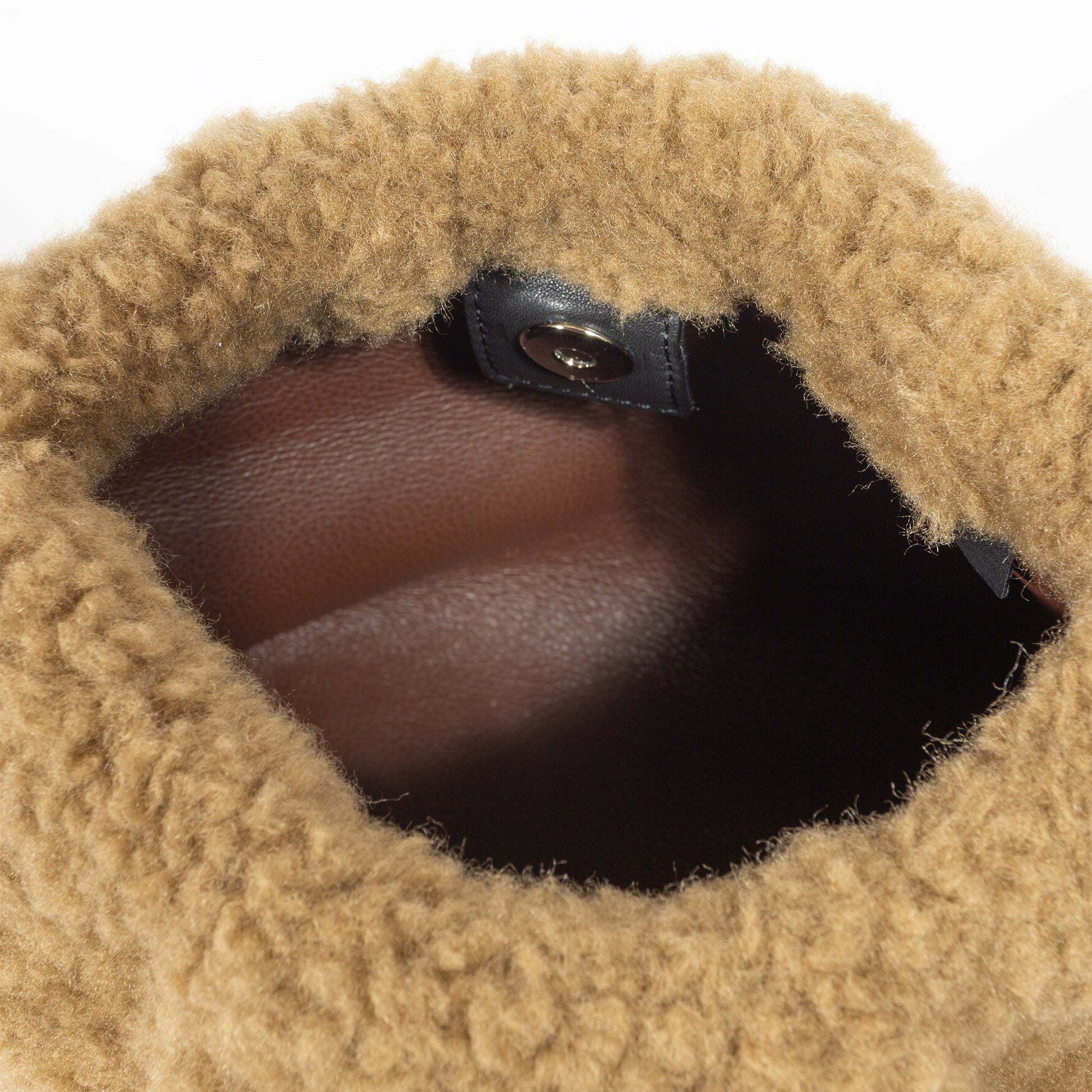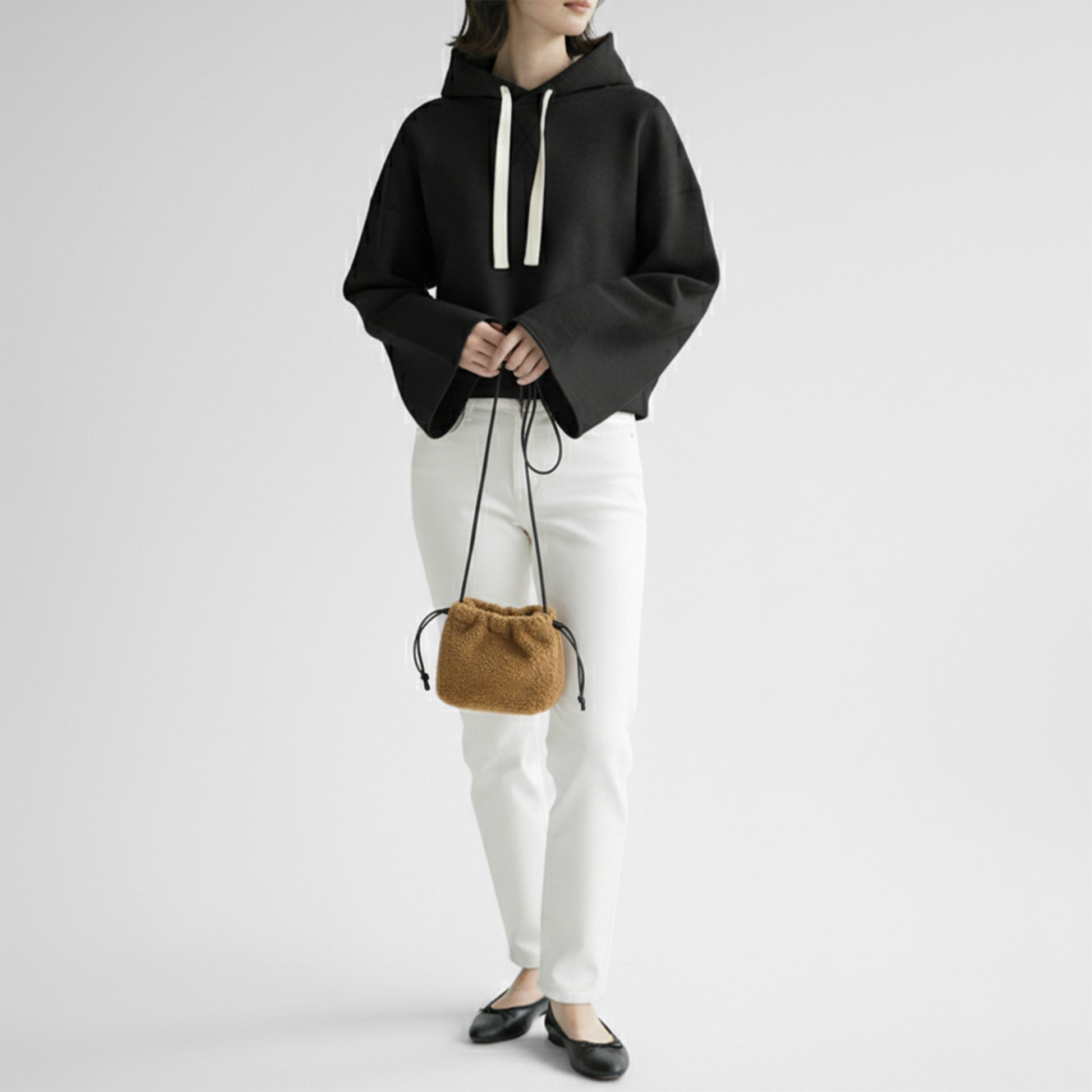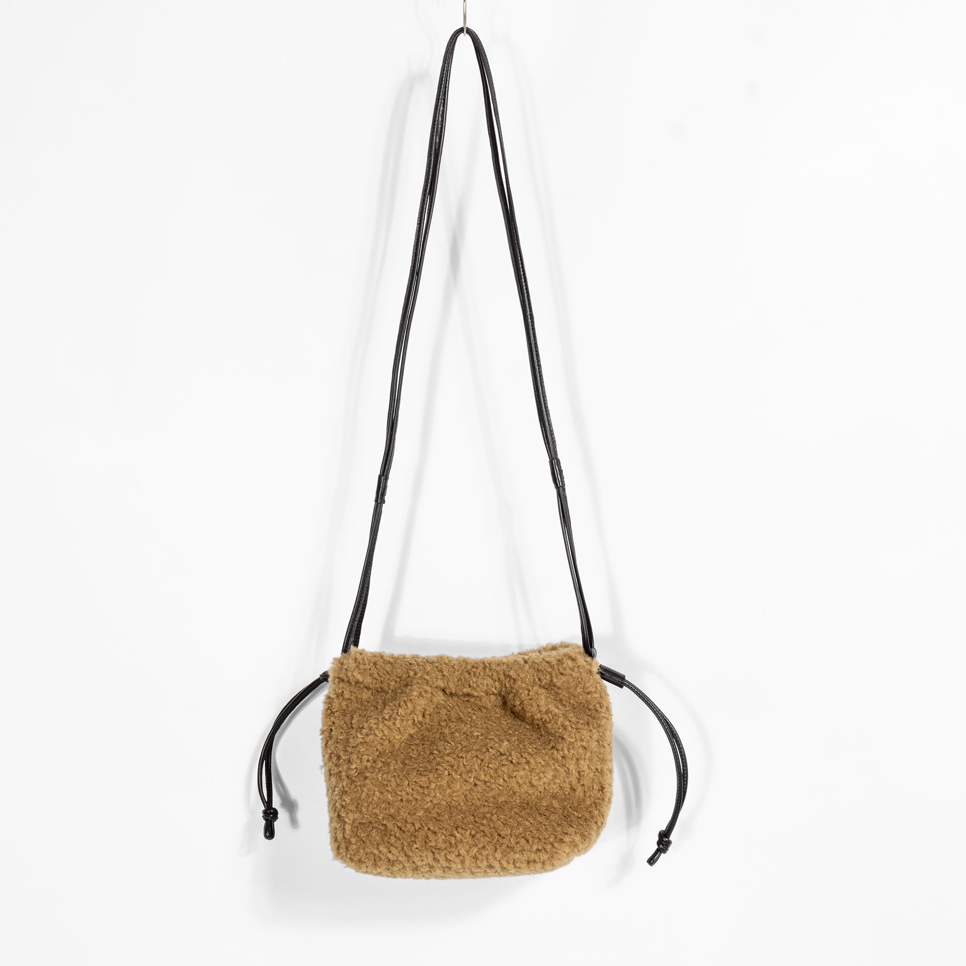 もこもこのボアとコロンとしたフォルムが愛らしいドローストリングバッグ