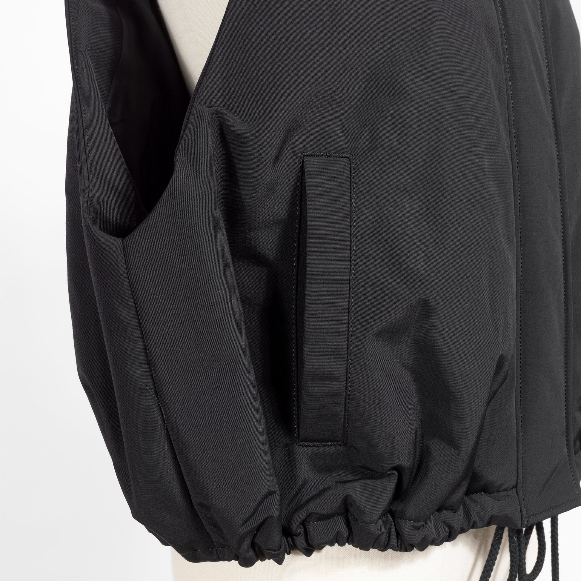 裾のドローストリングによって生まれる丸みのあるシルエットが印象的なスタイルを演出します