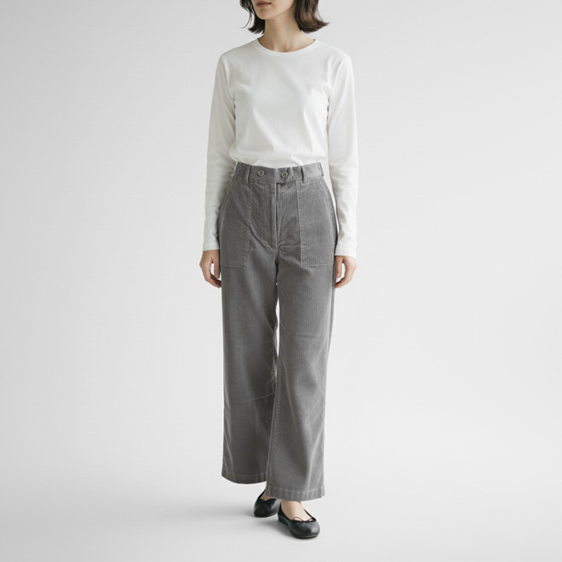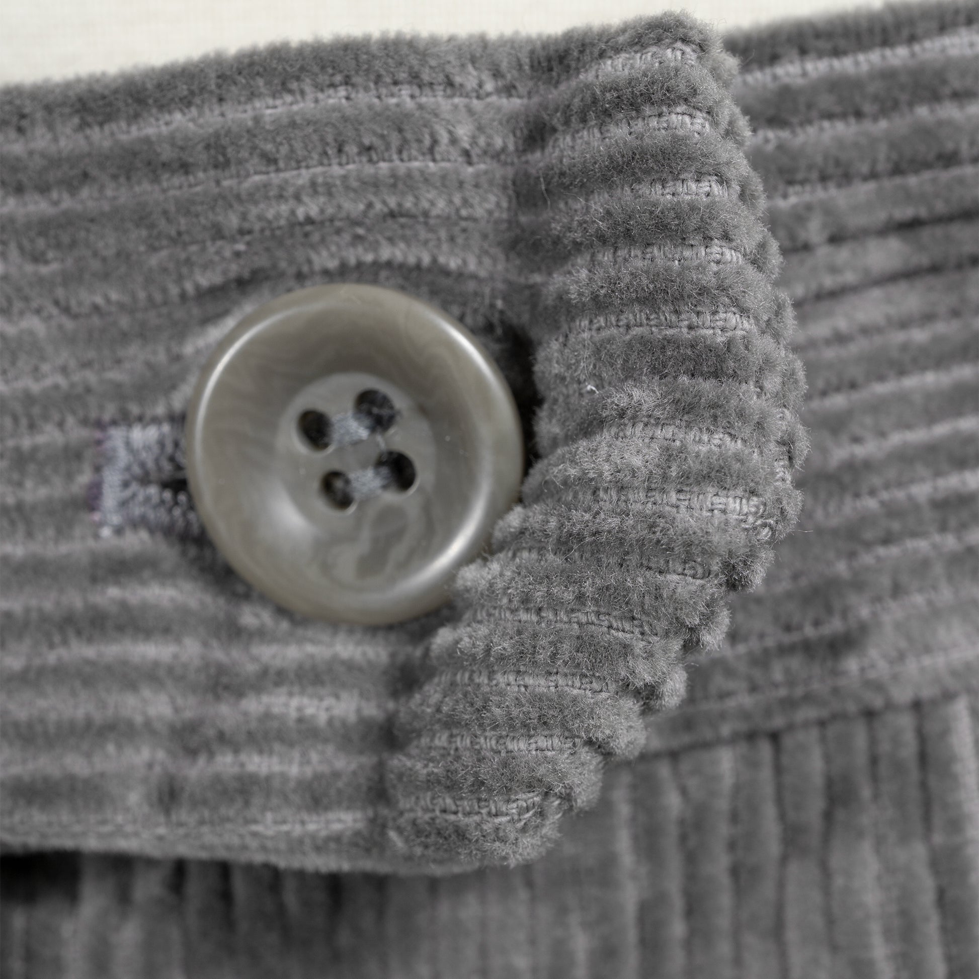 グレーのコーデュロイは色合わせもしやすく、オンオフ問わずに幅広いシーンで活躍してくれます