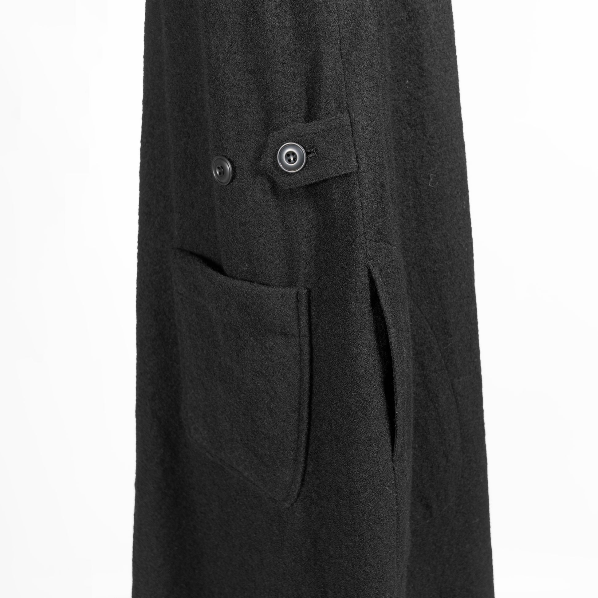 シックなブラックは色合わせがしやすく、大きなポケットが程よいカジュアルさをプラス
