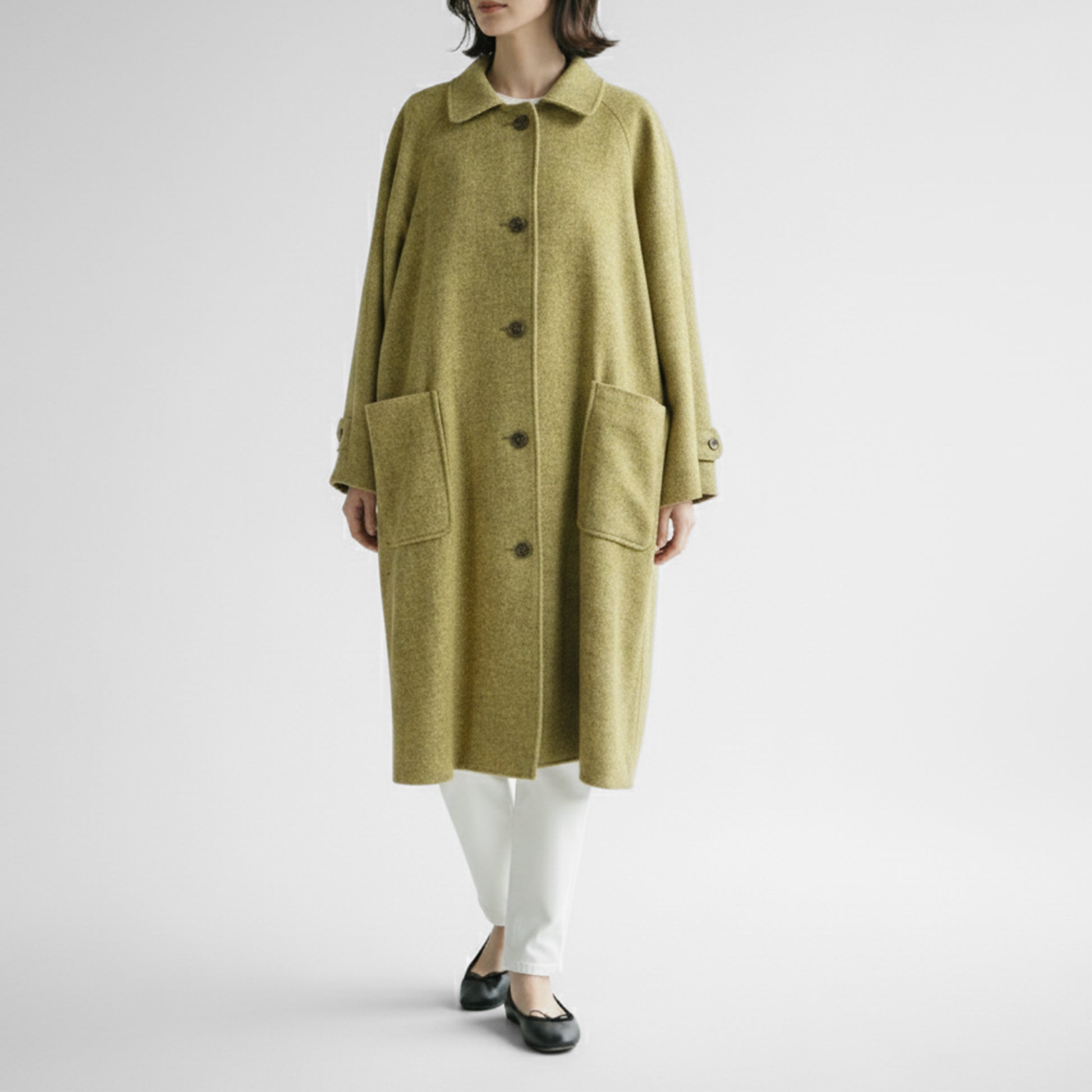 流行に左右されないデザインと上質な素材使い、さらに体型の変化も気にならないゆったりとしたシルエットで、長く愛用いただけるタイムレスなコートです