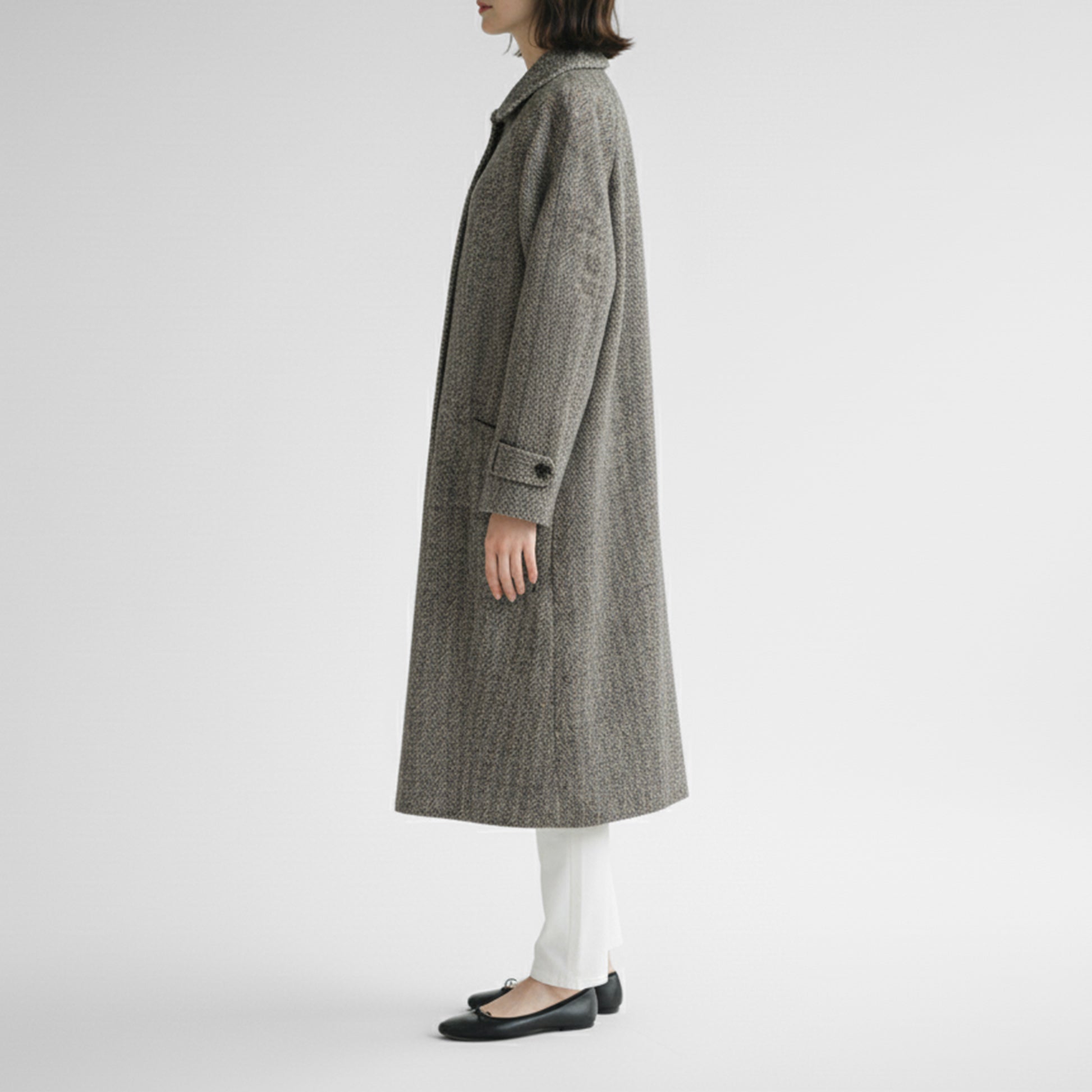 シックなヘリンボーン生地を使用したバルマカンコート(ステンカラーコート)
