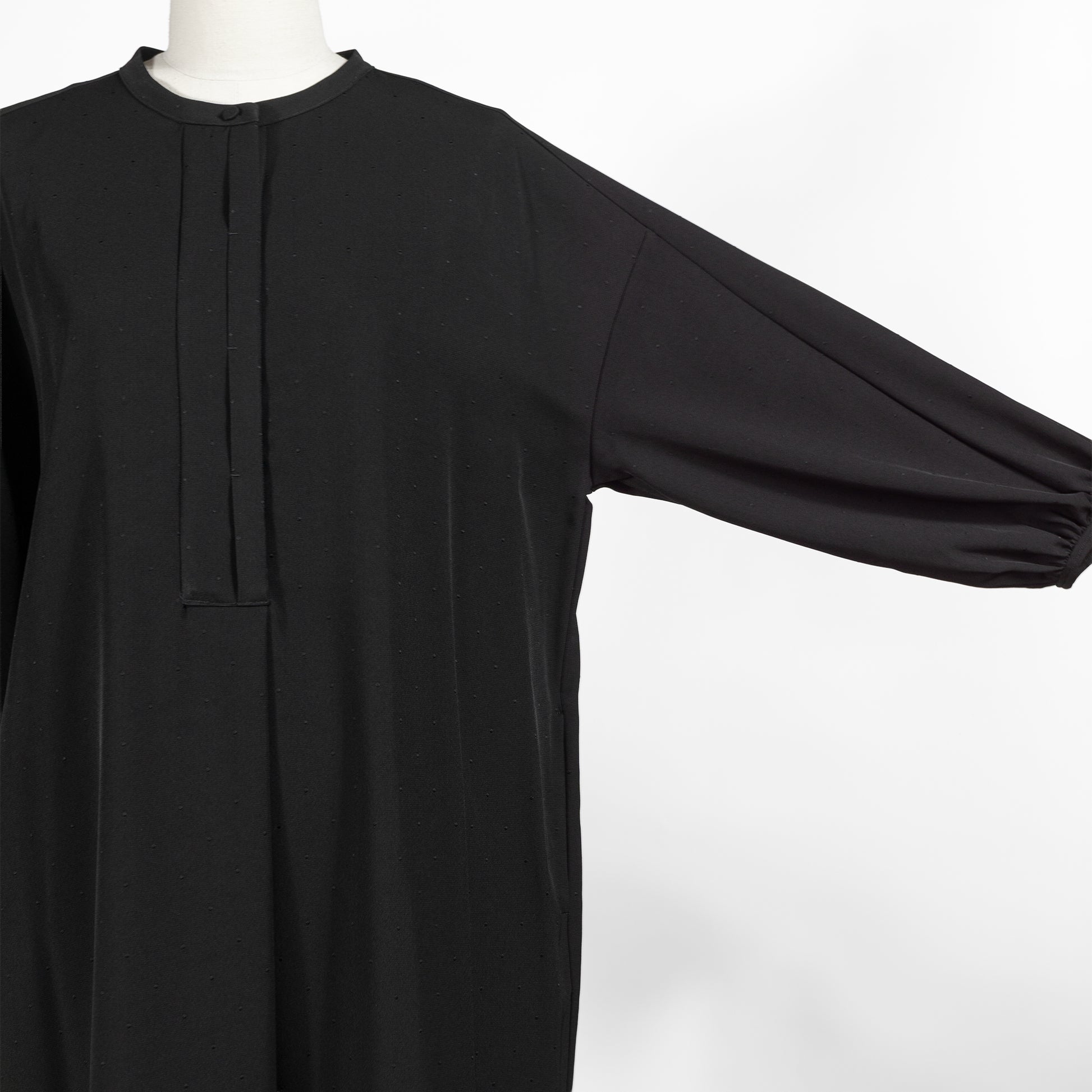 パッと見は無地ですが、よく見ると細かなドット柄があしらわれていて、ワンピースにさりげないアクセントをプラスしています