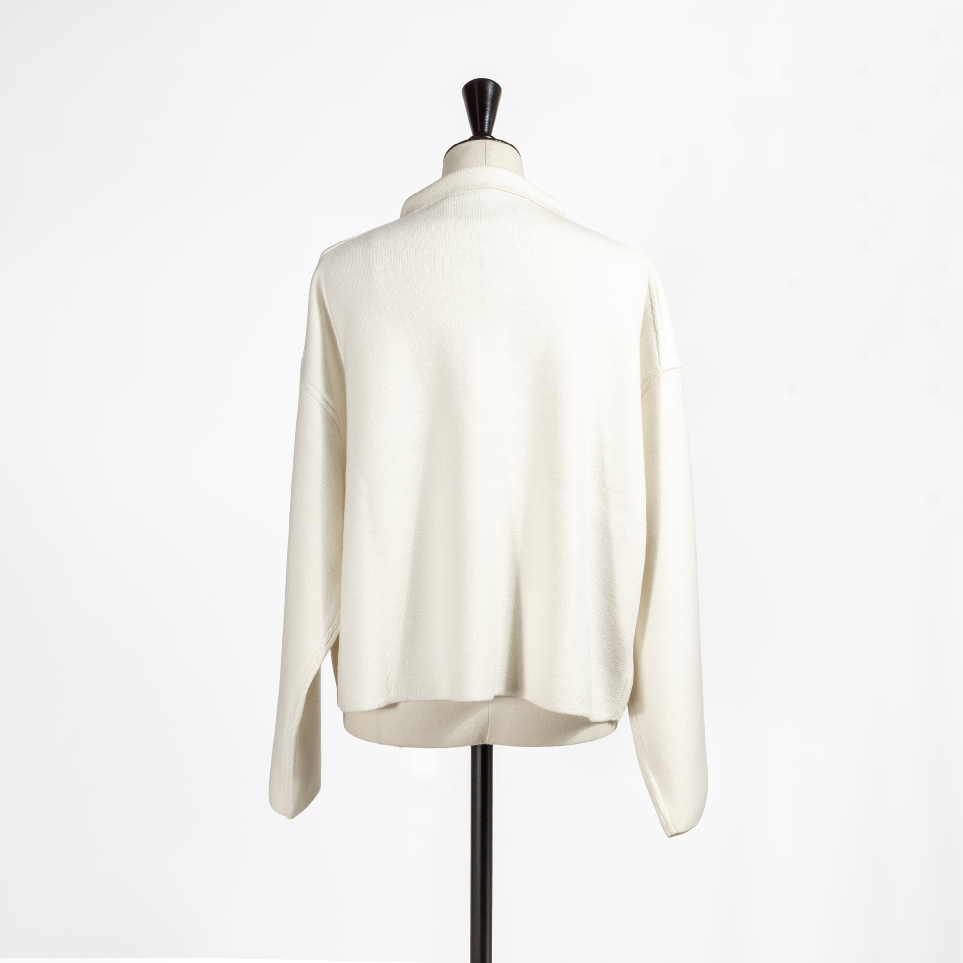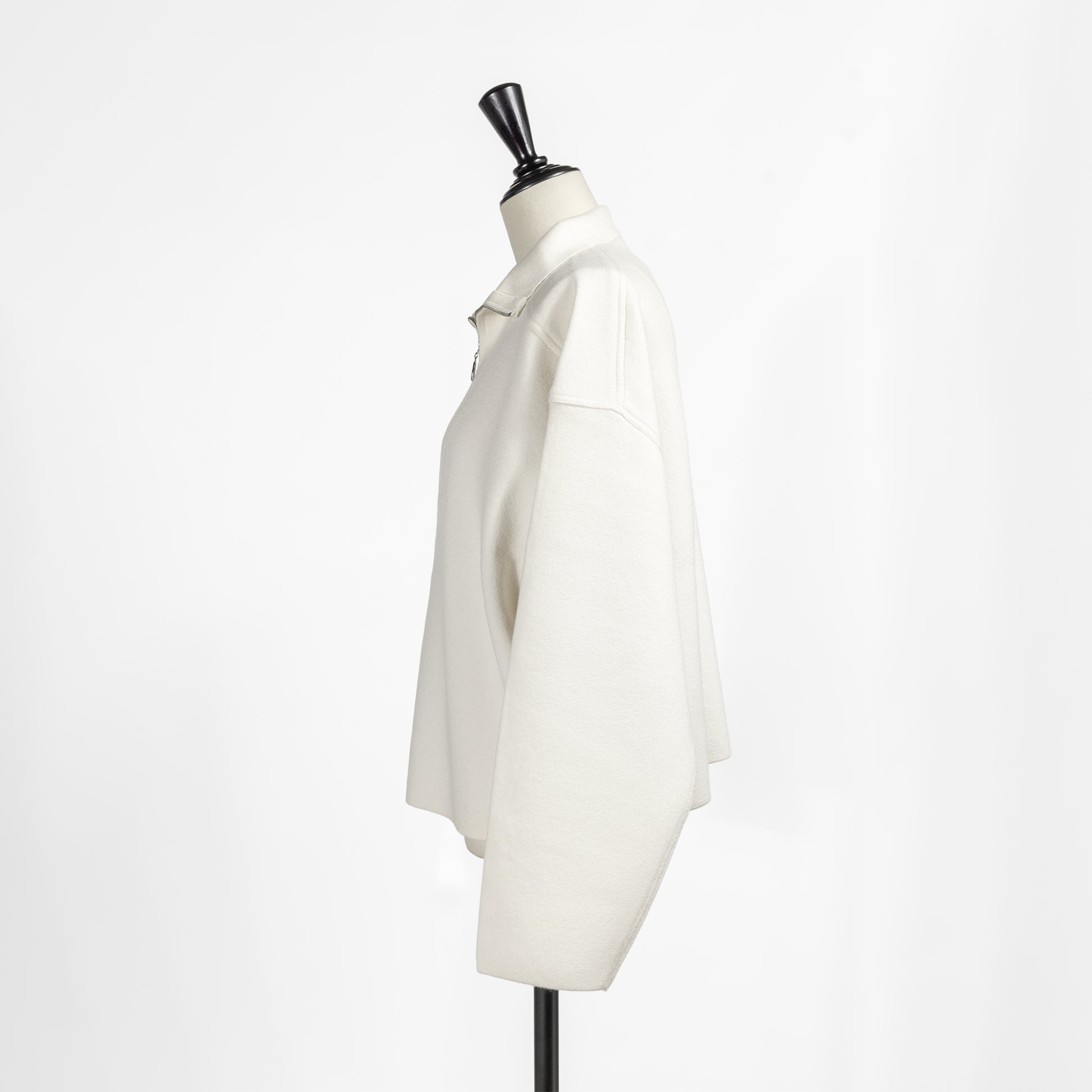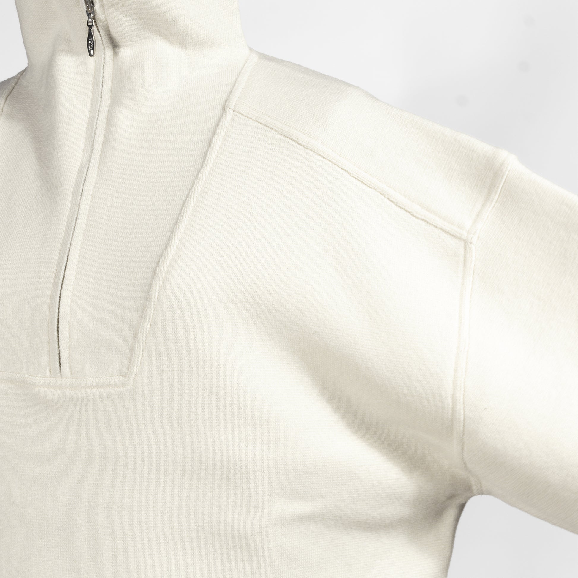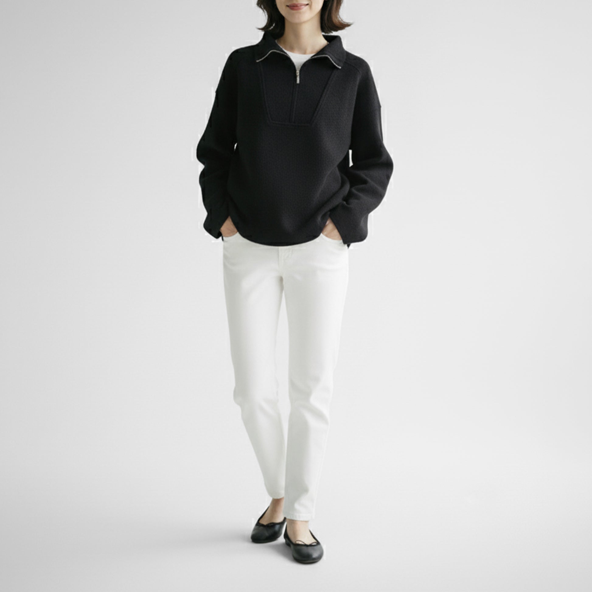 ジップの開き具合で襟の雰囲気を変えられるプルオーバーニット
