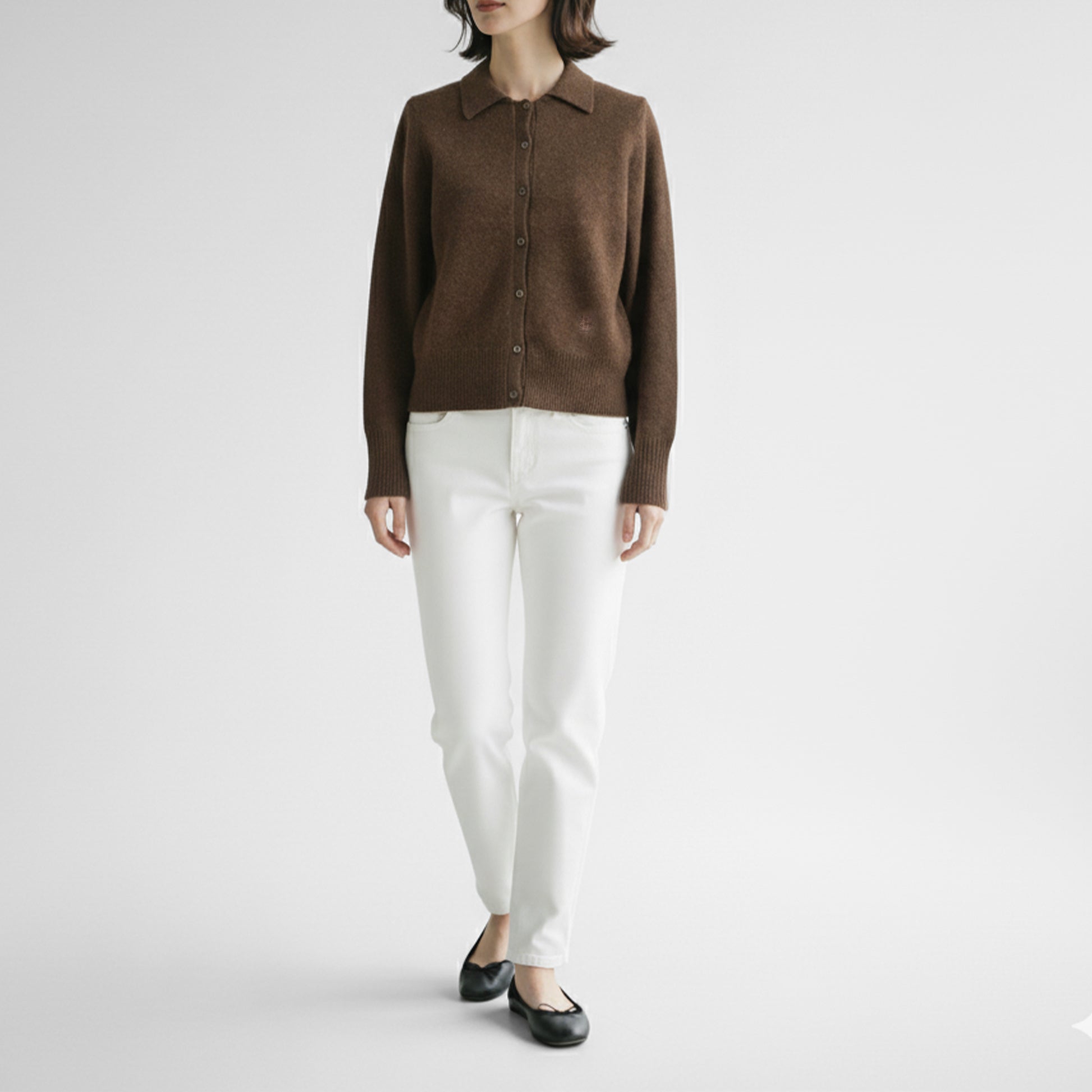 襟付きできちんと感もプラスされていて、いつもとはニュアンスの違ったカーディガンスタイルがお楽しみいただけます