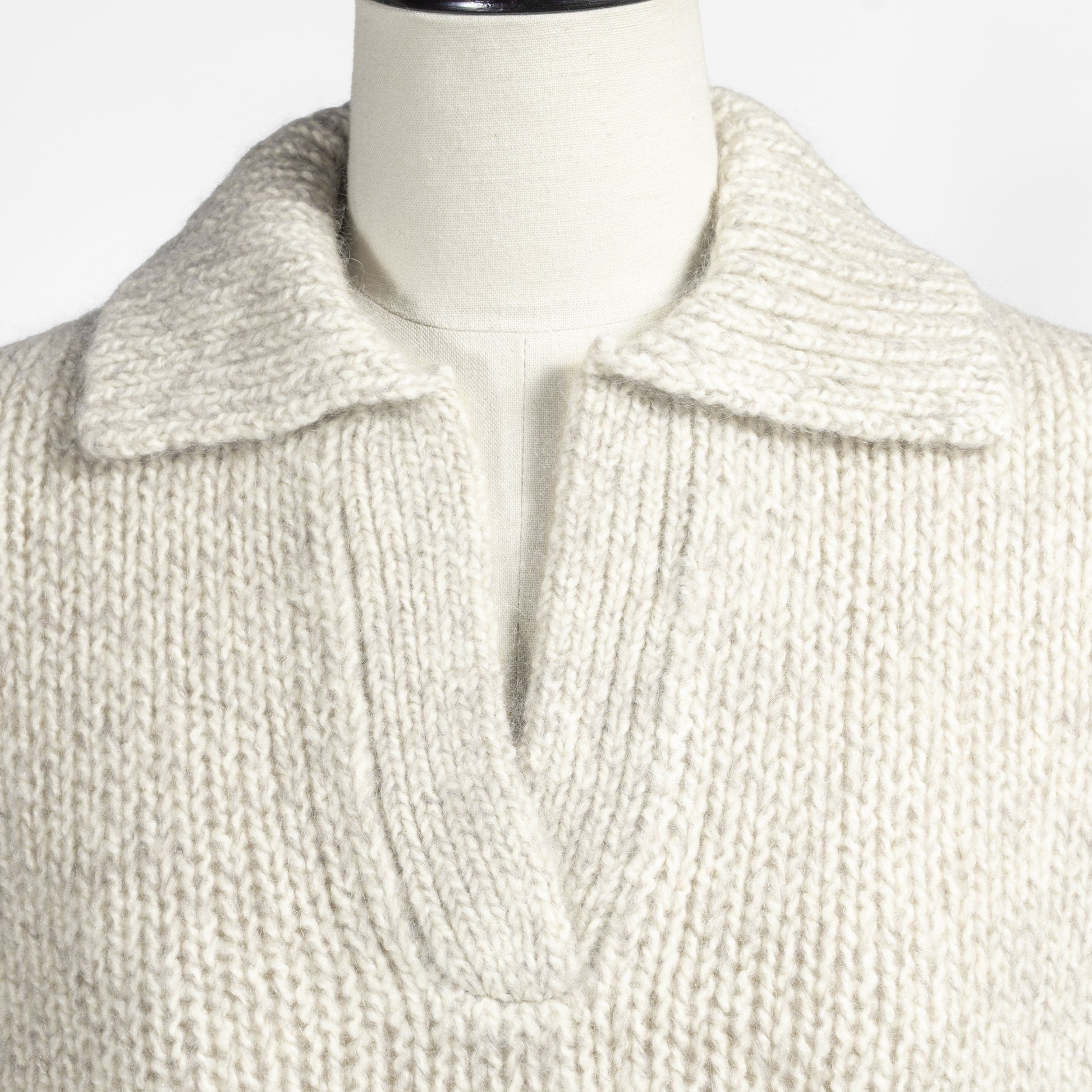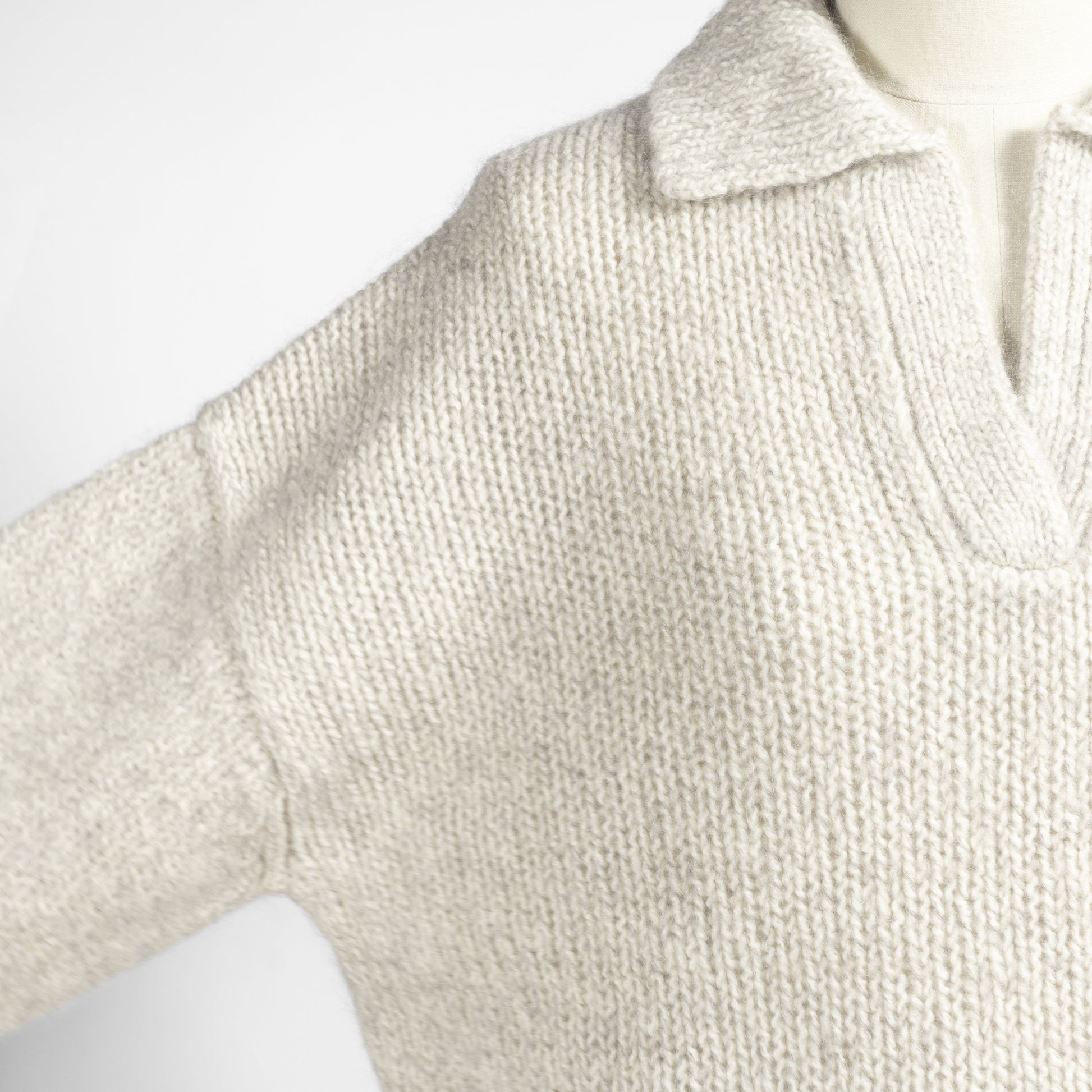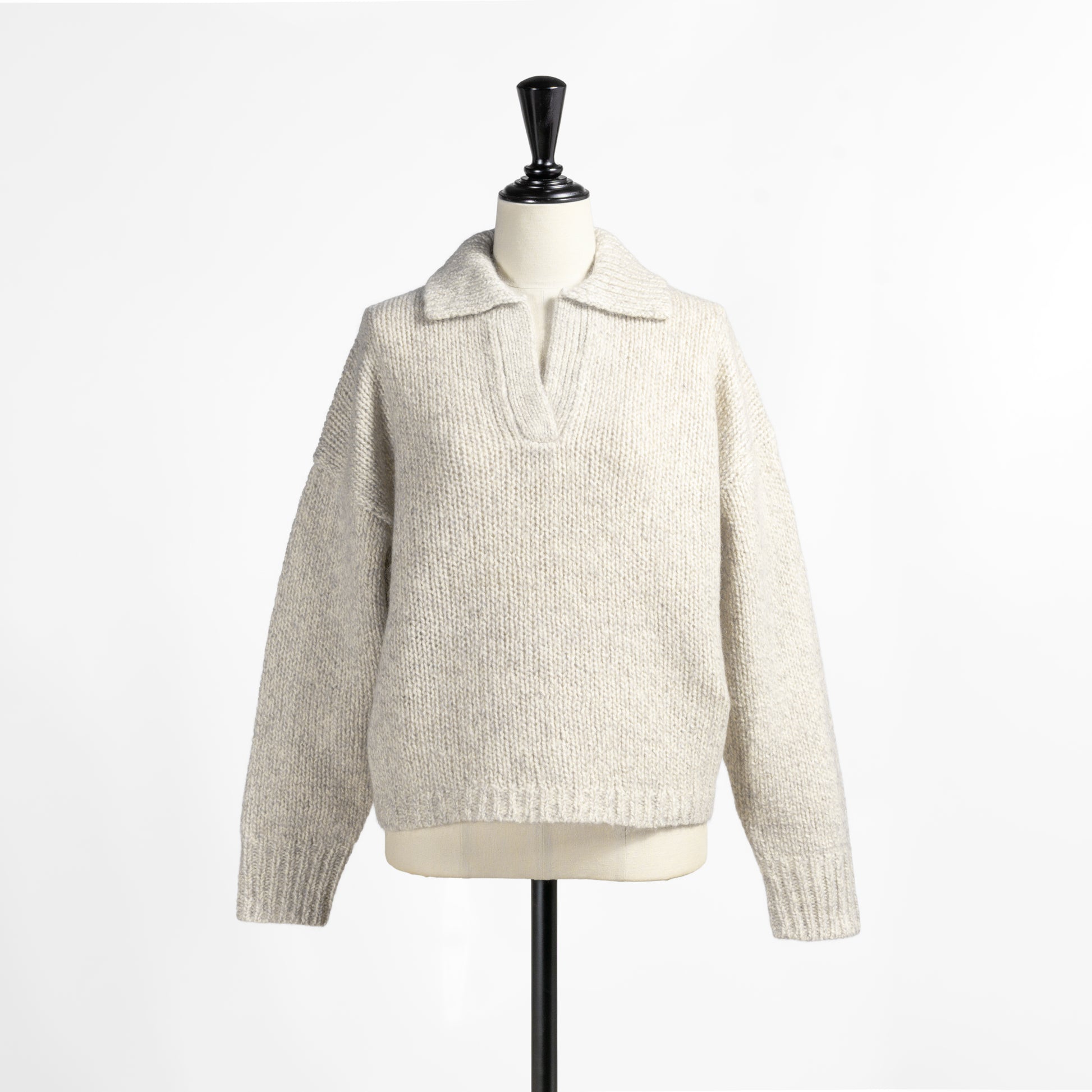 スキッパーデザインがセーターに良い感じの抜けをプラス
