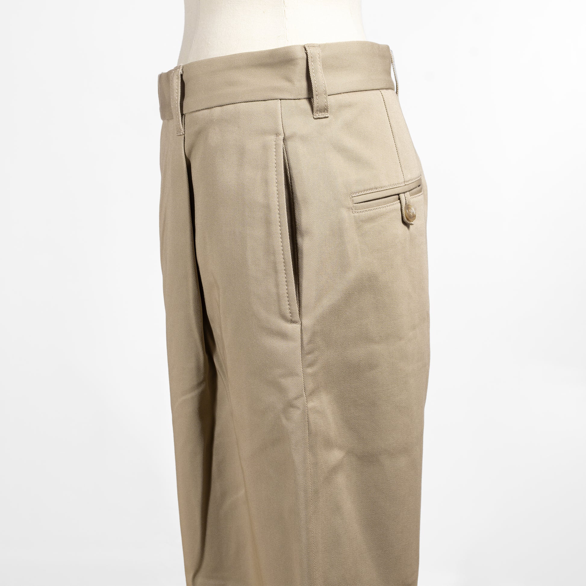 深めのタックが入ったクラシックなデザインを、太すぎないセミワイドシルエットでモダンに仕上げてあります