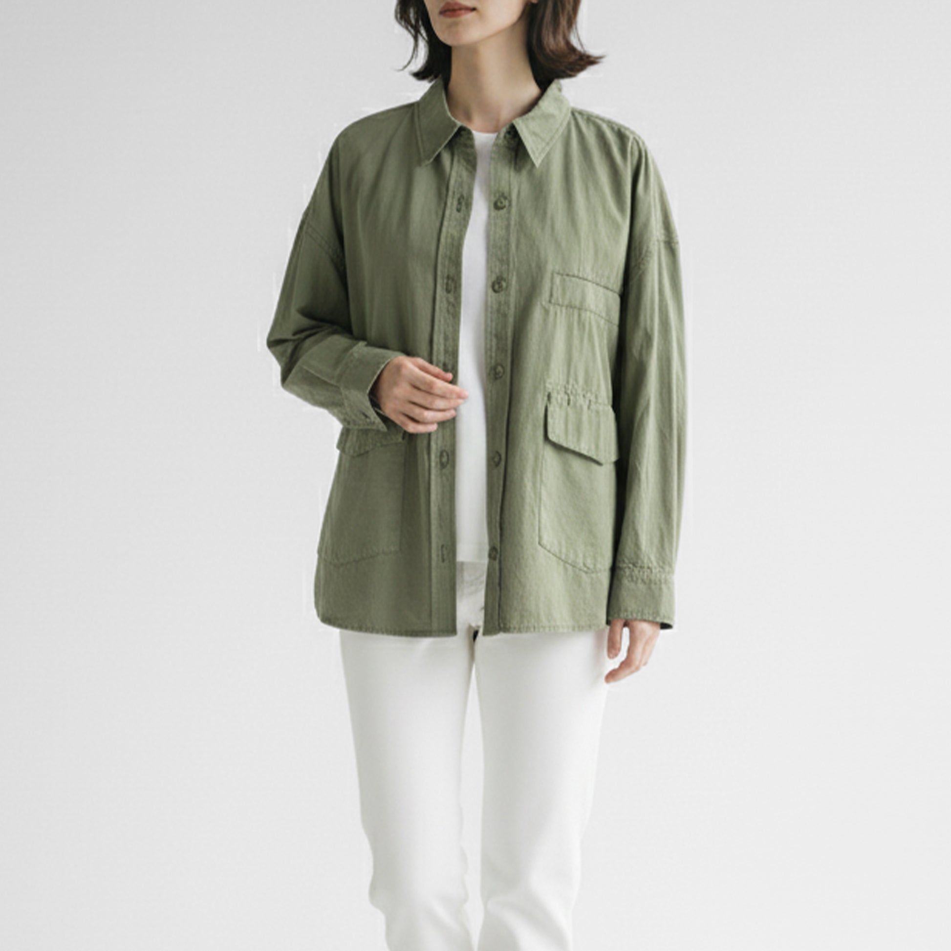 ミリタリージャケット風のデザインが目を惹くシャツ
