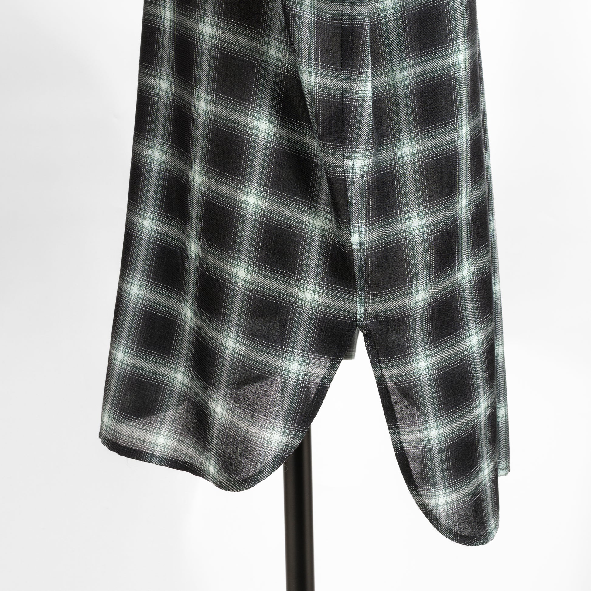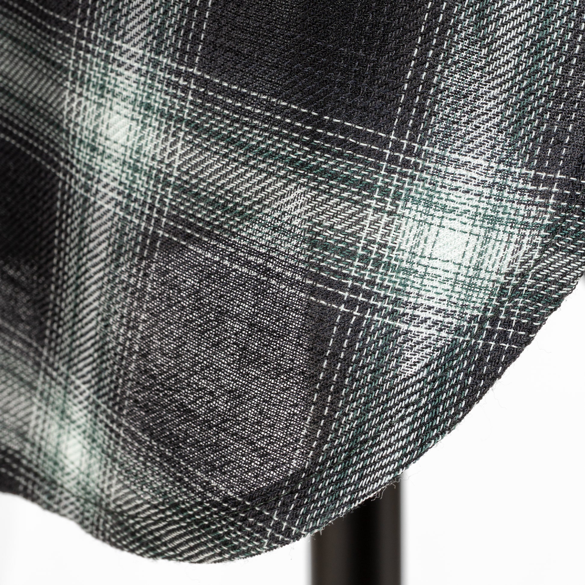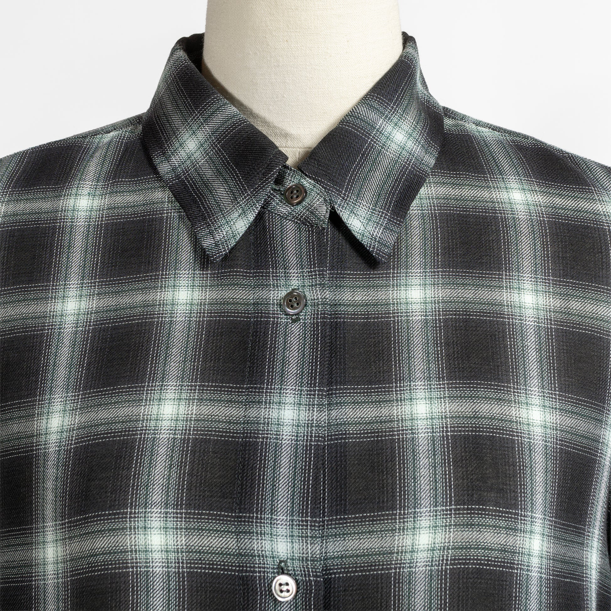 ダークトーンの控えめなチェック柄は、色合わせがしやすく上品な印象