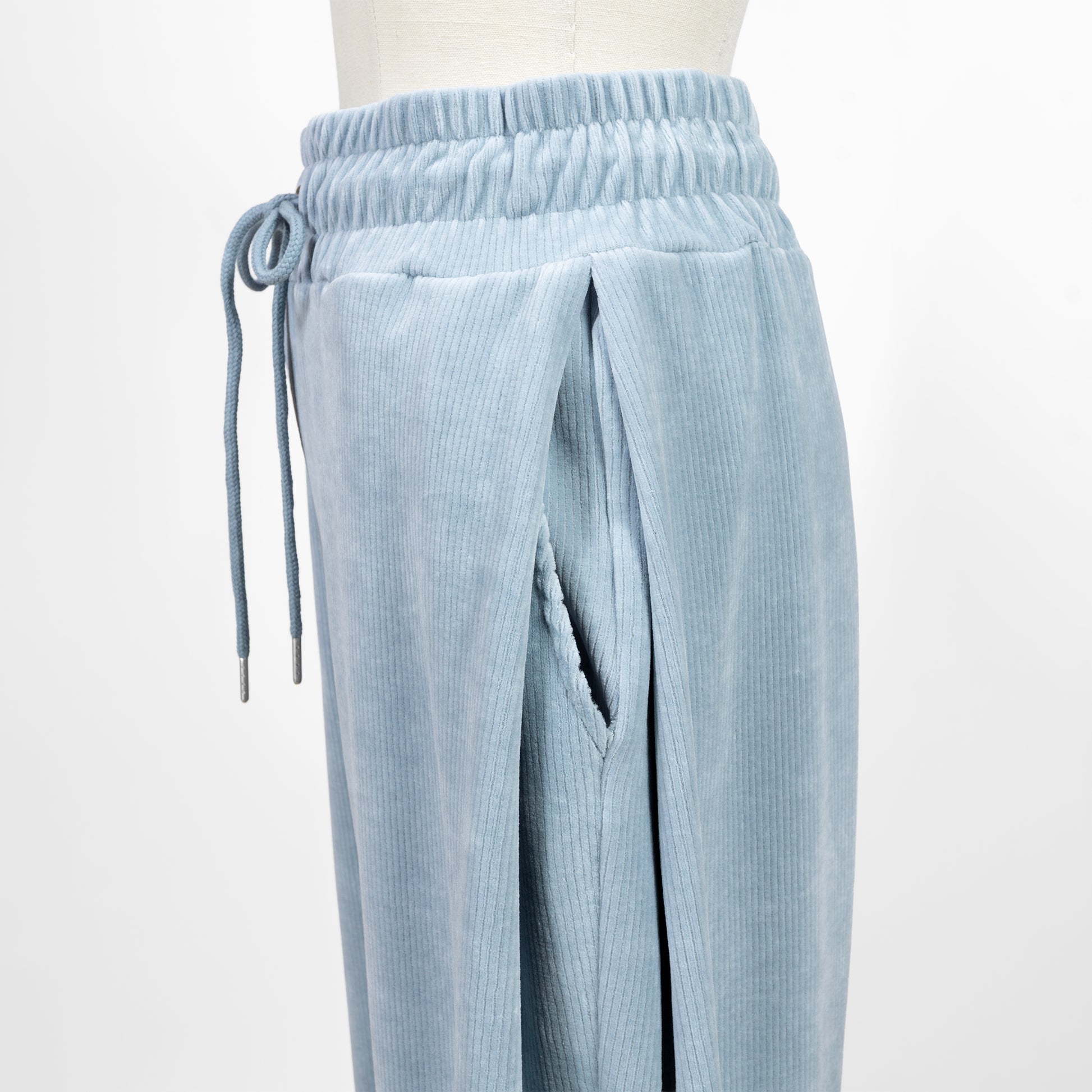 伸縮性に優れたストレッチ入りのコーデュロイ素材を使用したワイドパンツ