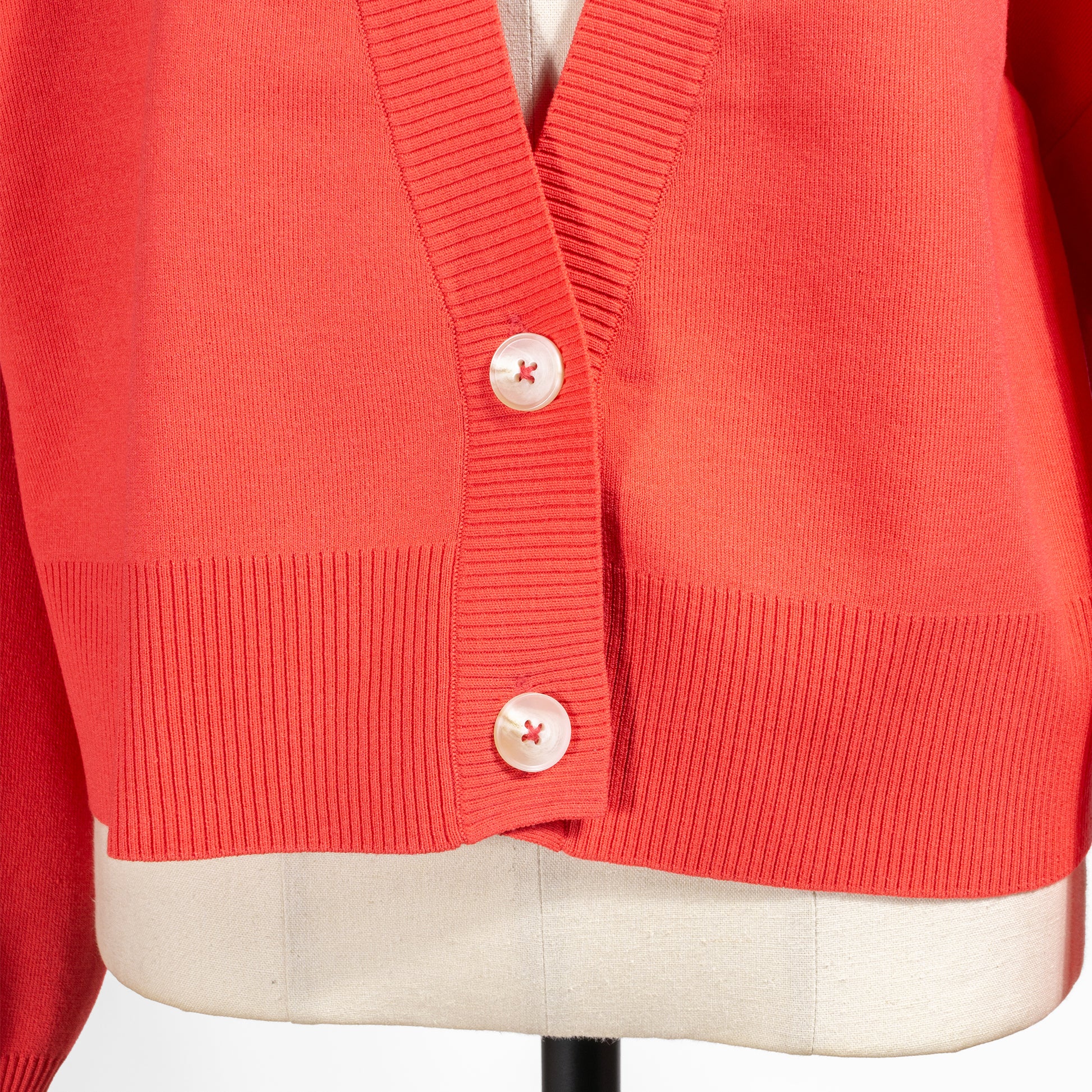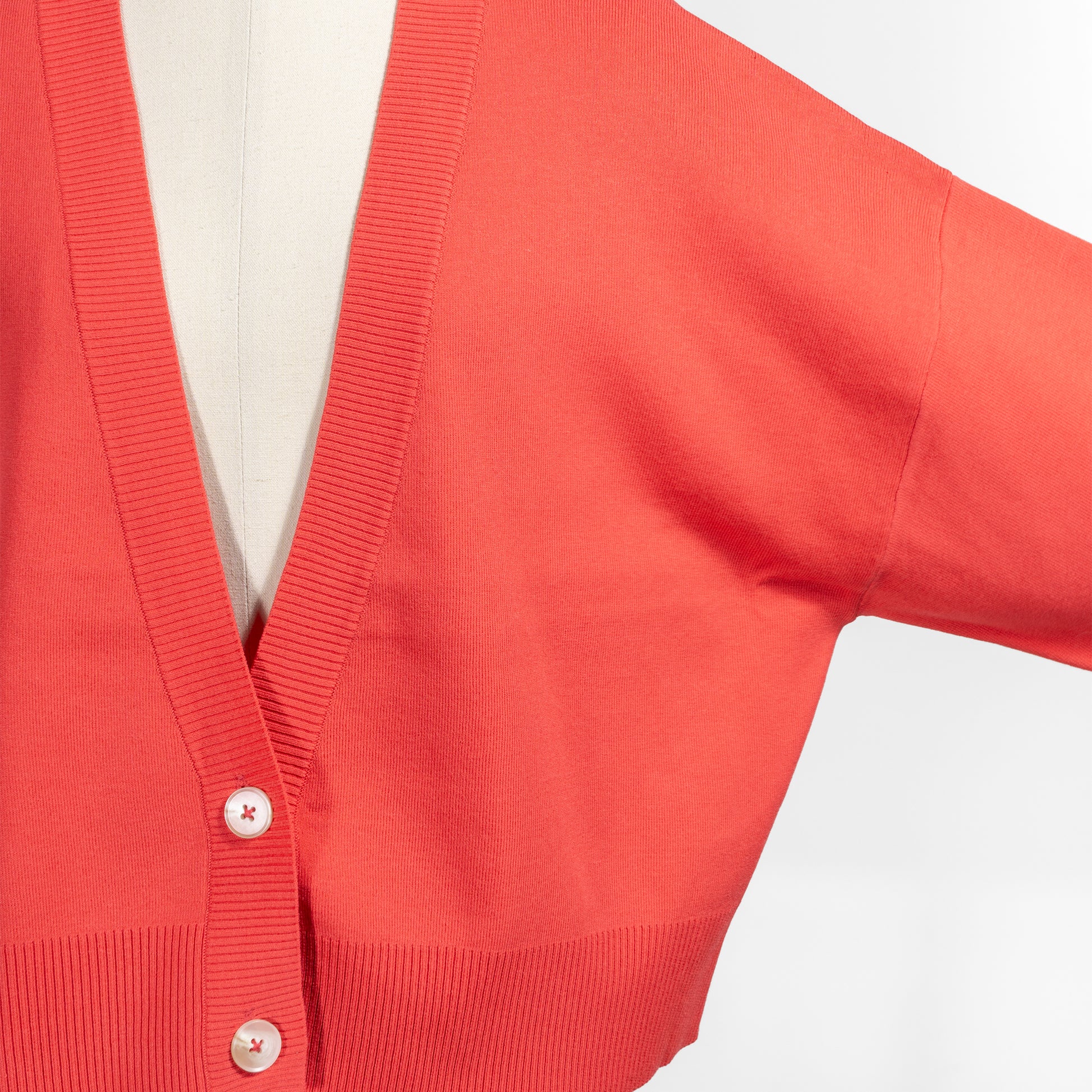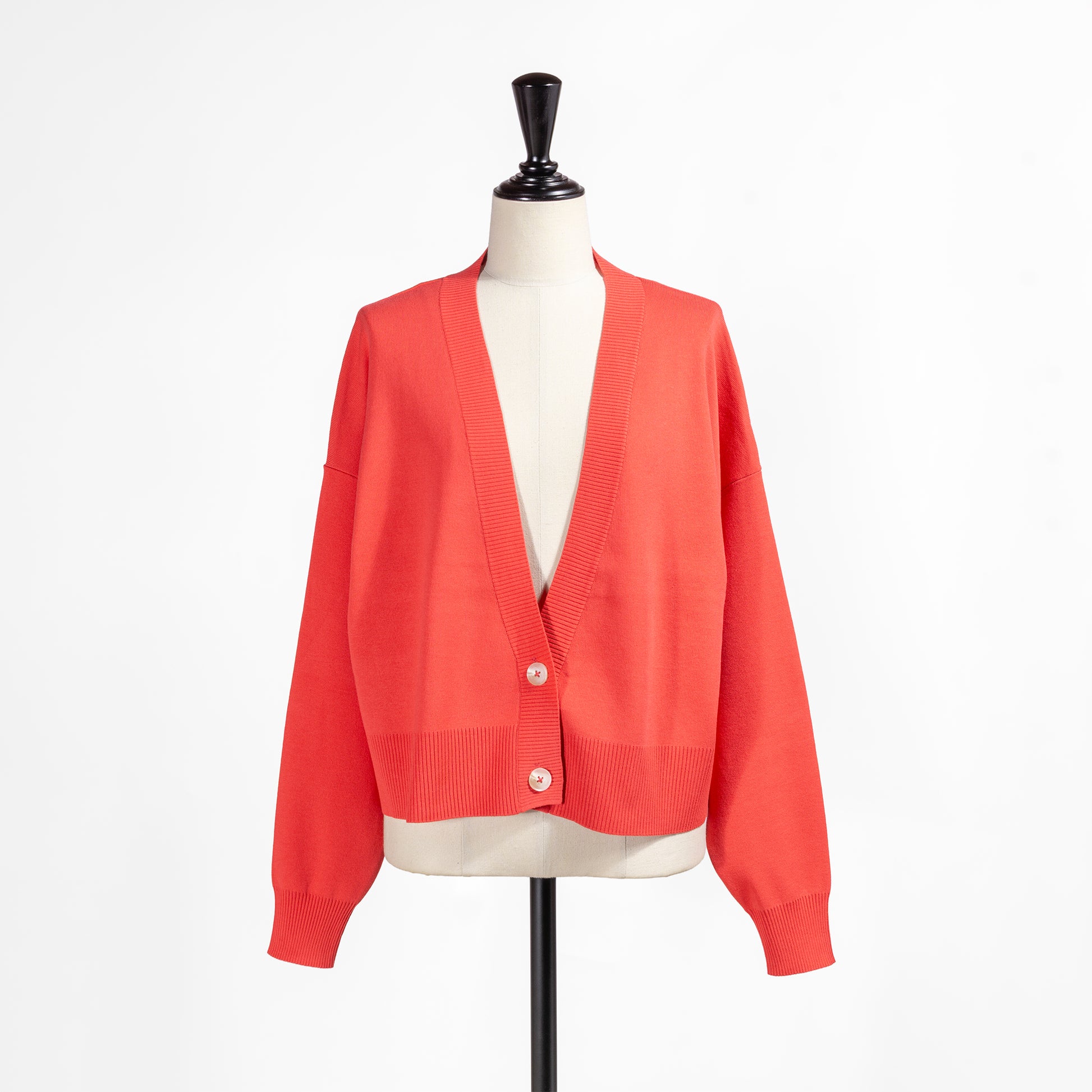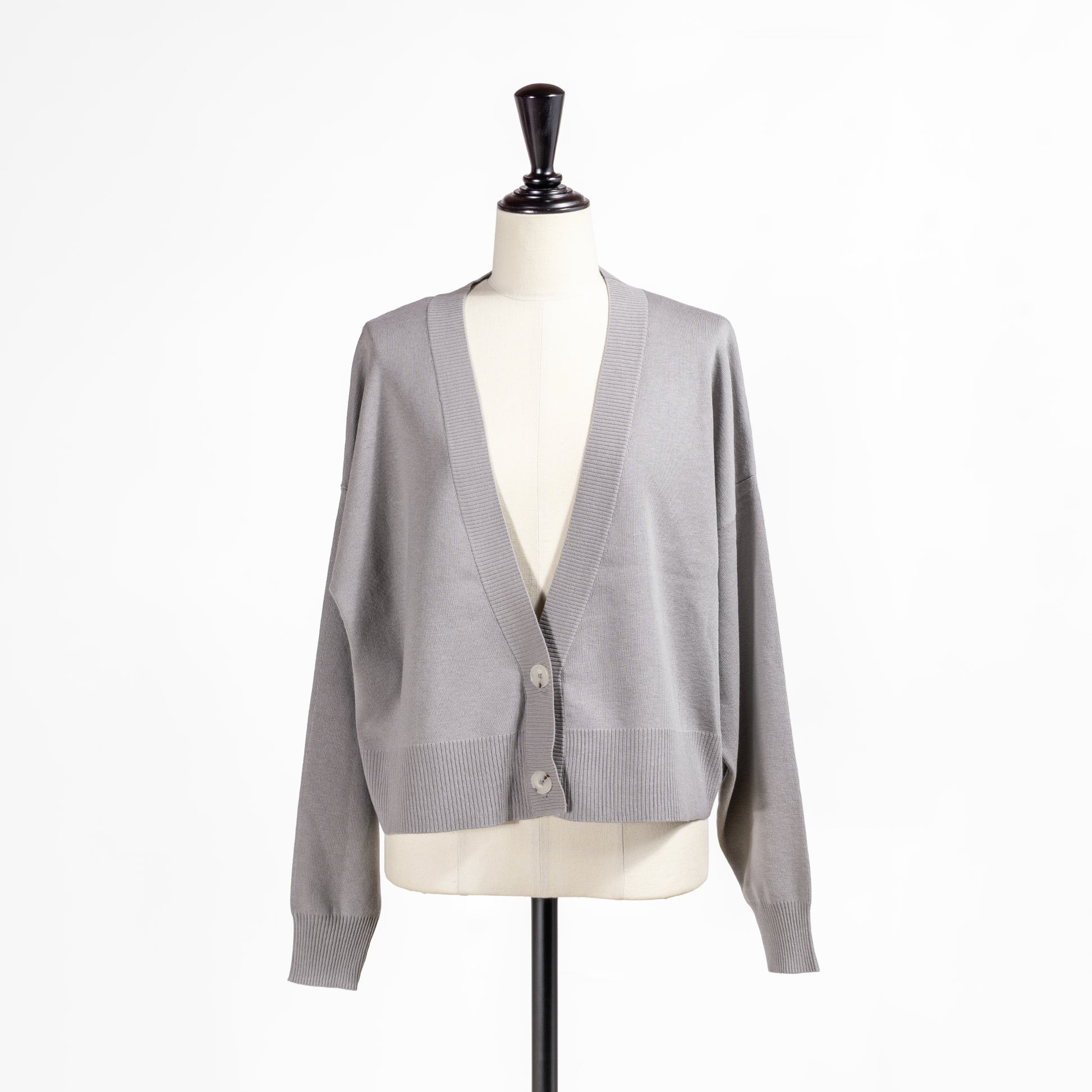 深めのVネックとスッキリとしたクロップド丈が印象的なカーディガン