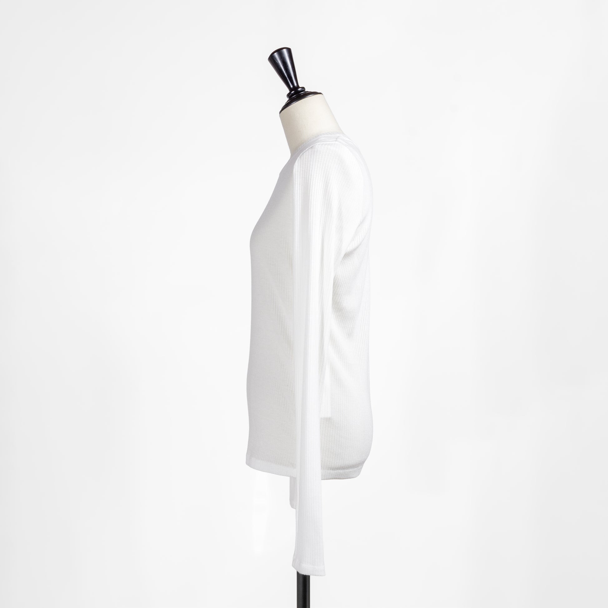 シンプルなデザインのたね合わせやすく、1枚着からインナーまで幅広い着こなしが可能