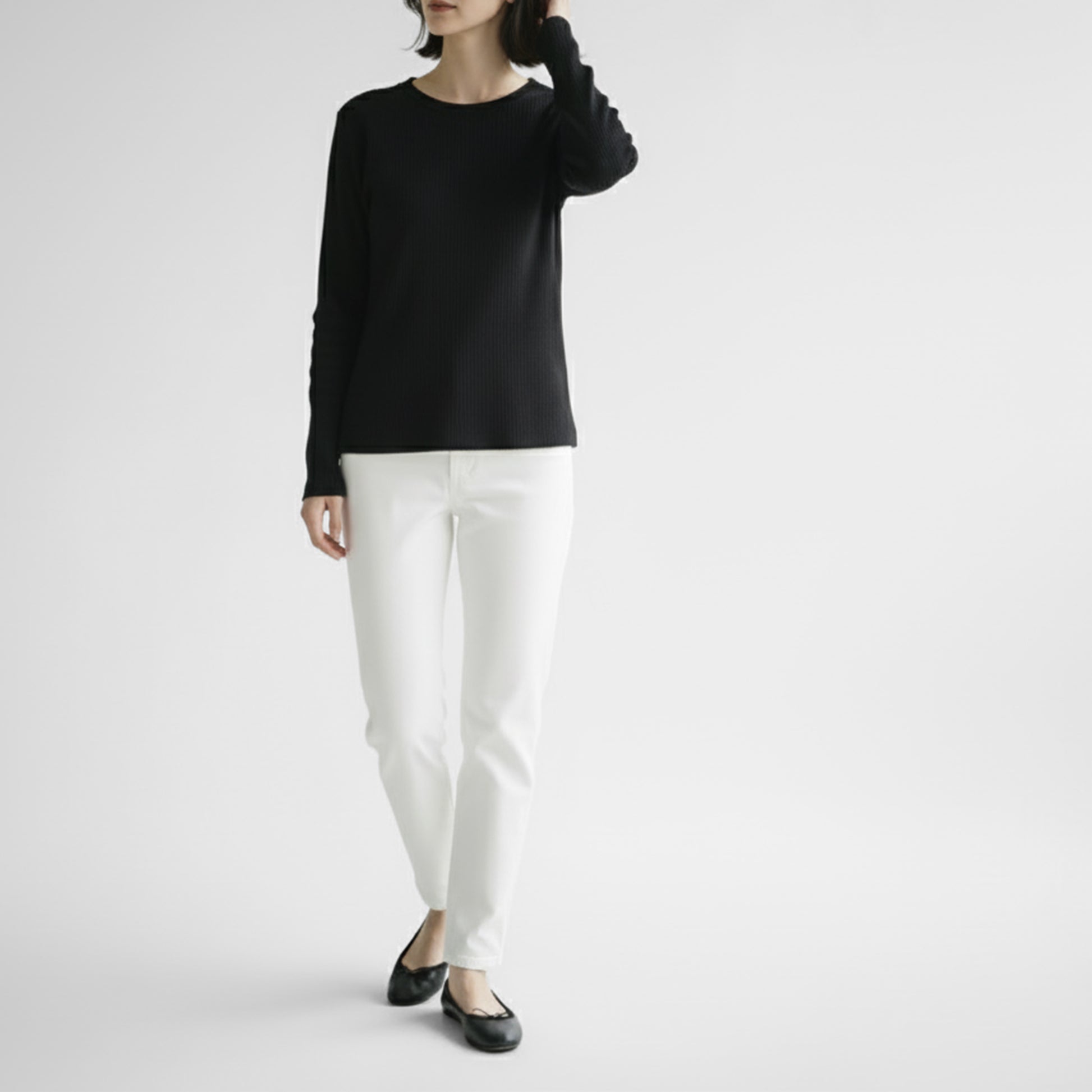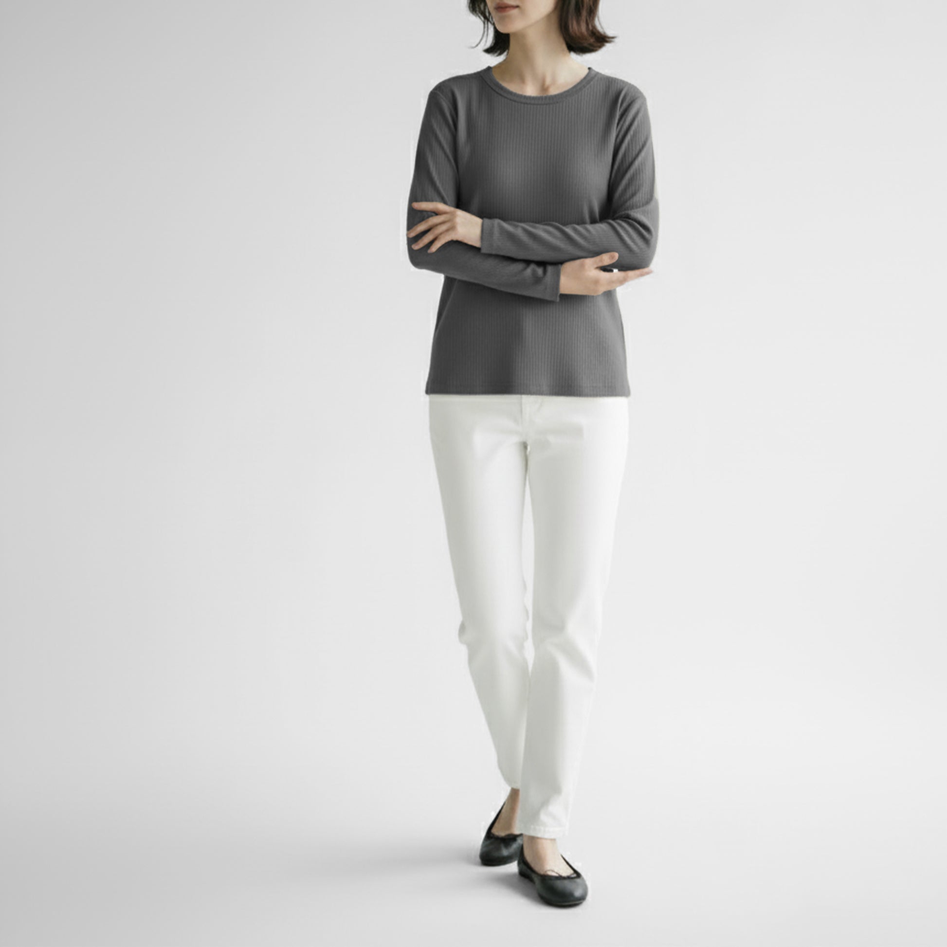 リブ編みならではの優れた伸縮性も相まって、いつでも快適な着心地を提供してくれます