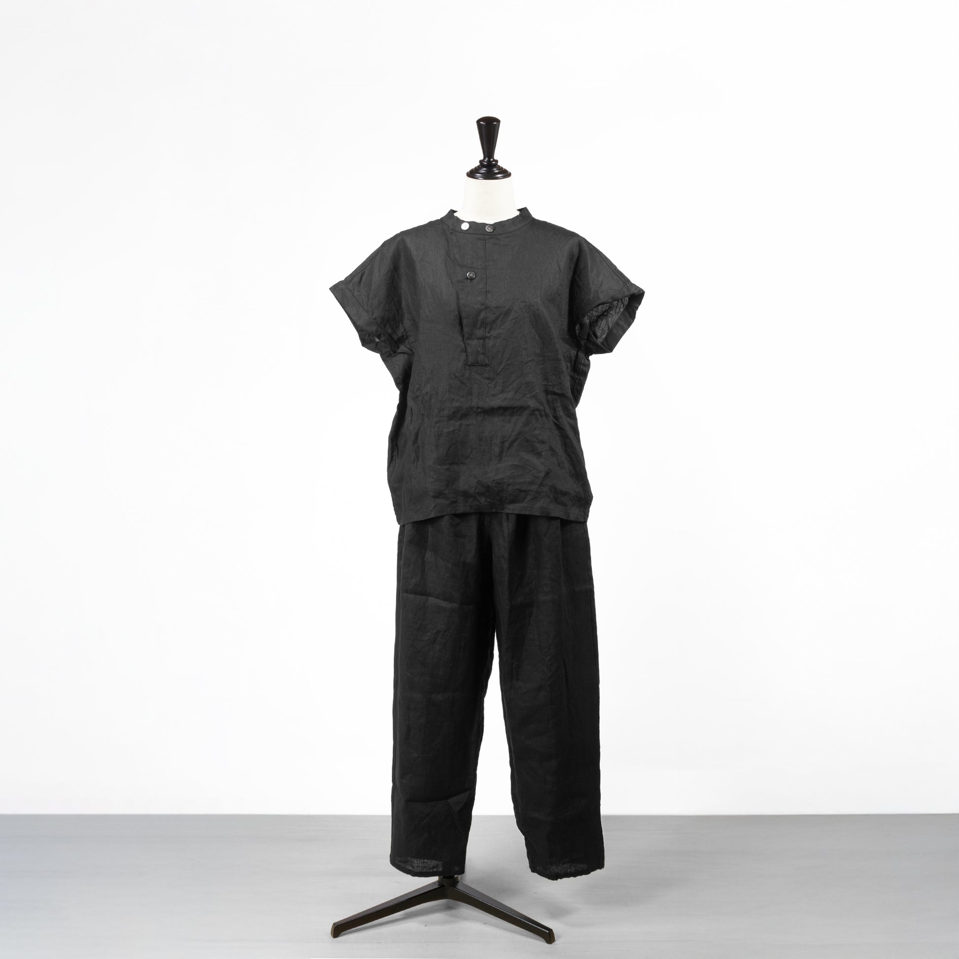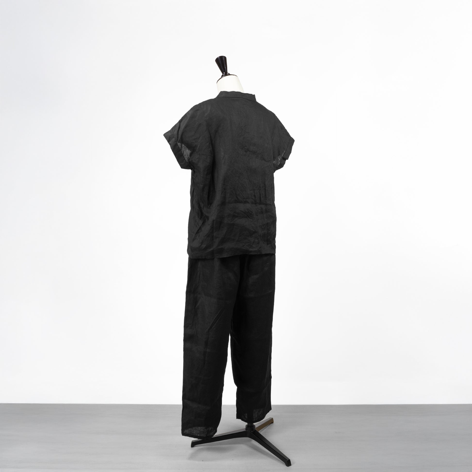 ブラックに染めることでナチュラルなリネンがグッとシックな印象になり、カジュアルだけでなくキレイめのスタイルにもマッチします