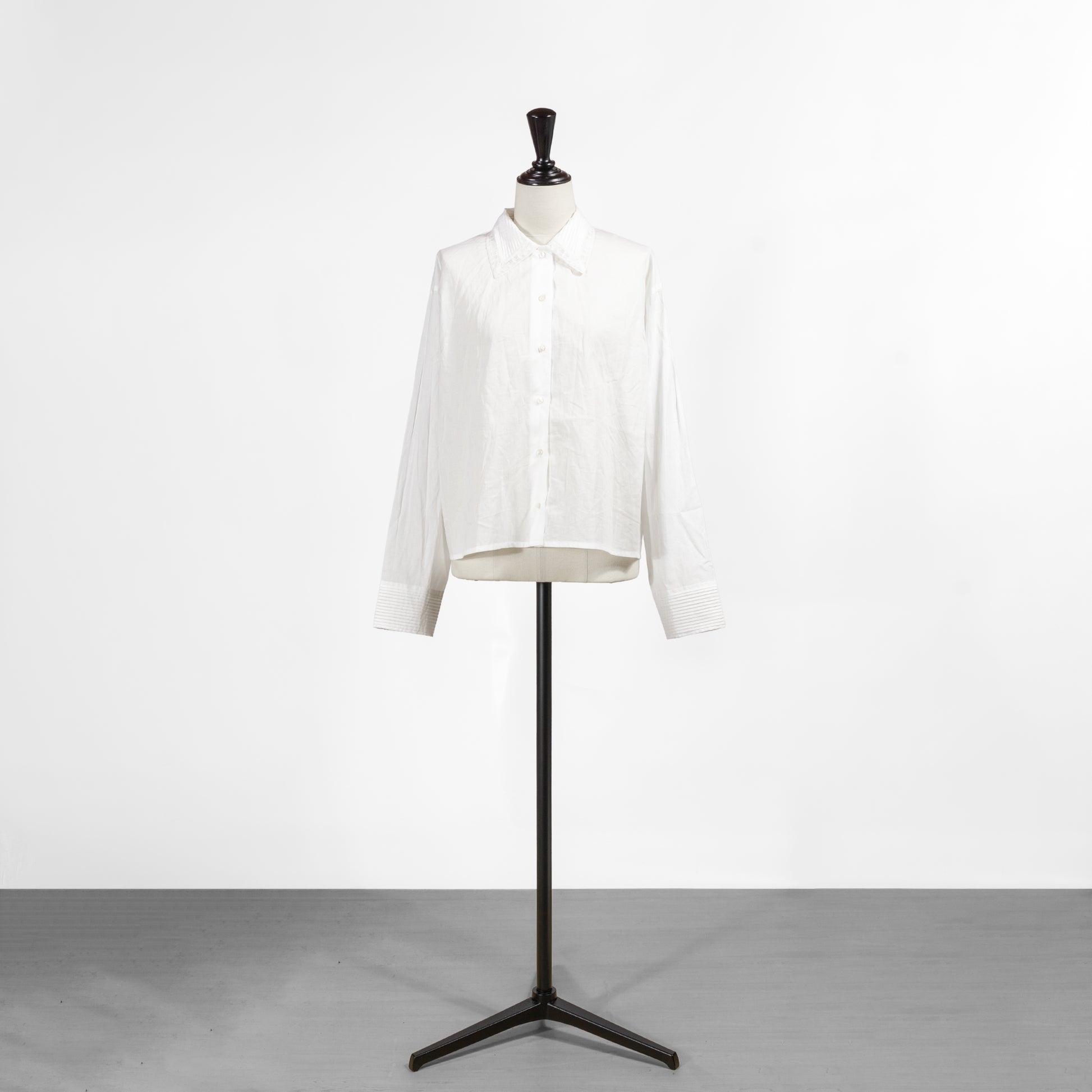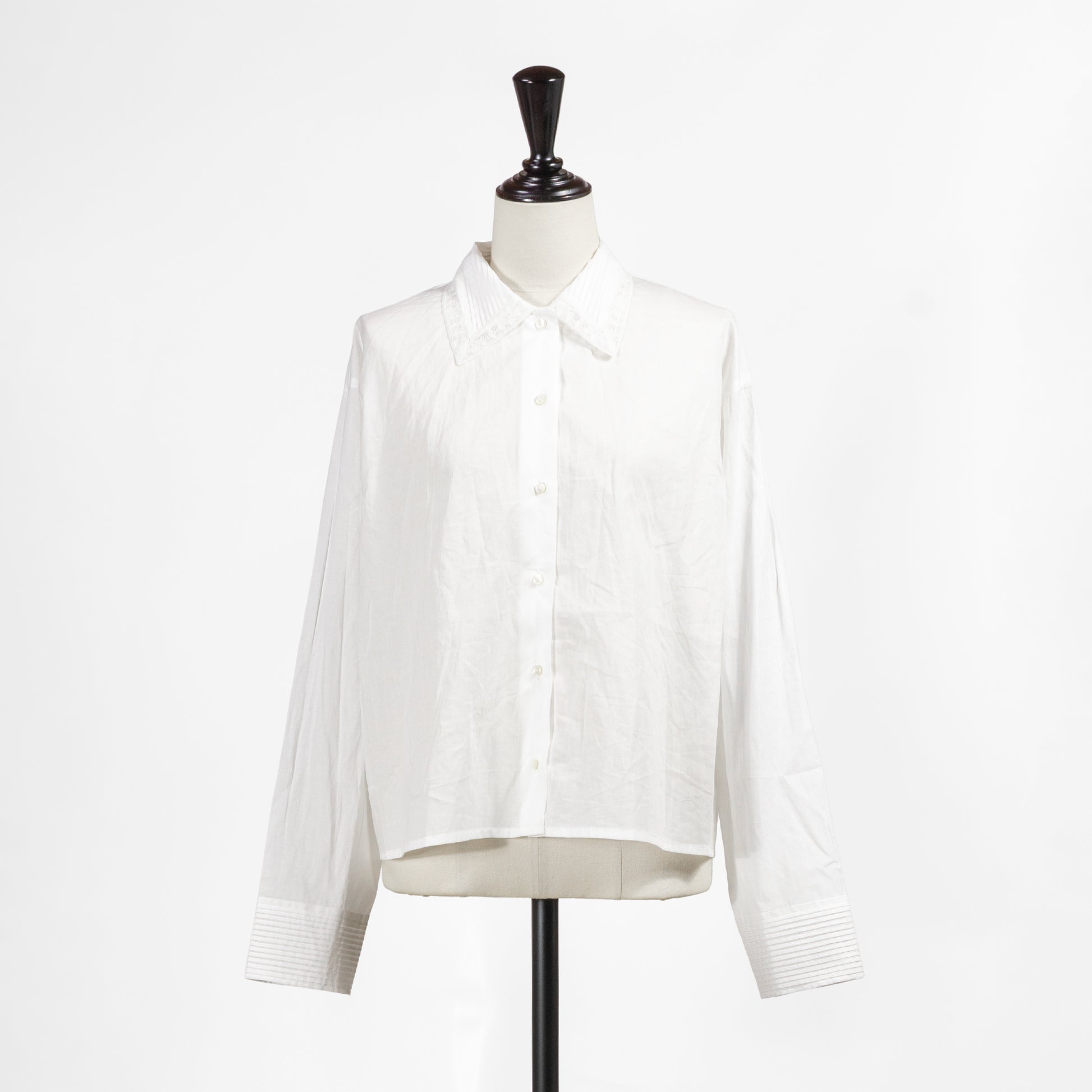 ピンタックとレースを襟にあしらった「ピンタックカラーシャツ」です