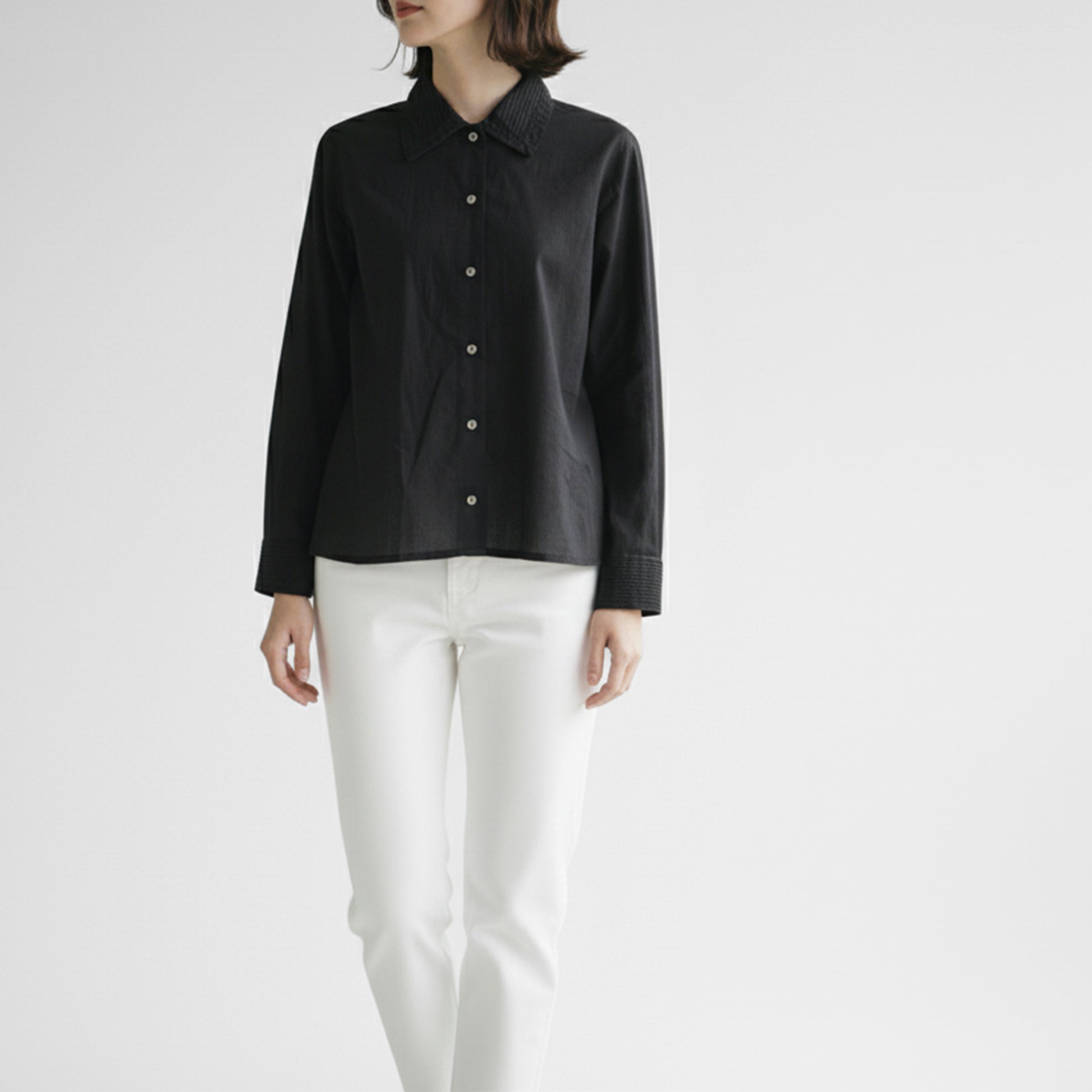 フェミニン&クラシカルな襟がシンプルなシャツを格上げ