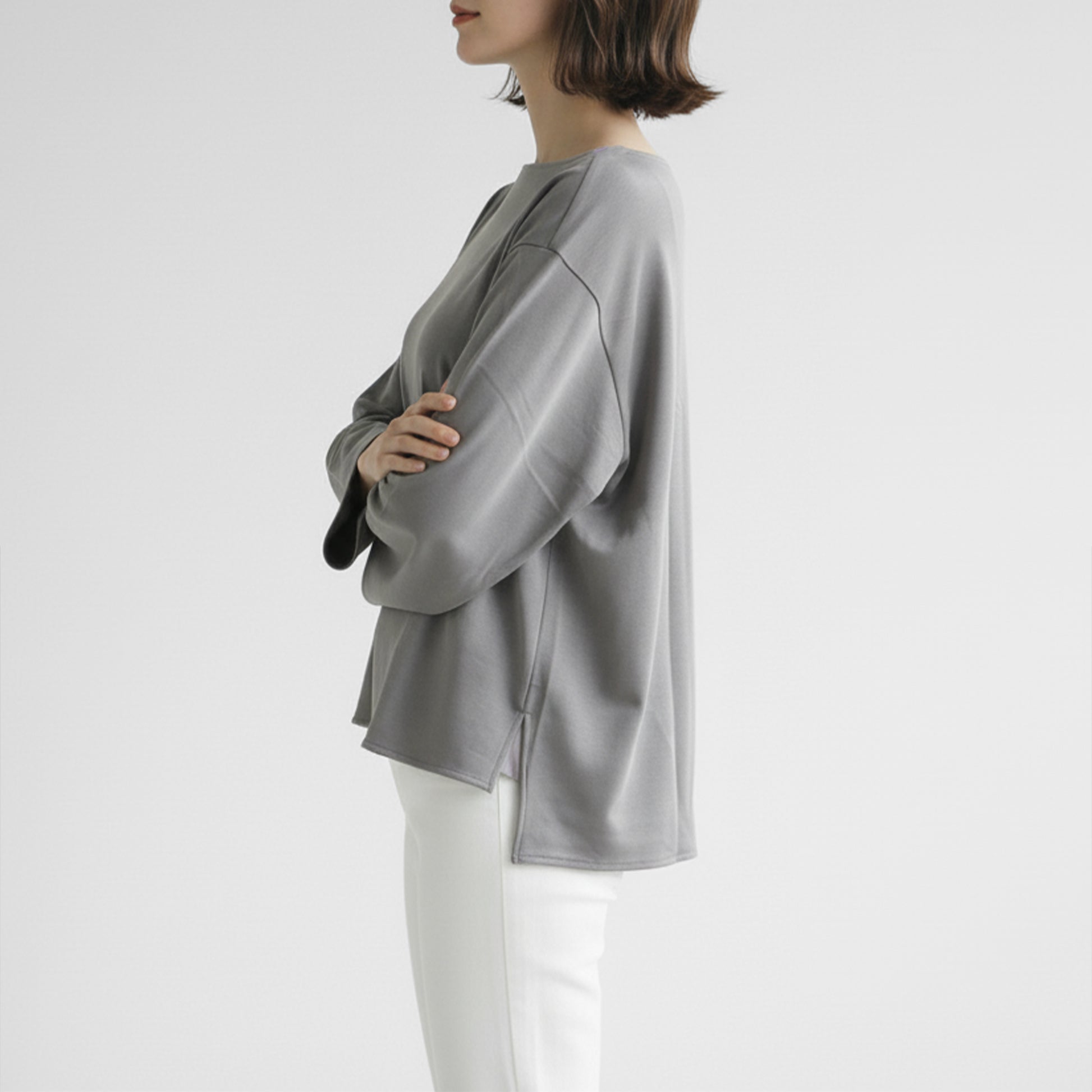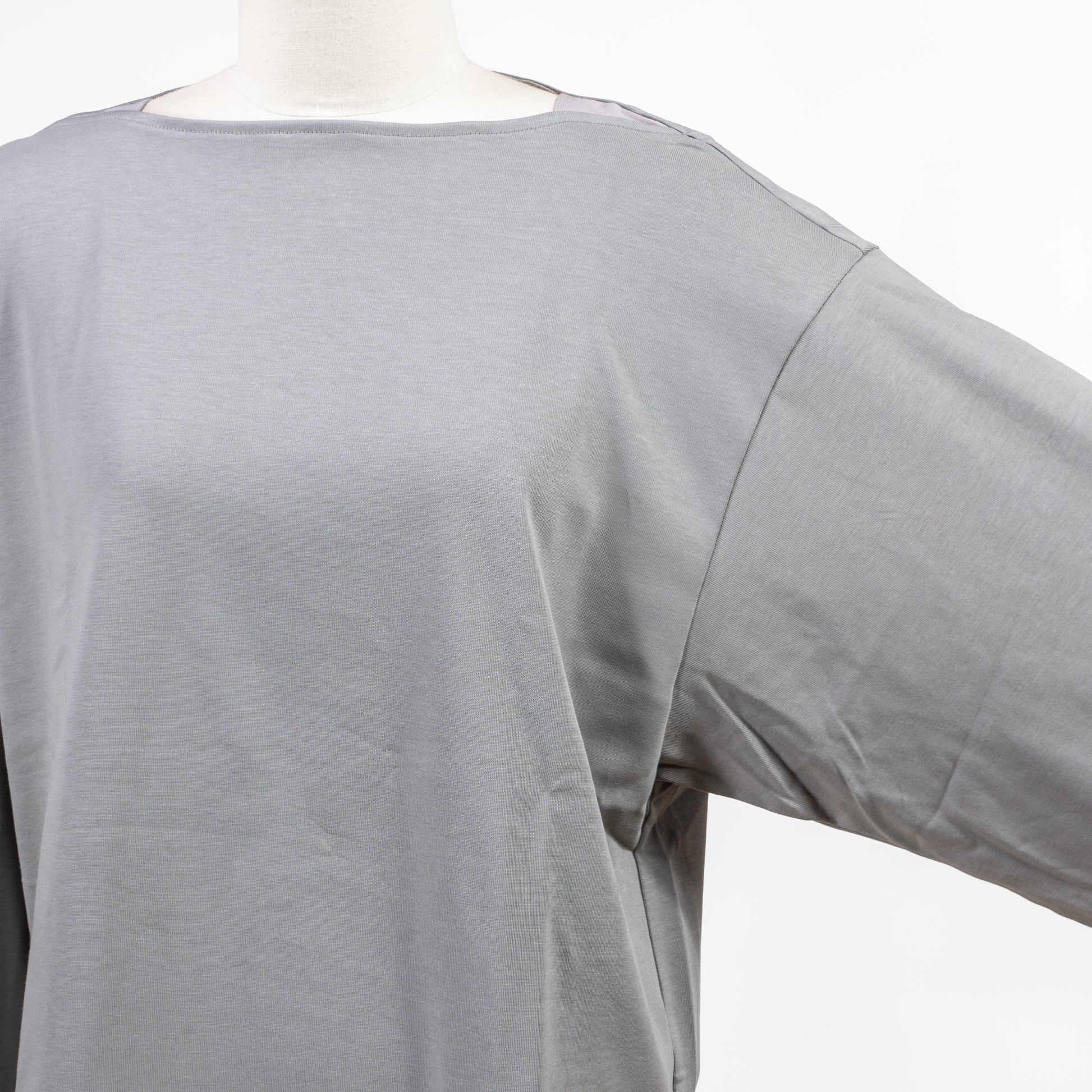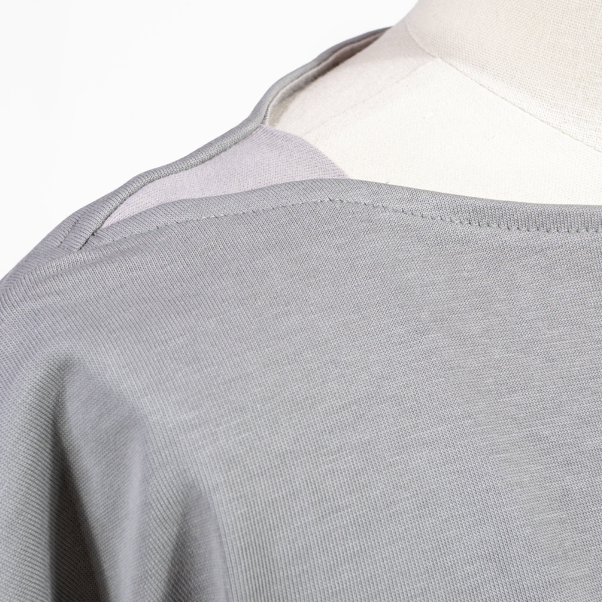 ボートネックの両端とサイドスリットにリブをあしらうことで、より動きやすく、そして着脱しやすいようにアップデートされています