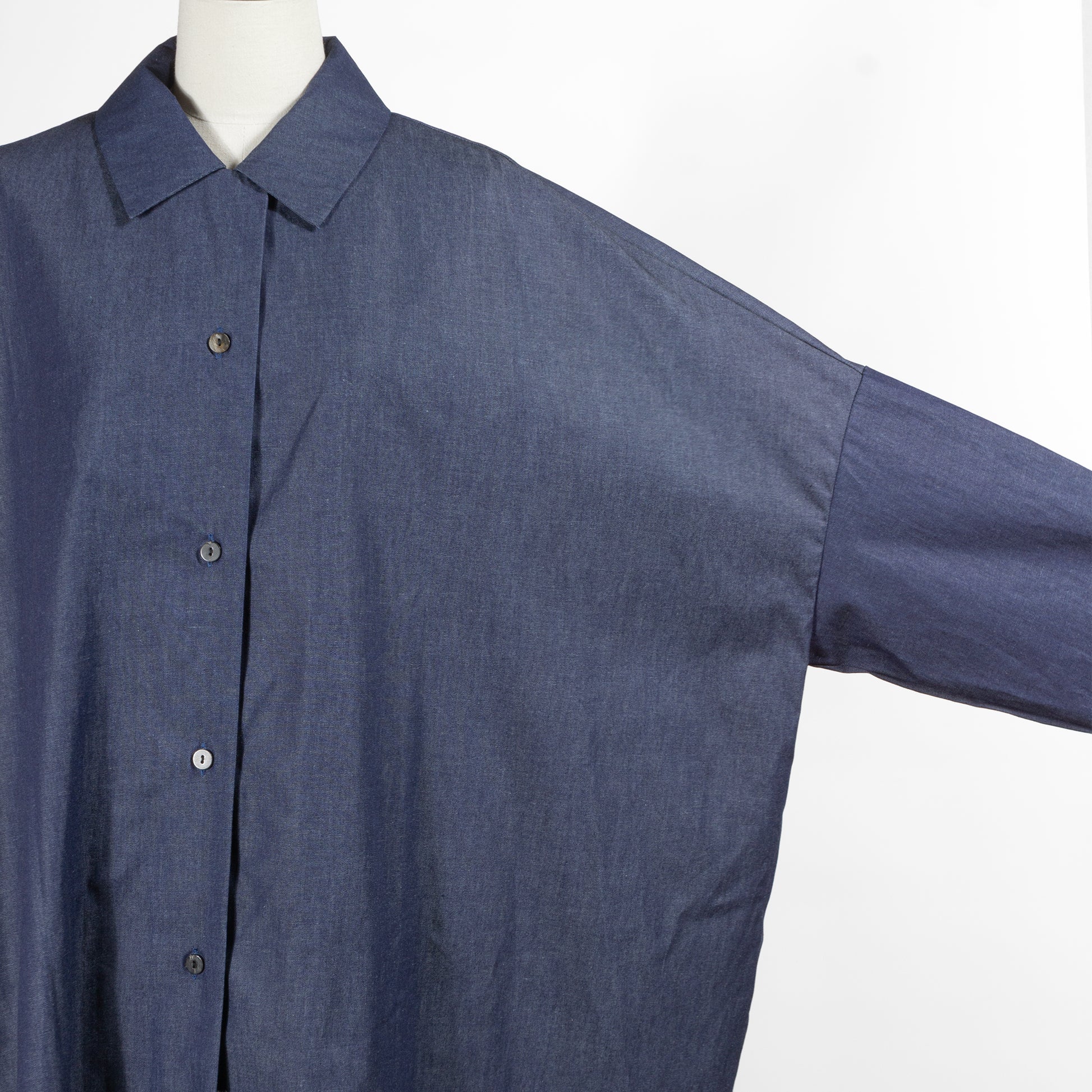 薄手で軽やかな着心地のデニム生地を使用したシャツワンピースです