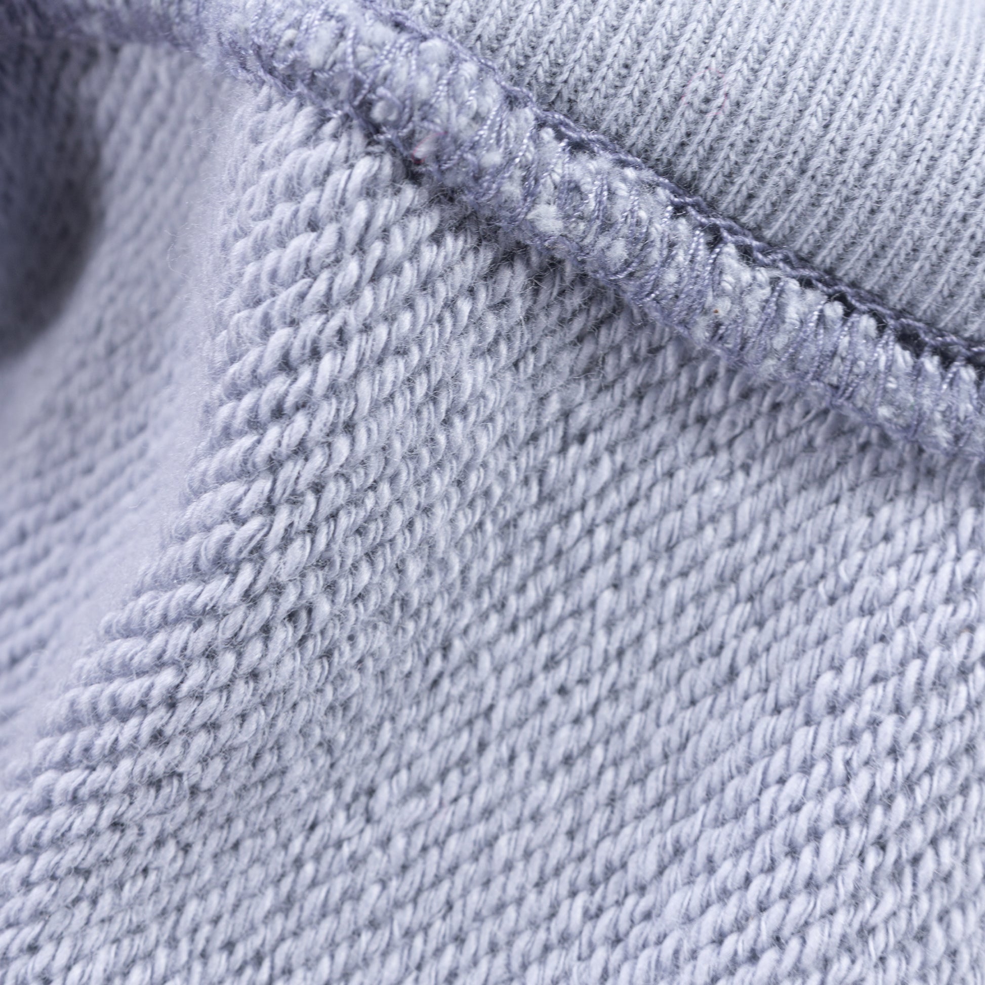 表には空気紡績糸を使用して軽さと丈夫さをプラスし、裏には柔らかな肌触りの無撚糸を使って着心地をアップグレード