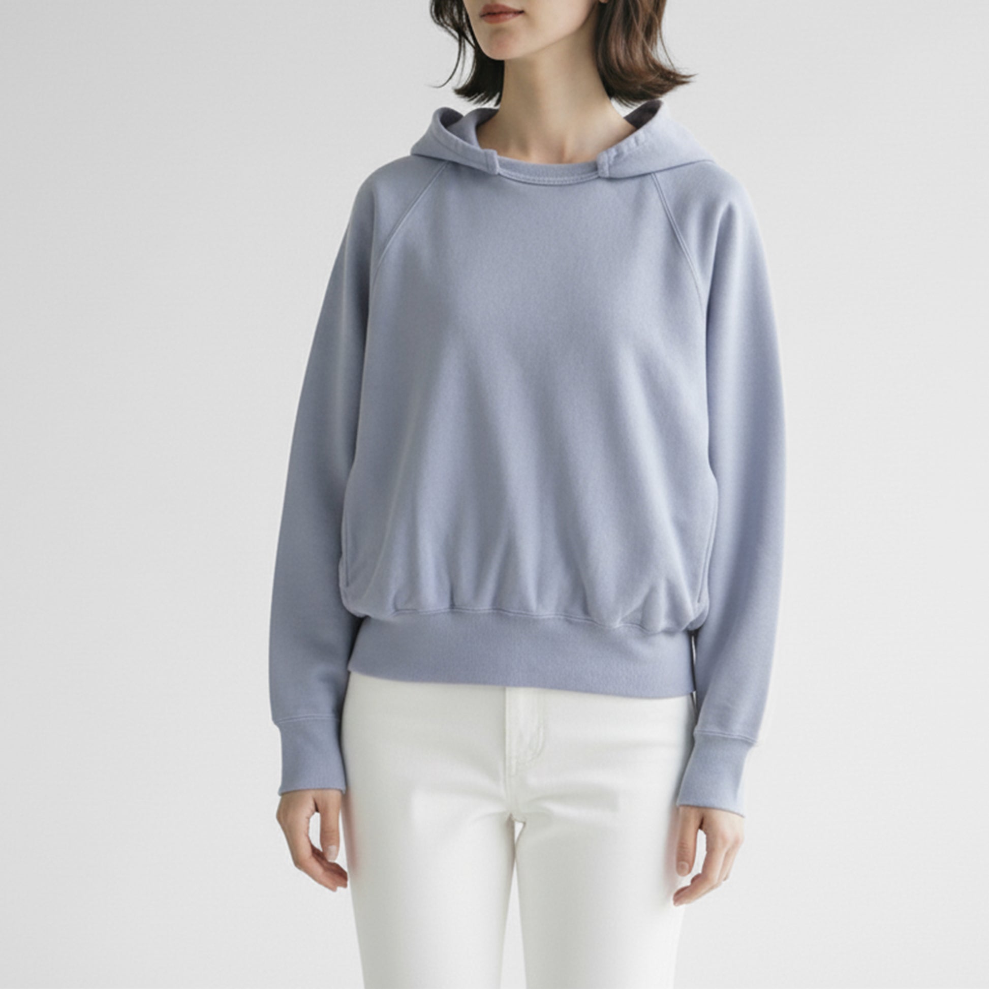 クルーネックにフードを重ねたようなスポーティーでヴィンテージライクなデザインと、春らしい明るいカラーリングで、シンプルに着るだけでサマになります