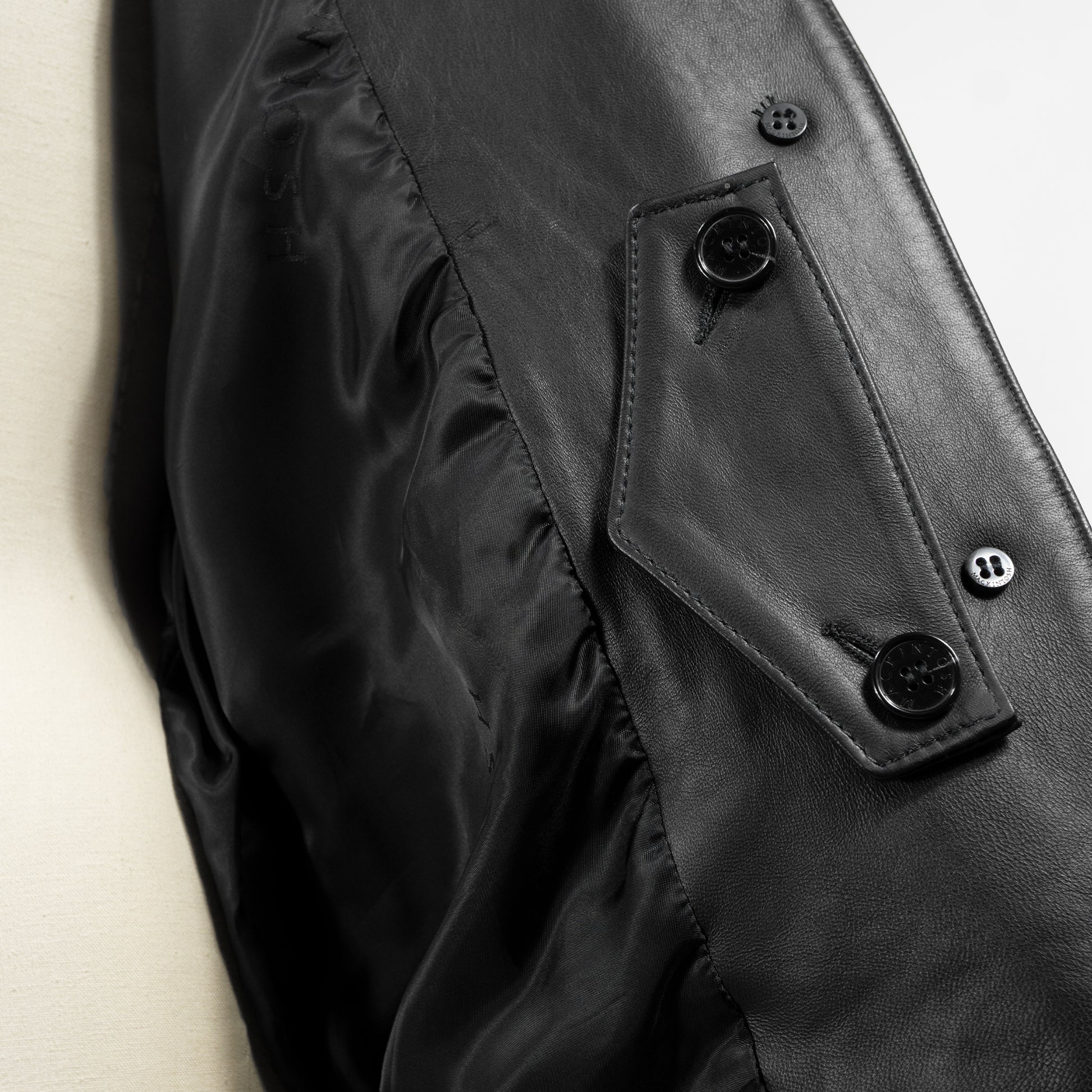 マッキントッシュを代表するモデル「ハンビー」をベースにしたショート丈のレザージャケットです