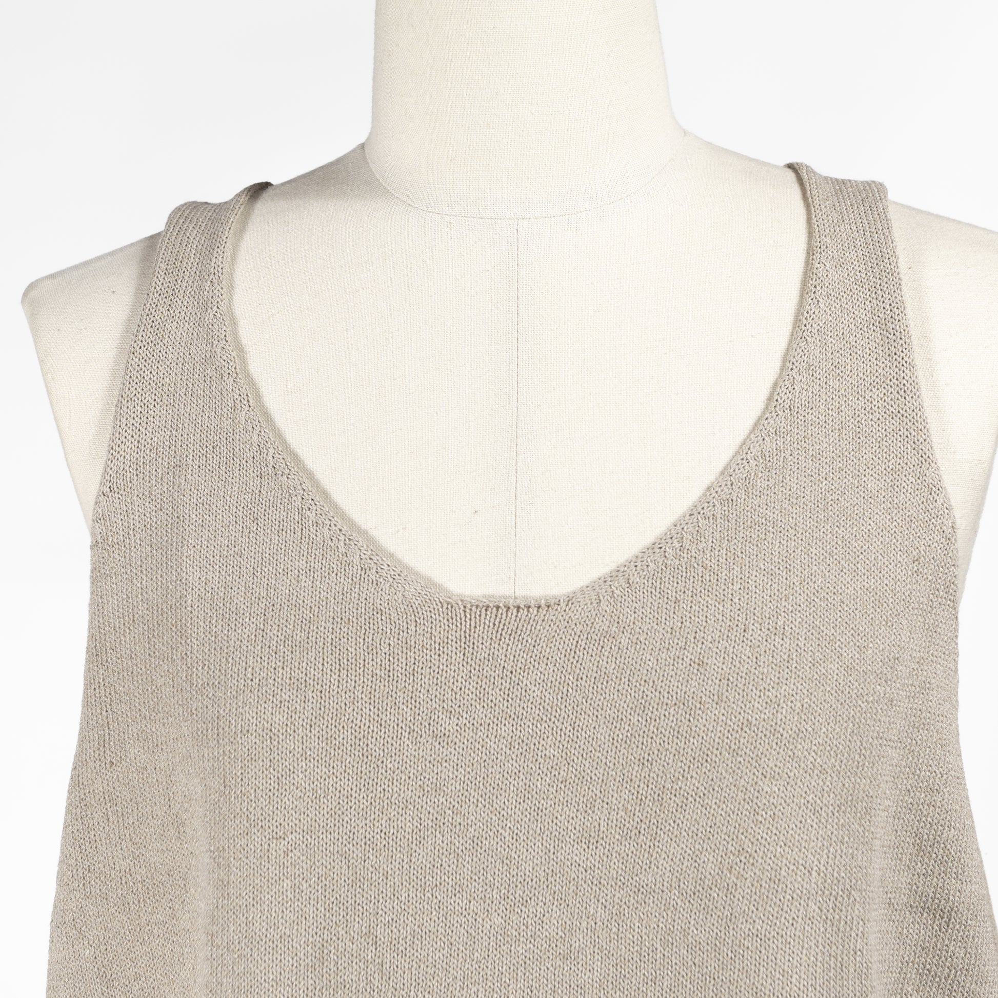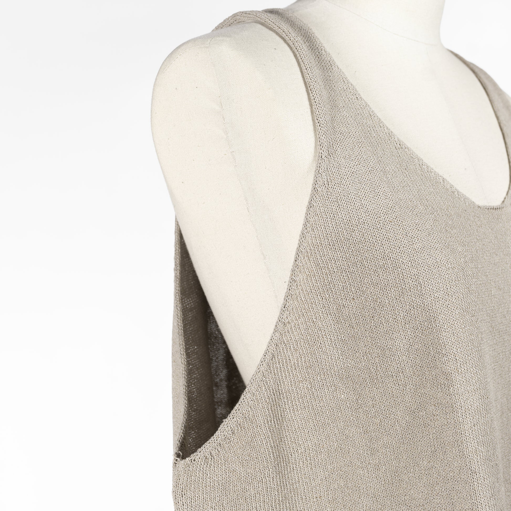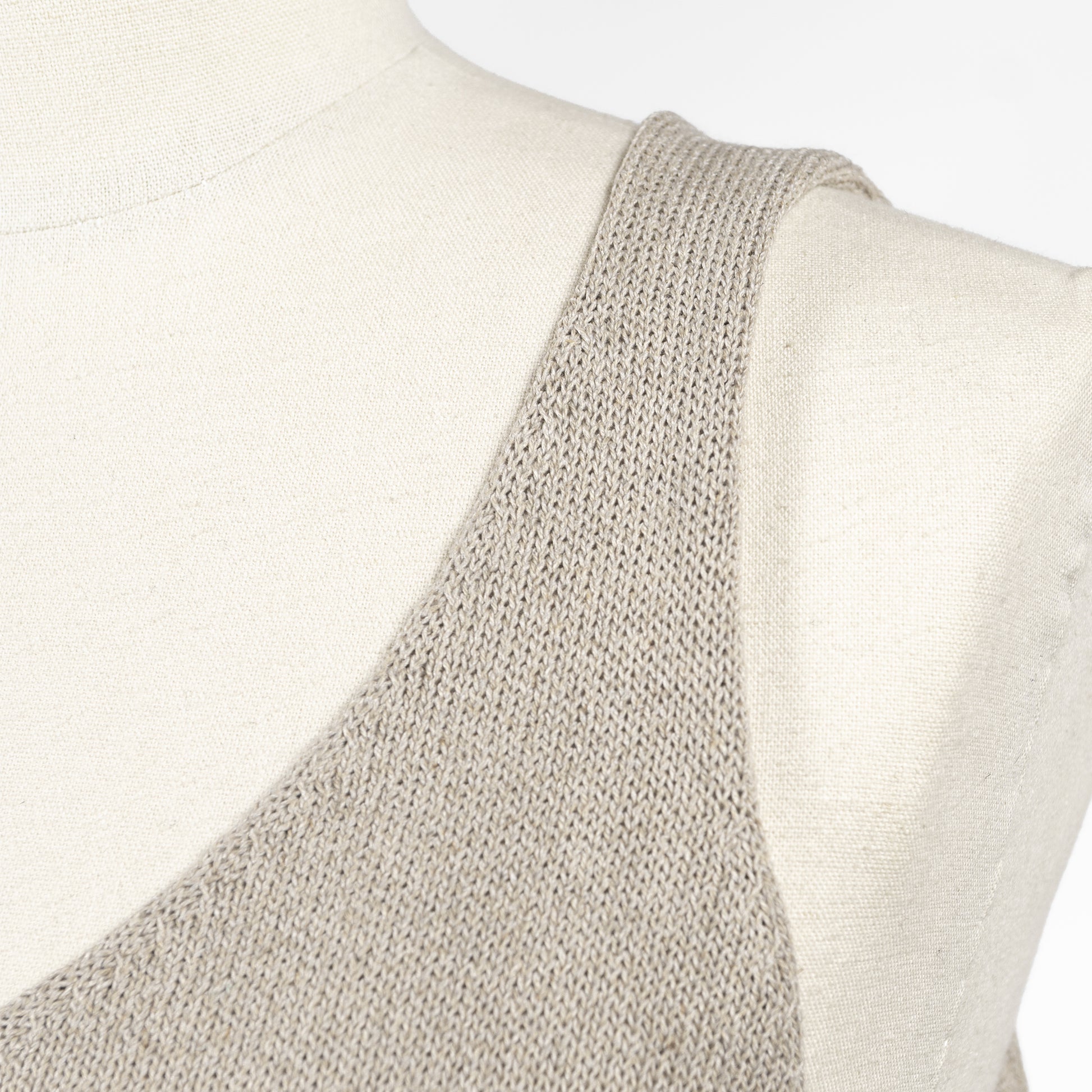 ニット生地には、夏でも快適に着られるリネンコットン混素材を使用しています