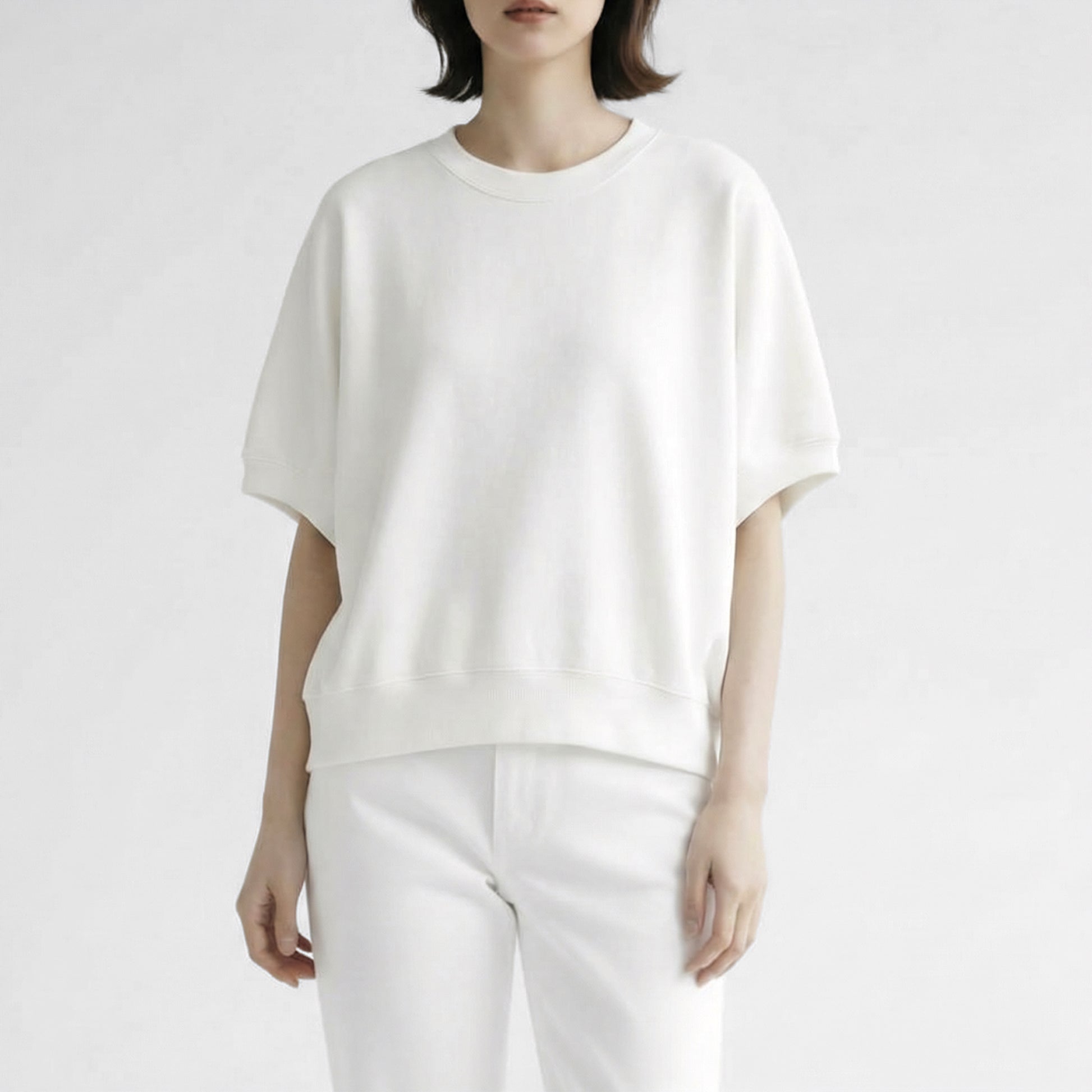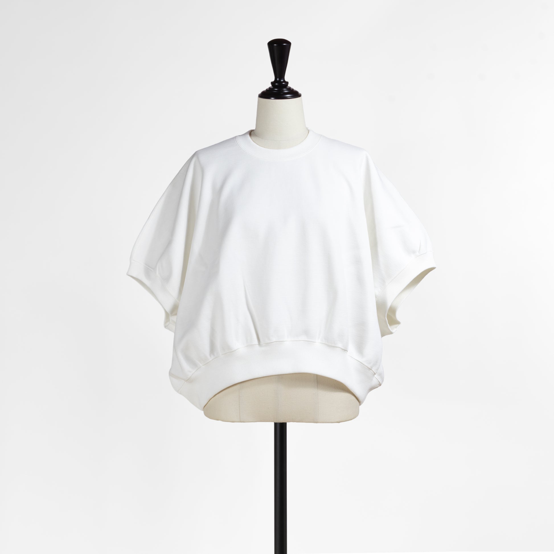 スウェットのような膨らみのある質感が特徴的あダブル組織の生地を使用したトップス