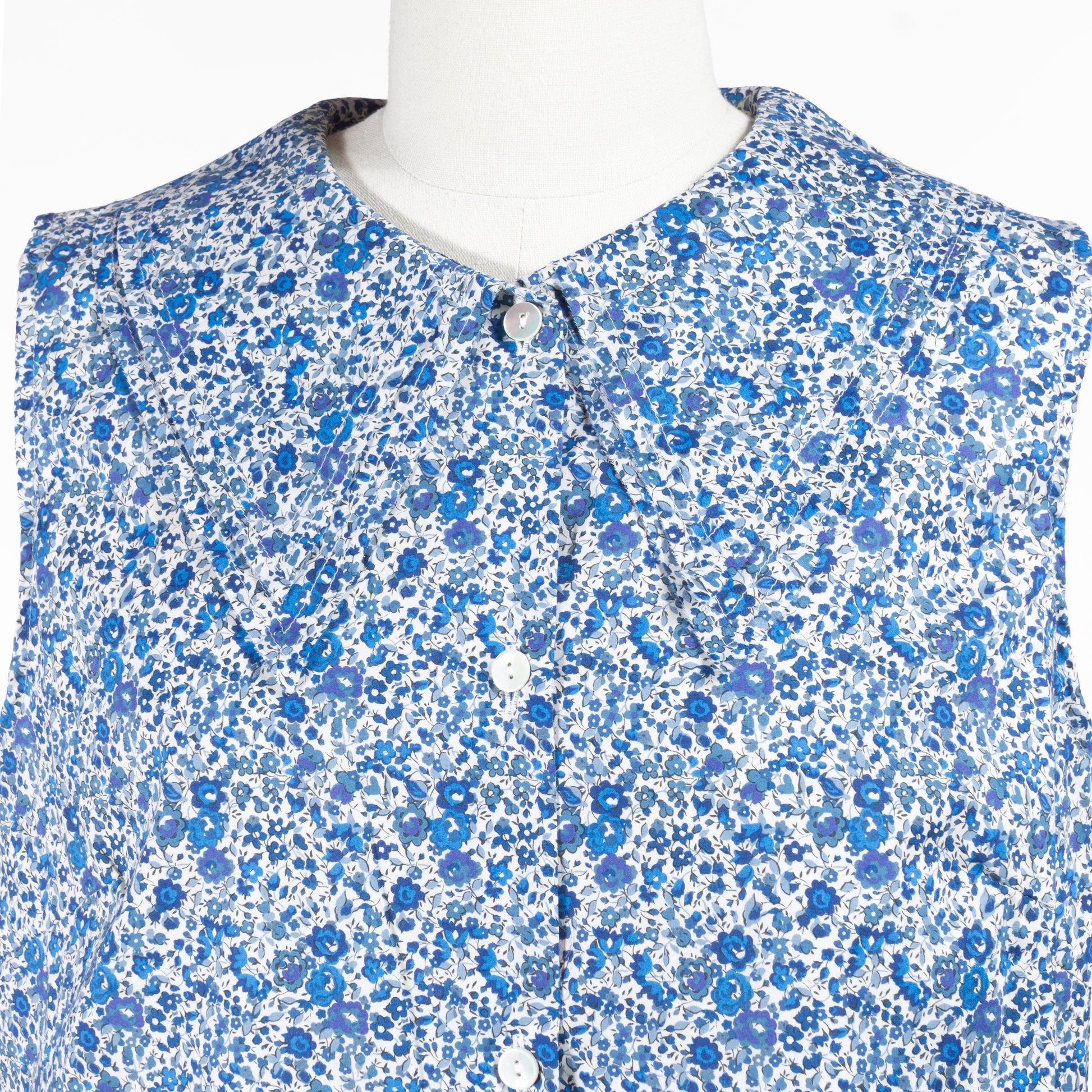 英国の老舗テキスタイルメーカー「リバティ社」のプリントファブリックを使用したノースリーブブラウスです