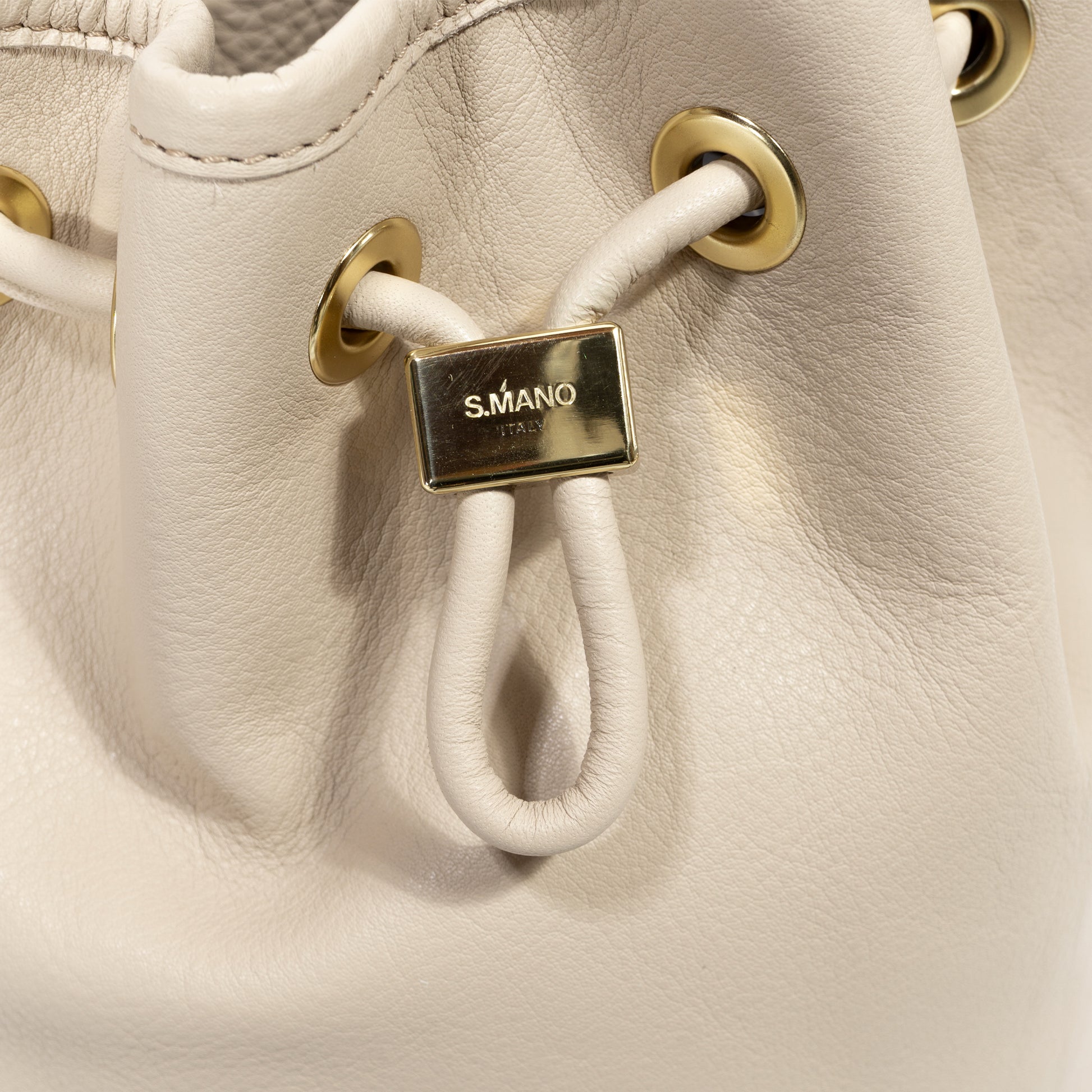 S.MANO (エス マーノ) の定番、上質なイタリアンレザーを使用したワンショルダーバッグ(巾着バッグ)です。