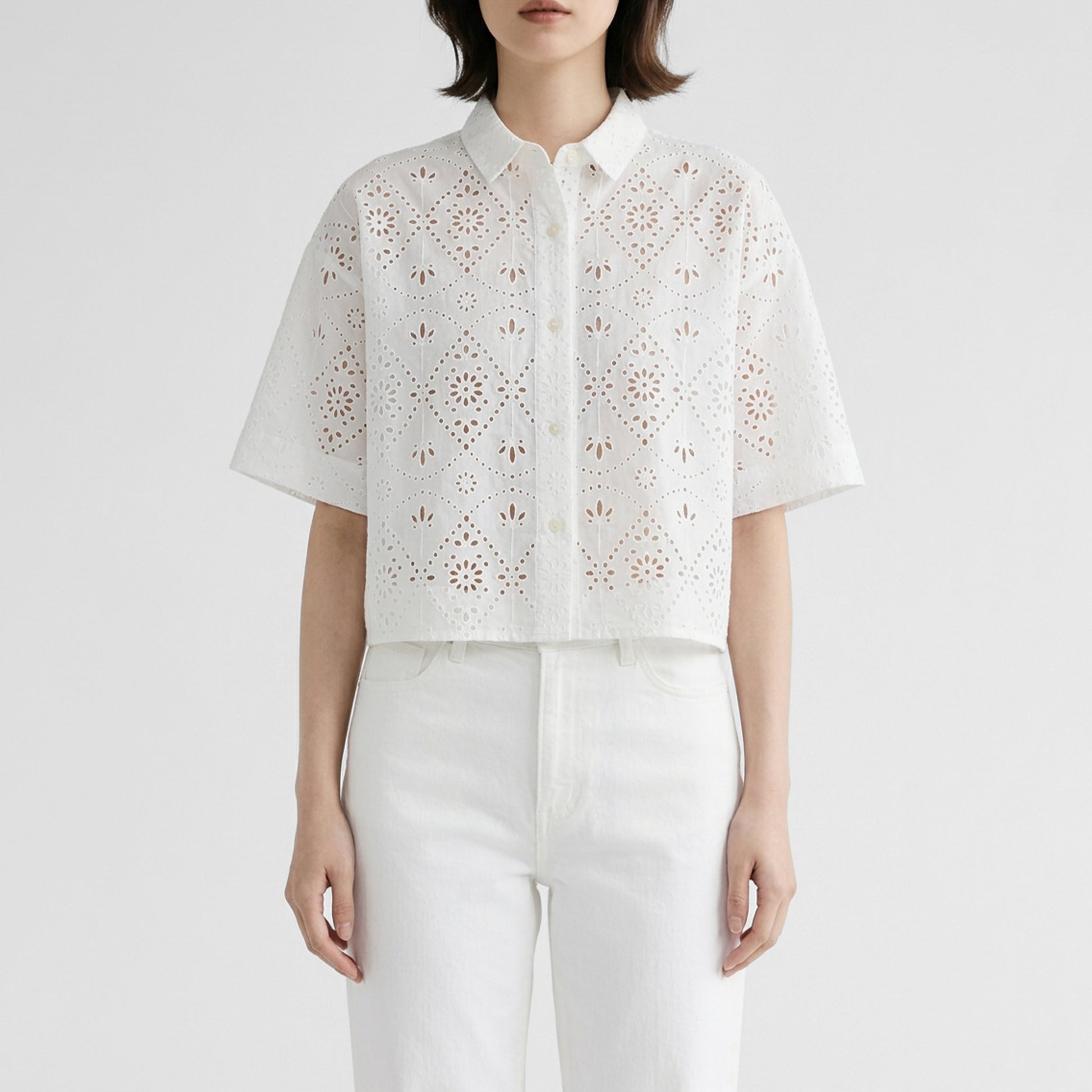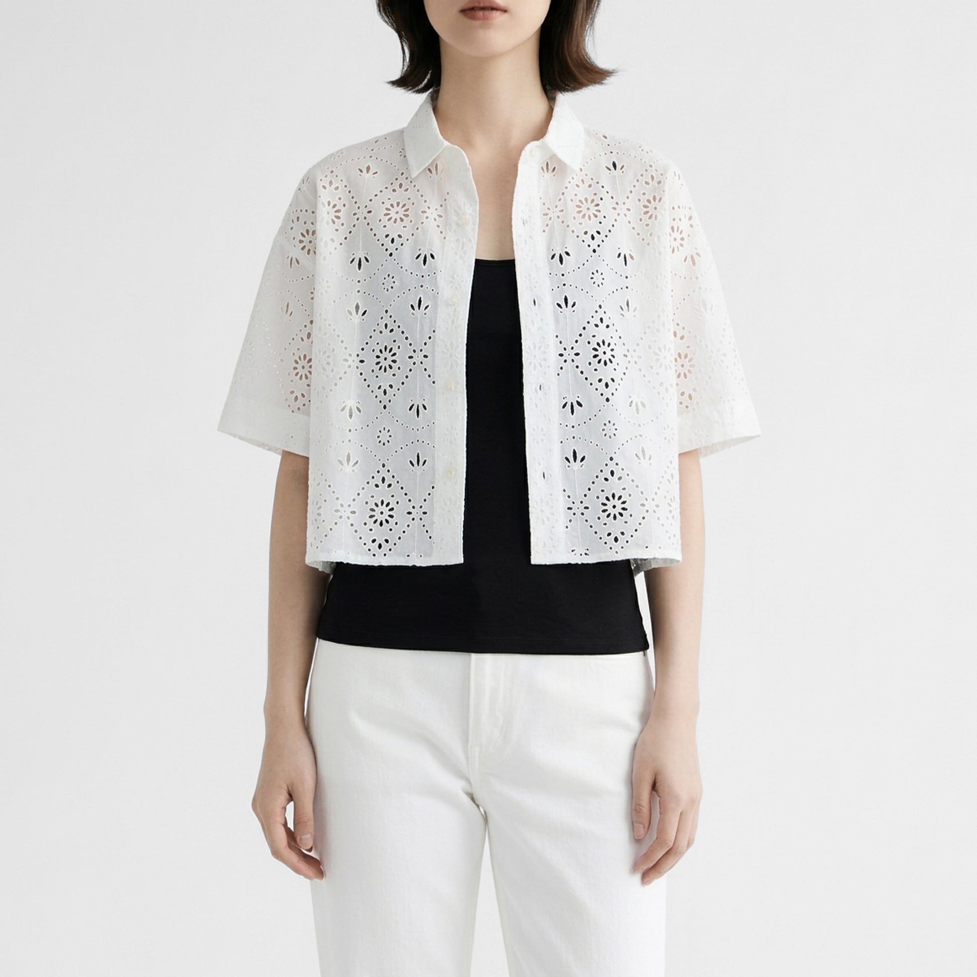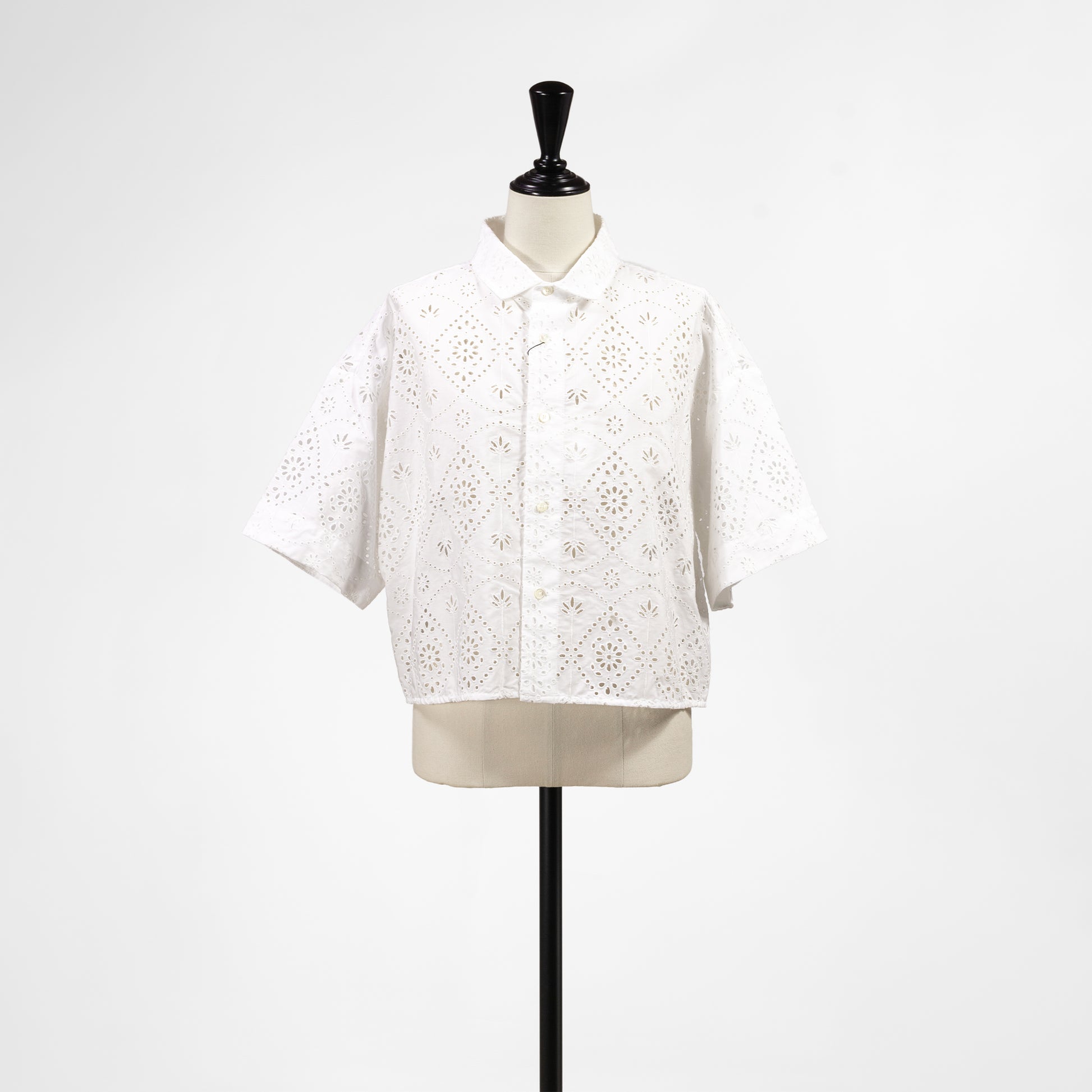 TICCAオリジナルのエンブロイダリーレースを使用した半袖シャツ