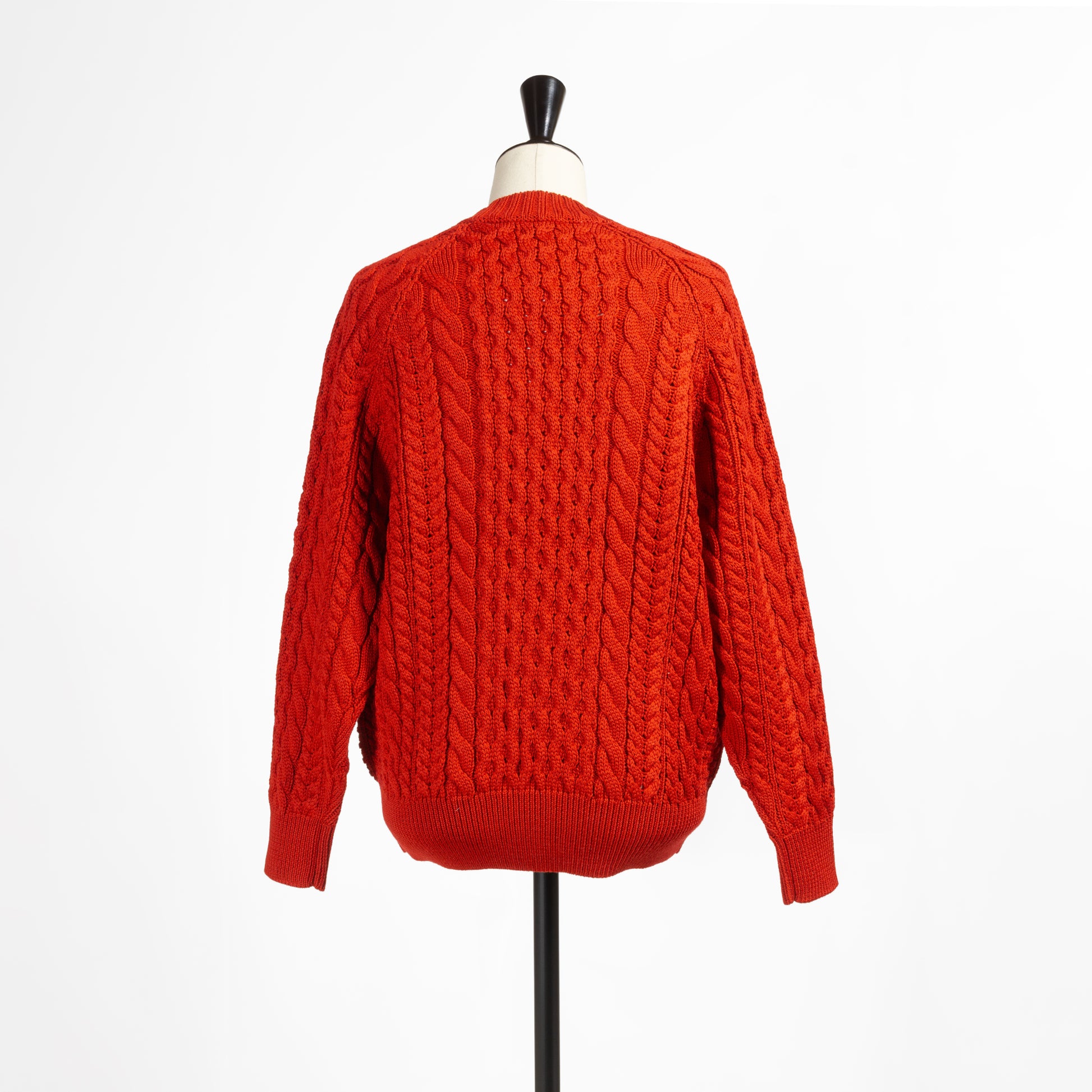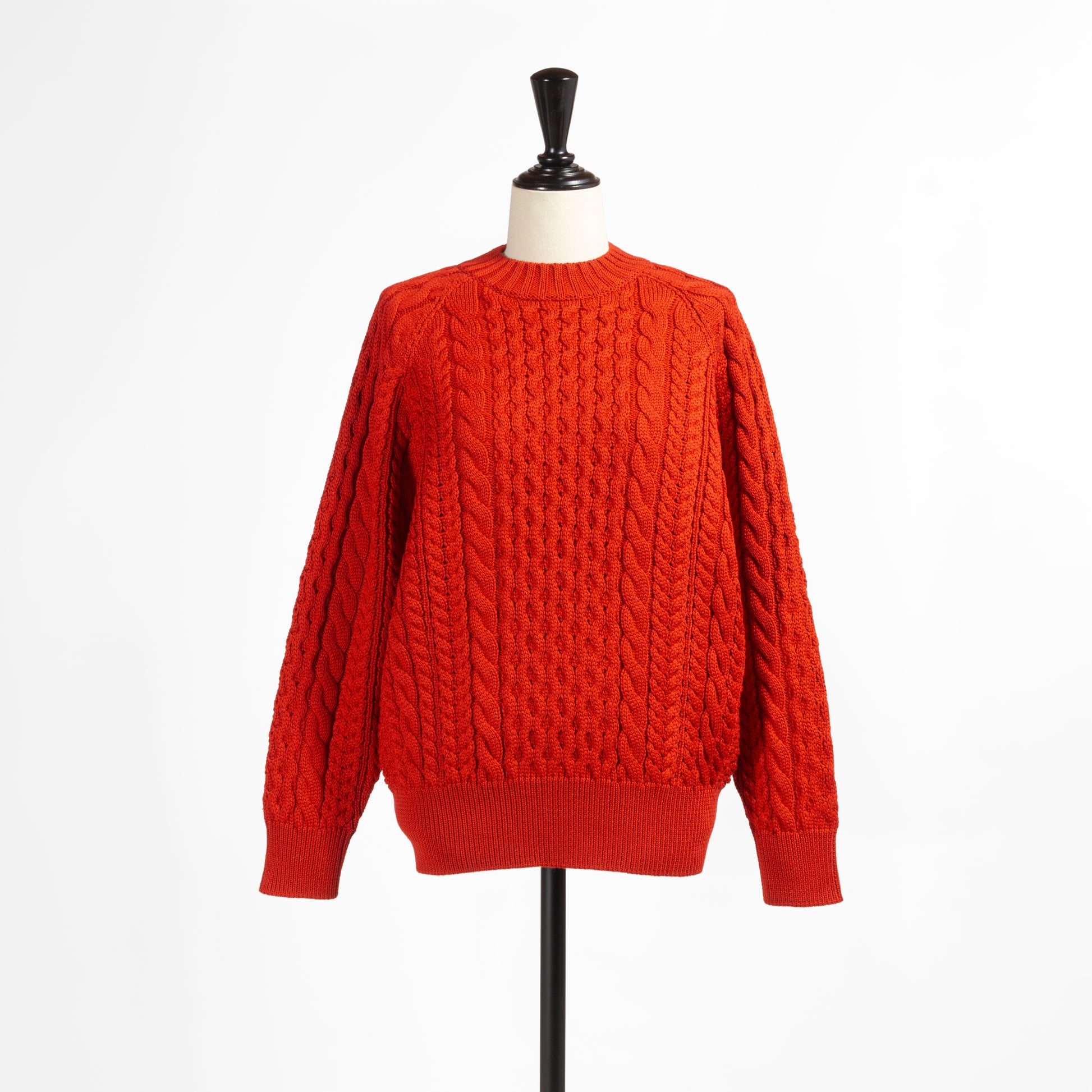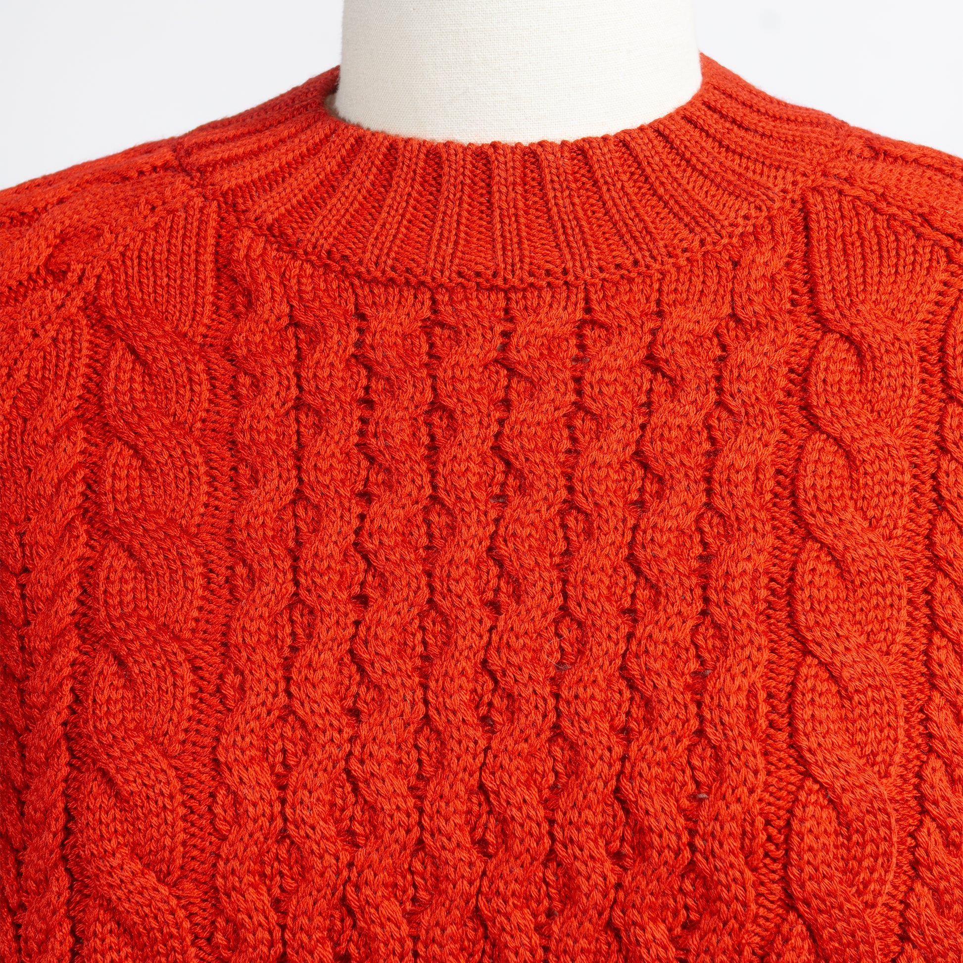 目の立った綺麗な編み目とダレない強度、そして毛玉ができにくくチクチクしないという理想のミドルゲージニットへと昇華しています