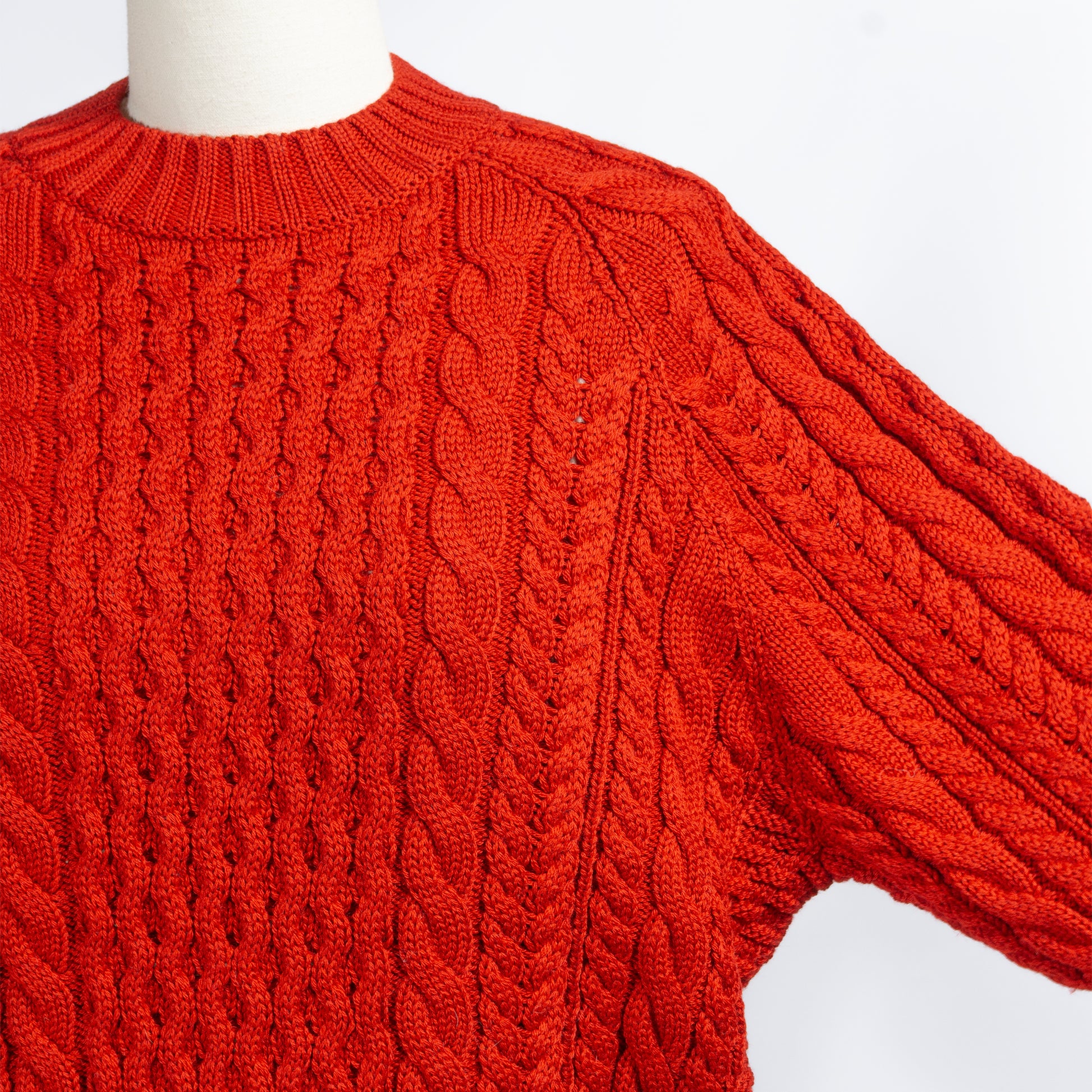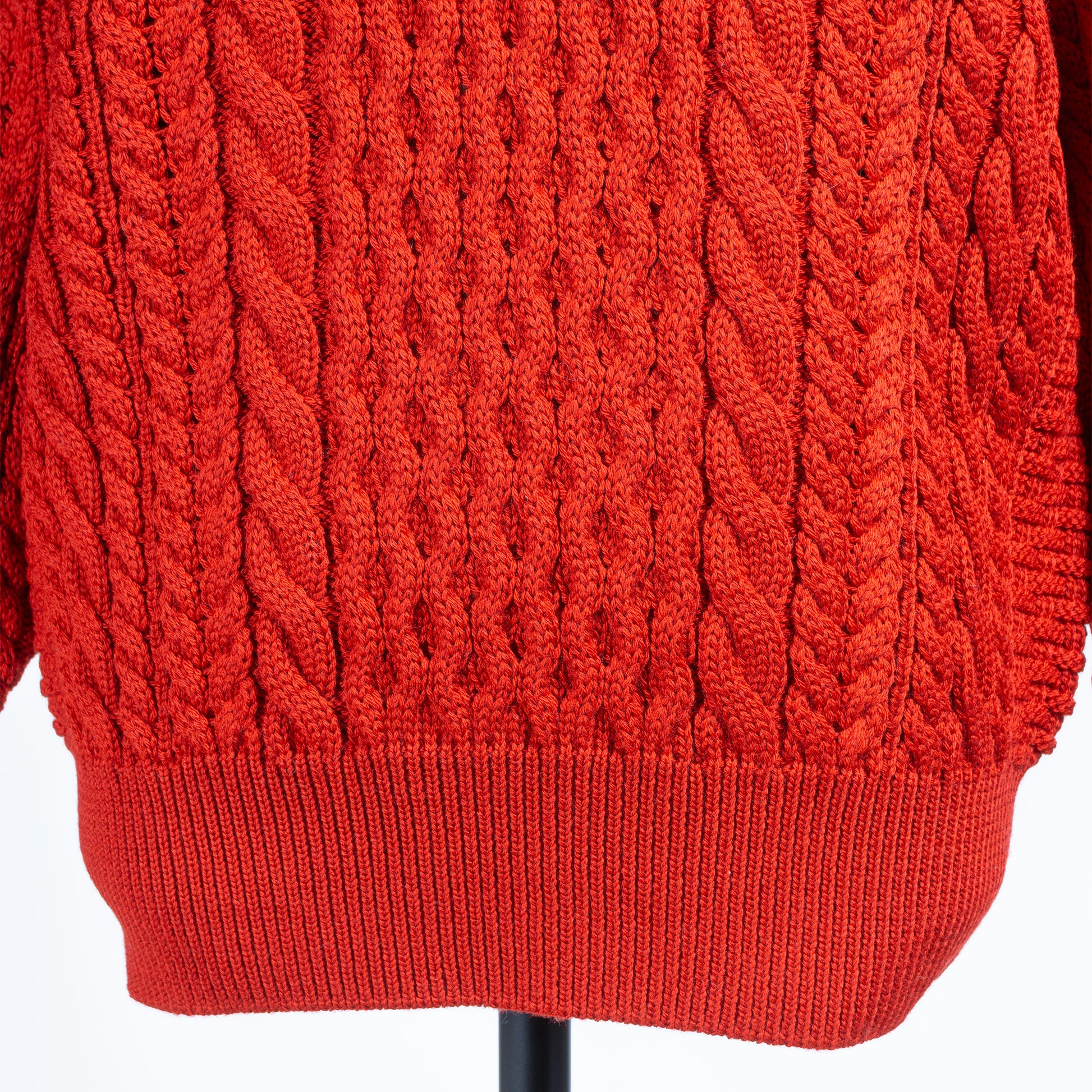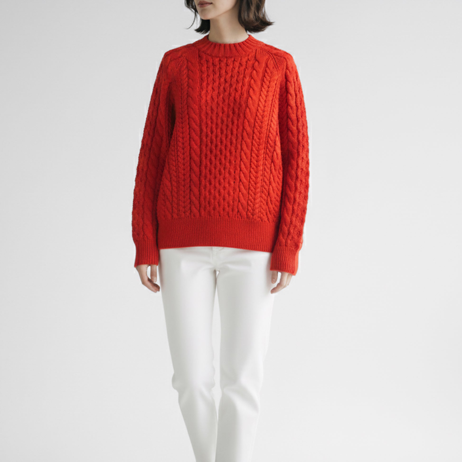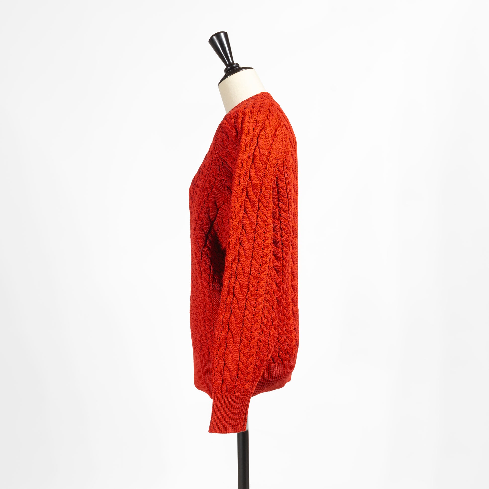 目の立った綺麗な編み目とダレない強度、そして毛玉ができにくくチクチクしないという理想のミドルゲージニットへと昇華しています