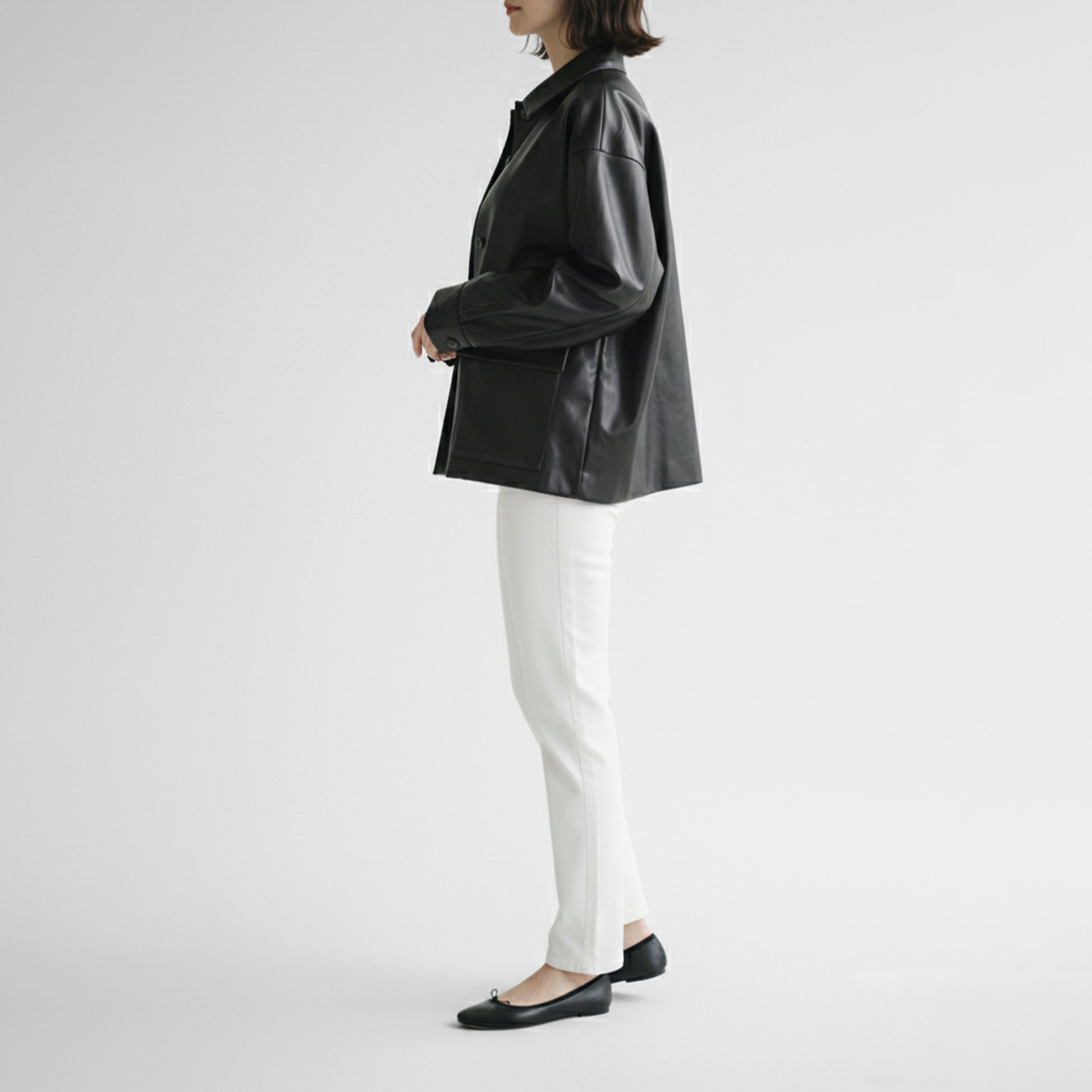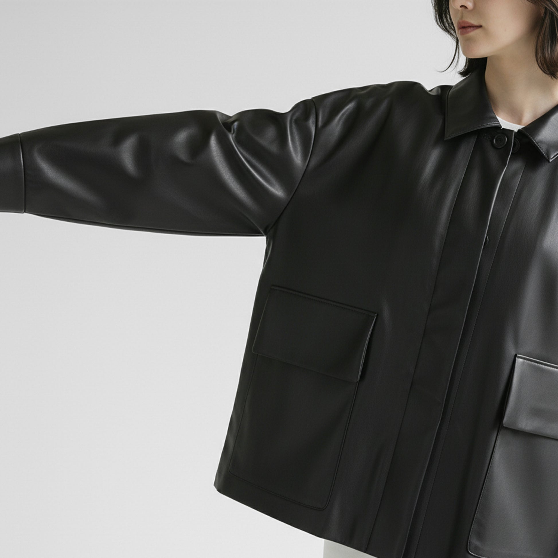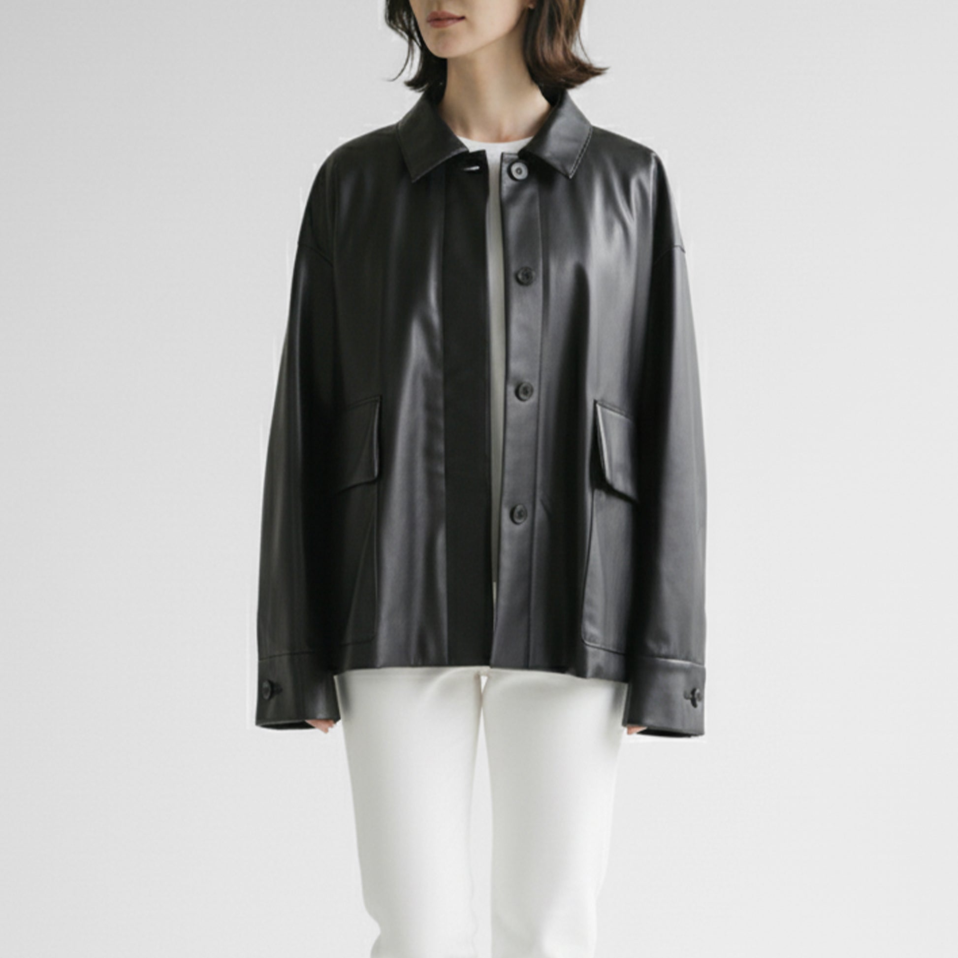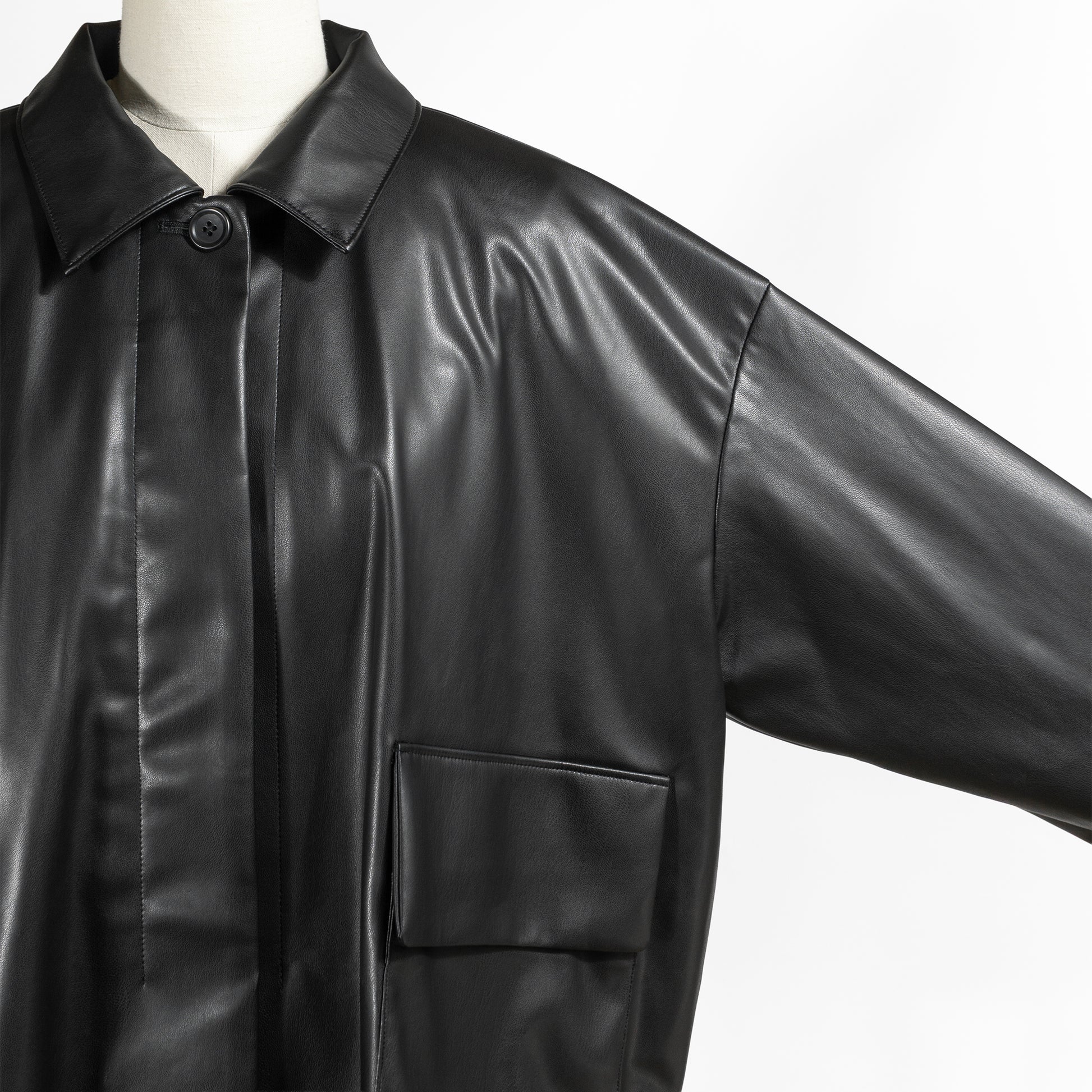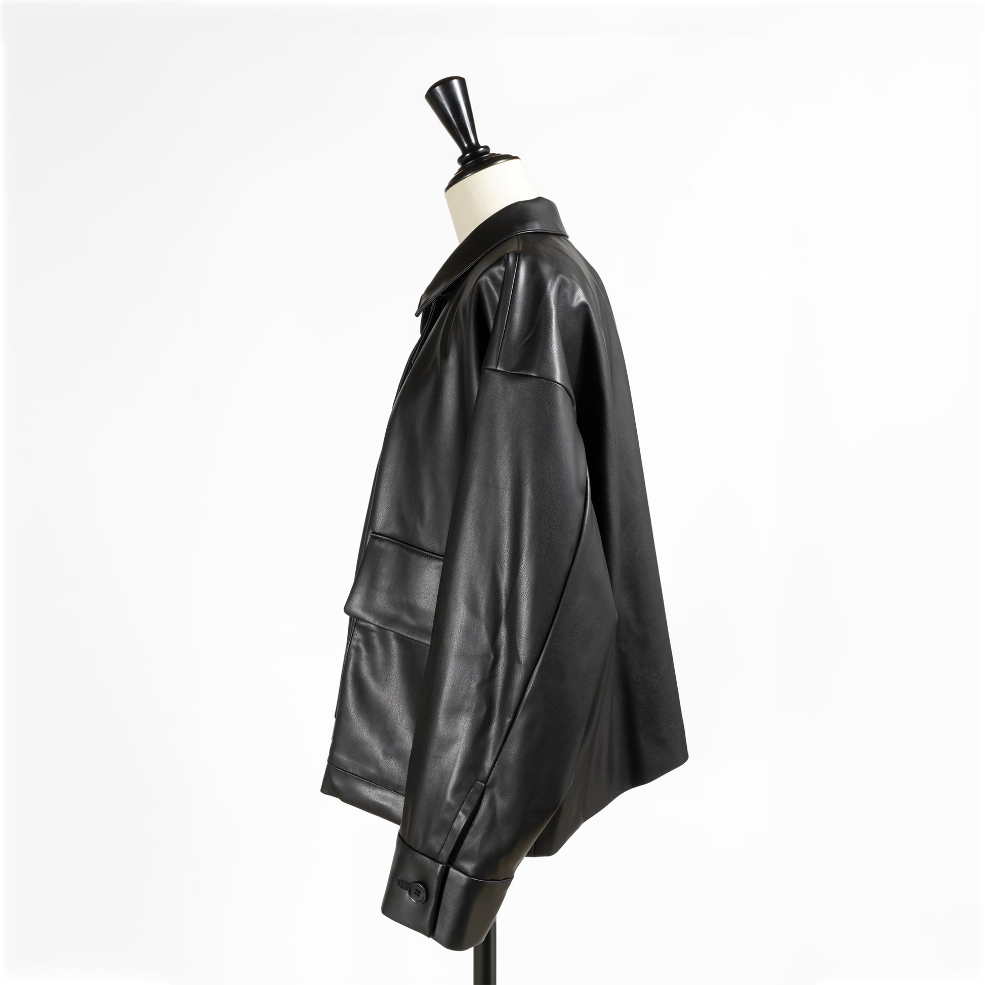 シボが入ったリアルな質感のエコレザーを使用したシャツジャケットです